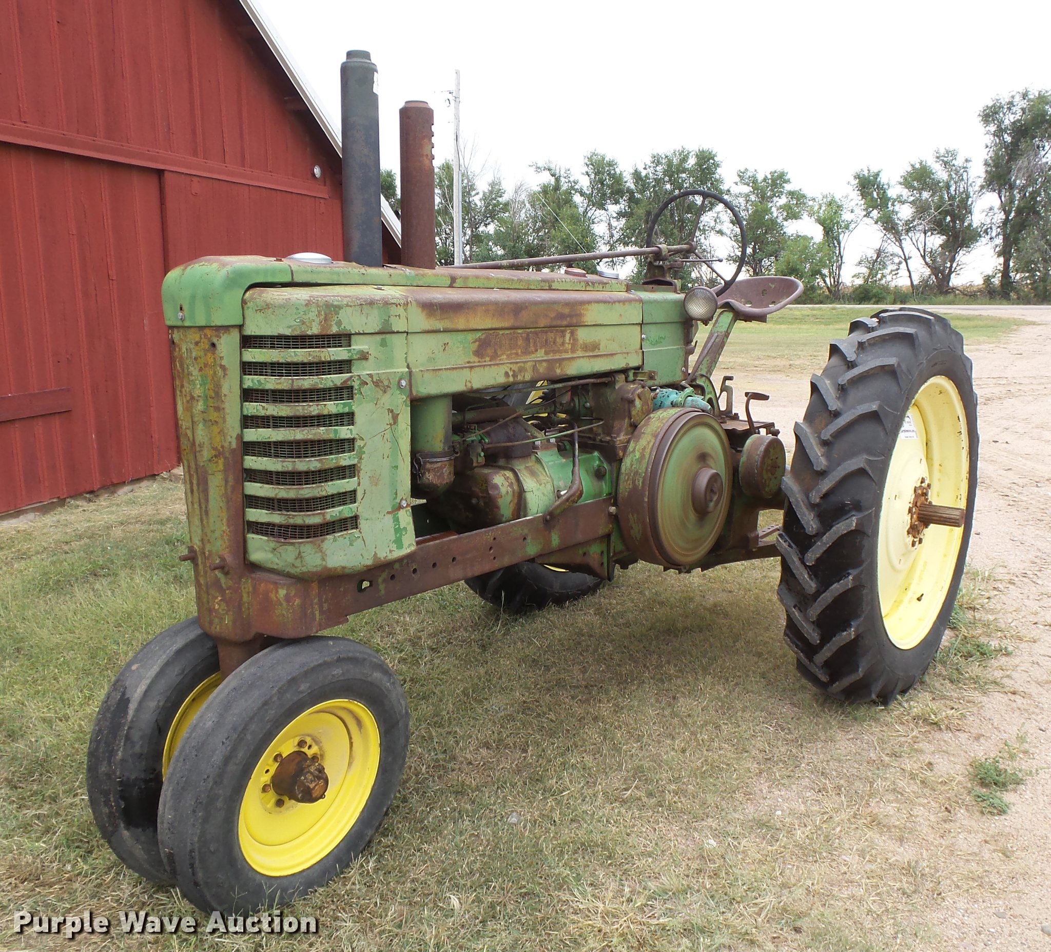 Purple Wave is selling a used Tractor in Kansas. This item is a 1941 John Deere A tractor with the following: John Deere two cylinder gas engine, Manual transmission, 6F-1R gears, Suspension seat, 540 PTO, 6.00-16 front tires, 12.4-38/11-38 rear tires, Stored inside, Serial 502516