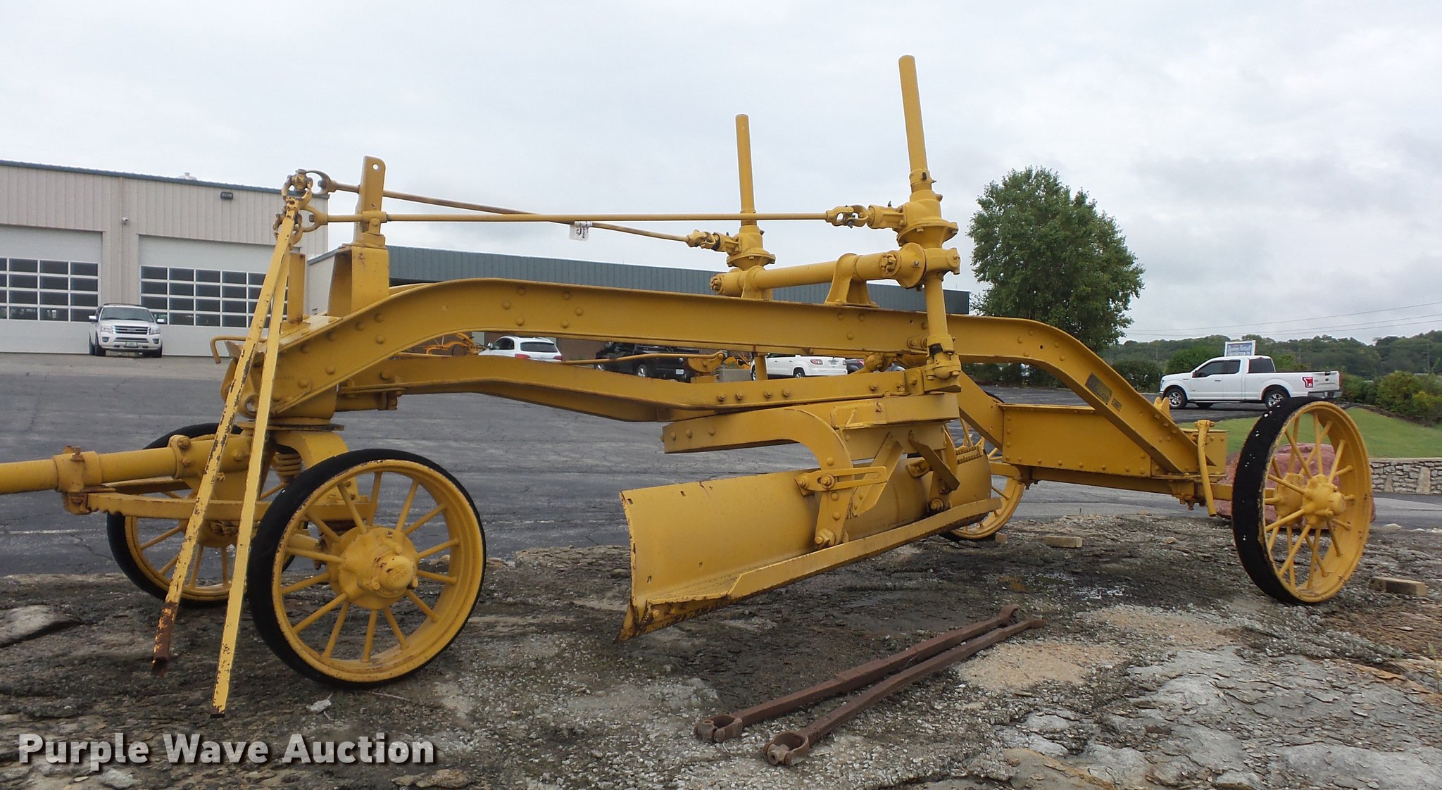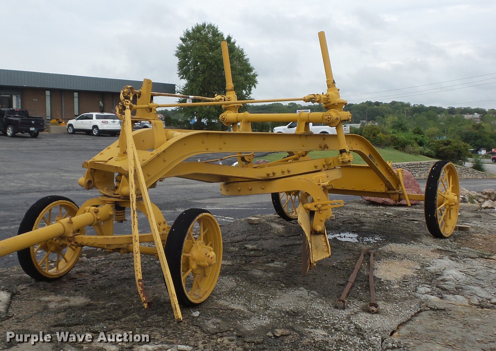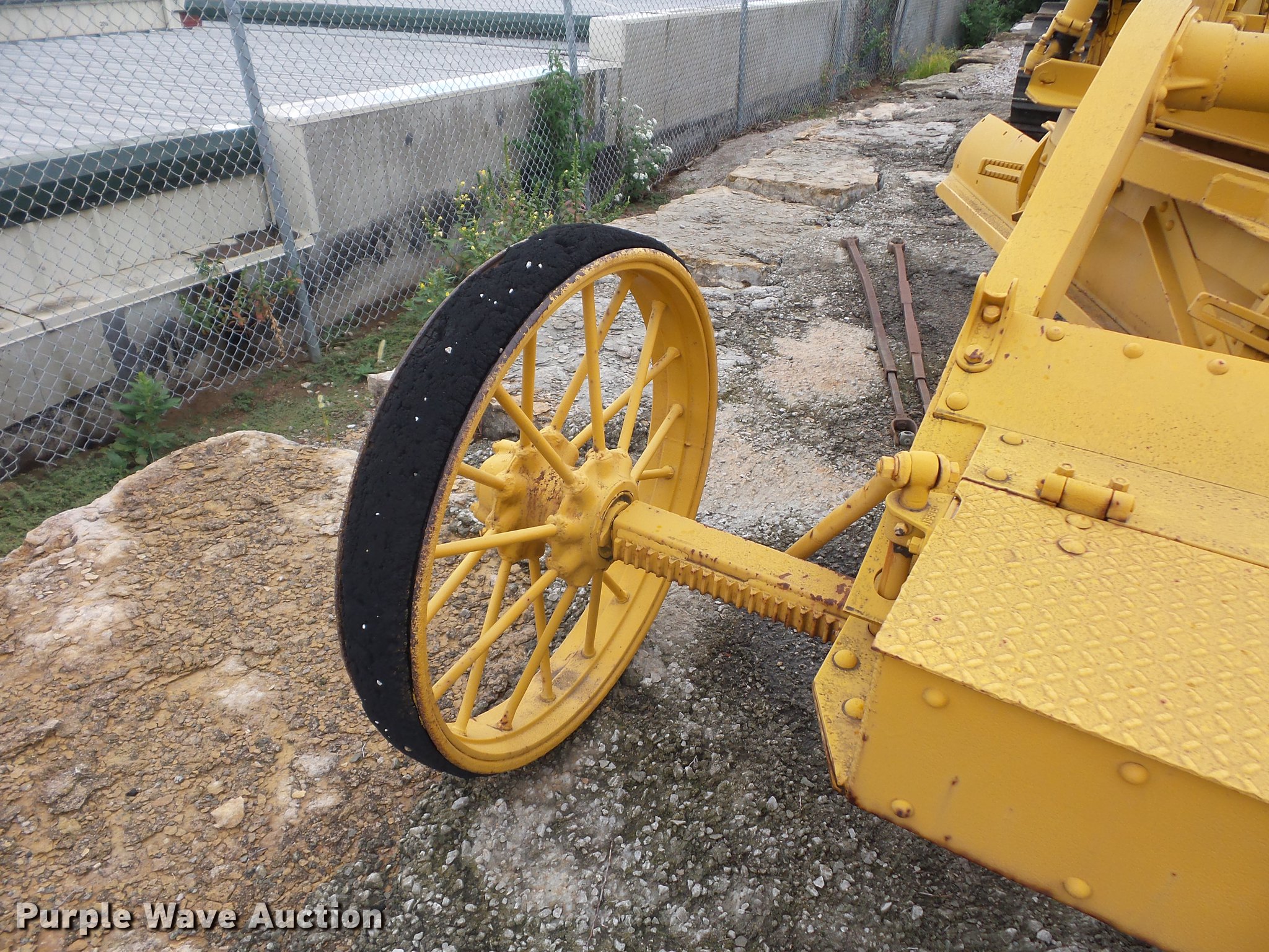 Purple Wave is selling a used Pull Type Scraper in Missouri. This item is a Caterpillar grader with the following: 12'W moldboard, 28" diameter front wheels, 38" diameter rear wheels, Serial 5D106