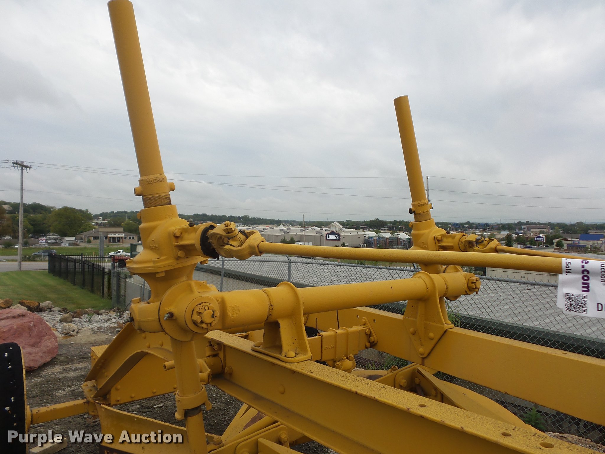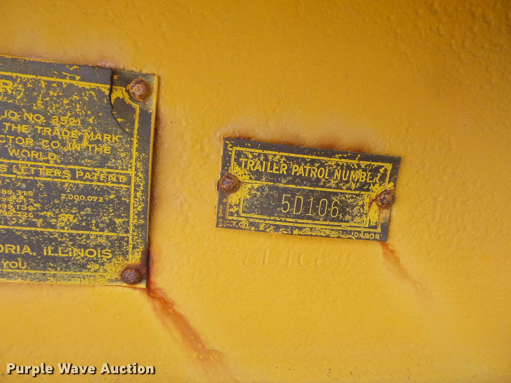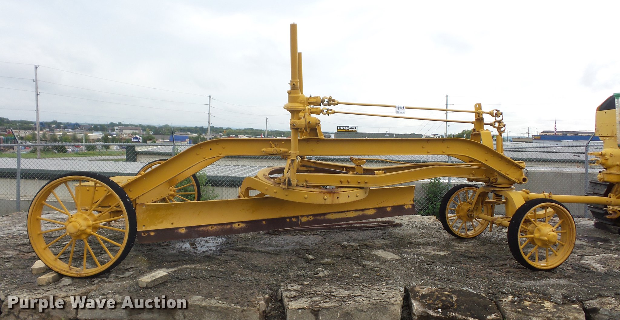 Purple Wave is selling a used Pull Type Scraper in Missouri. This item is a Caterpillar grader with the following: 12'W moldboard, 28" diameter front wheels, 38" diameter rear wheels, Serial 5D106