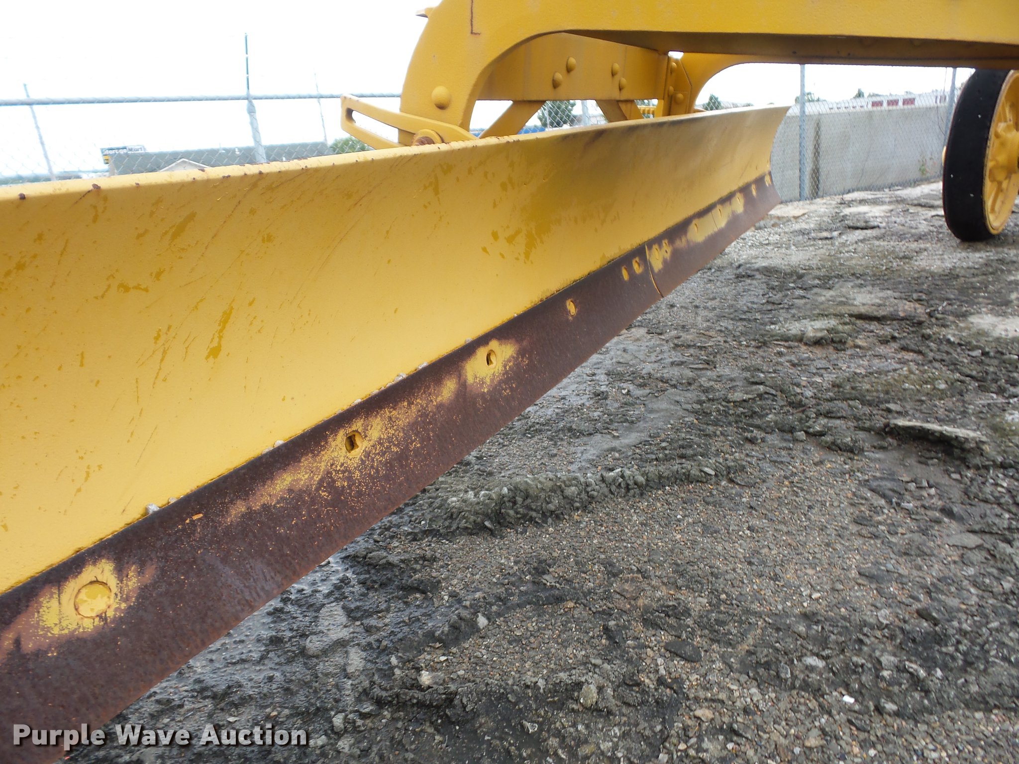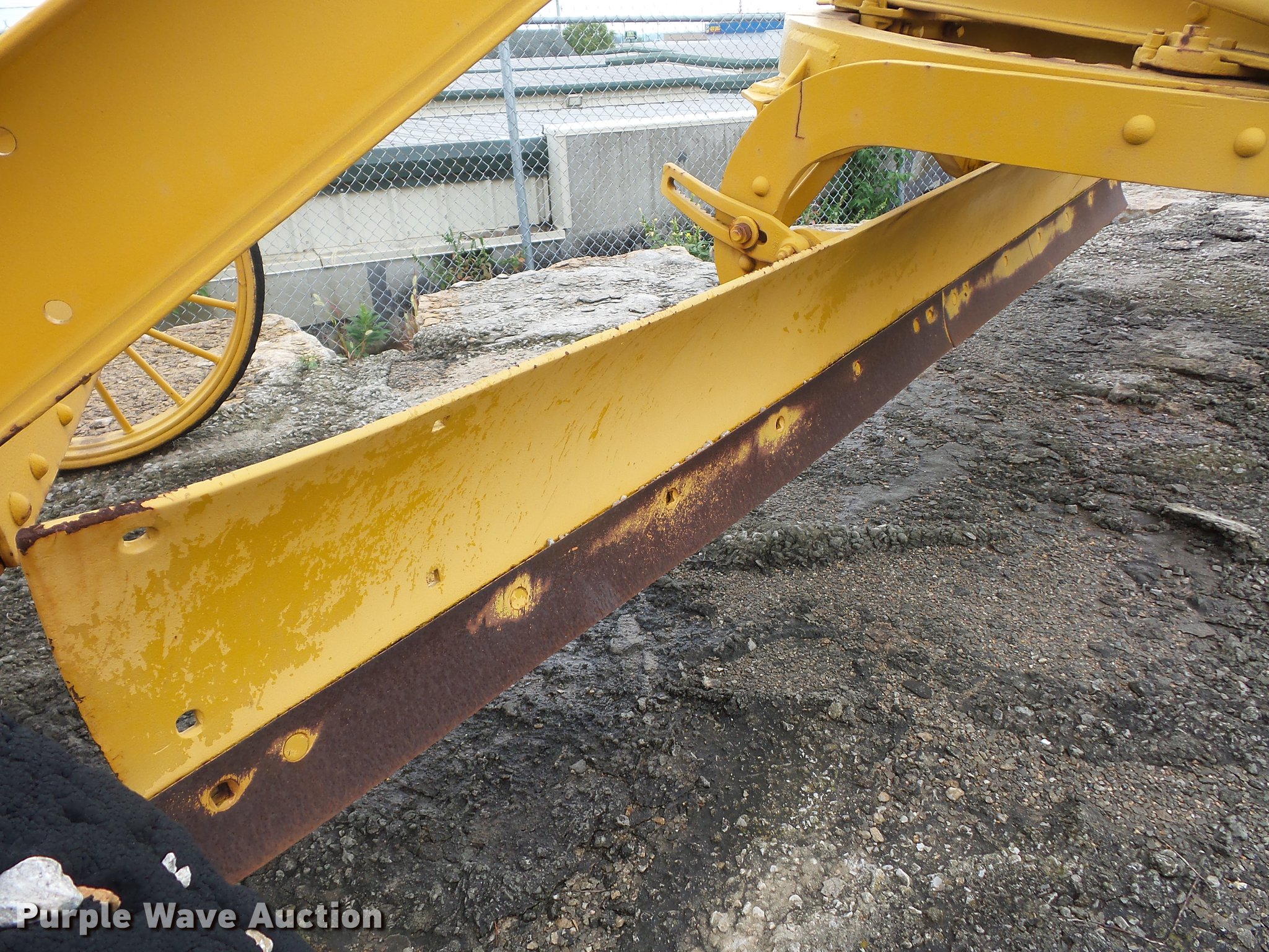 Caterpillar grader. 12'W moldboard, 28" diameter front wheels, 38" diameter rear wheels, Serial 5D106. 300 N Church Rd. Liberty, MO 64068