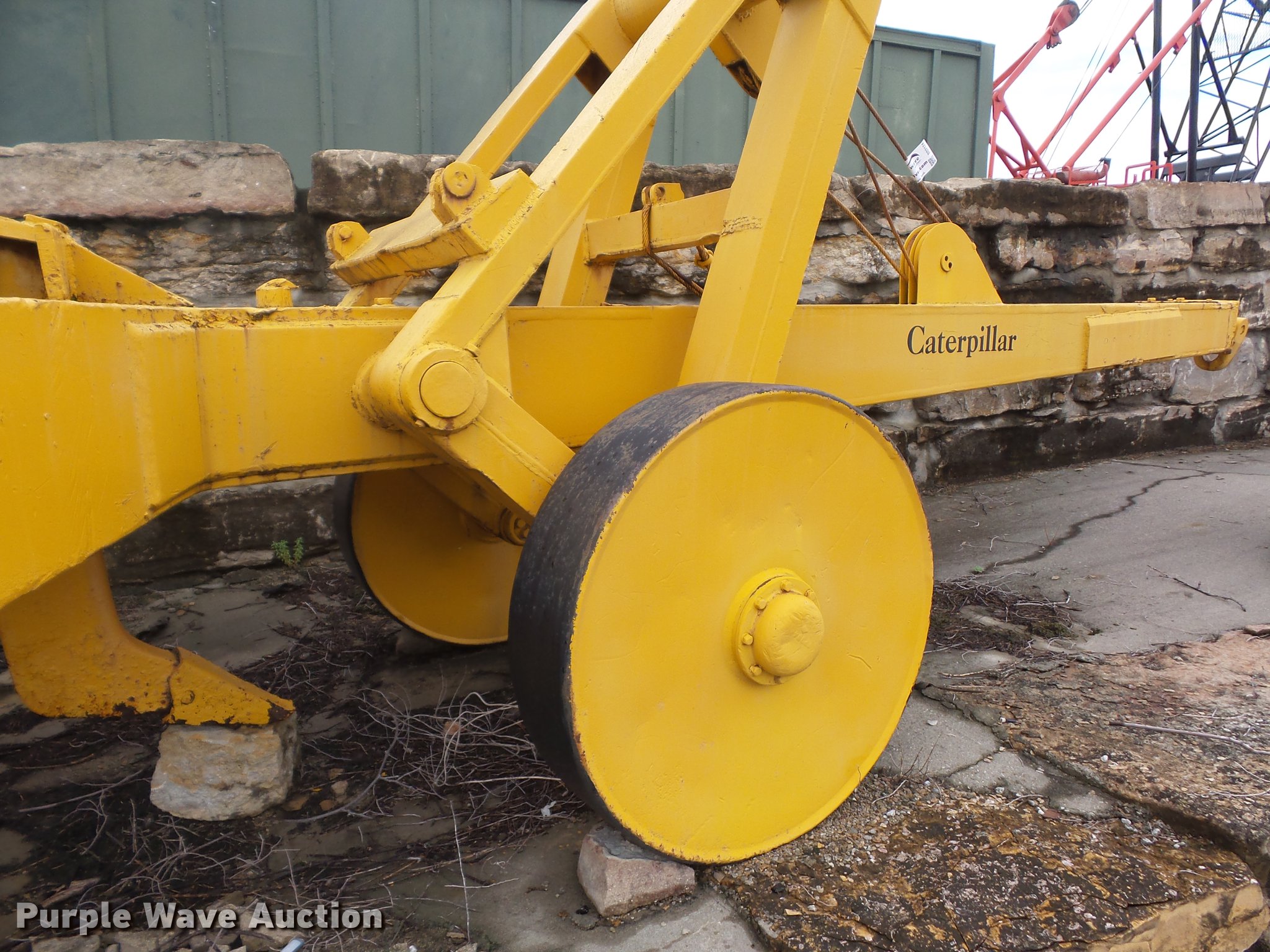 Purple Wave is selling a used Tillage Other in Missouri. This item is a Caterpillar ripper with the following: 102"W, One ripper shank, Three ripper shank capacity, Cable operated, 40" diameter wheels