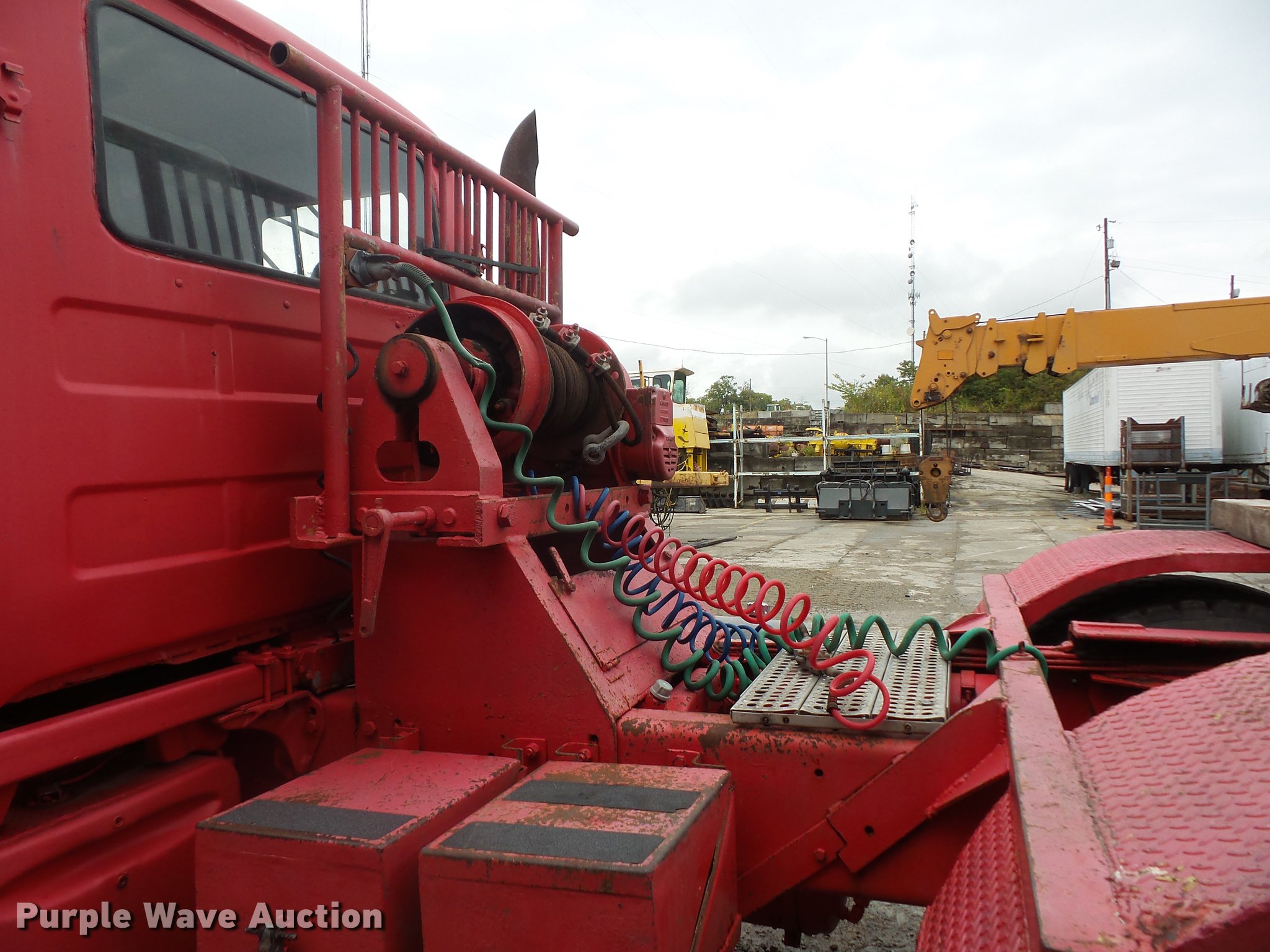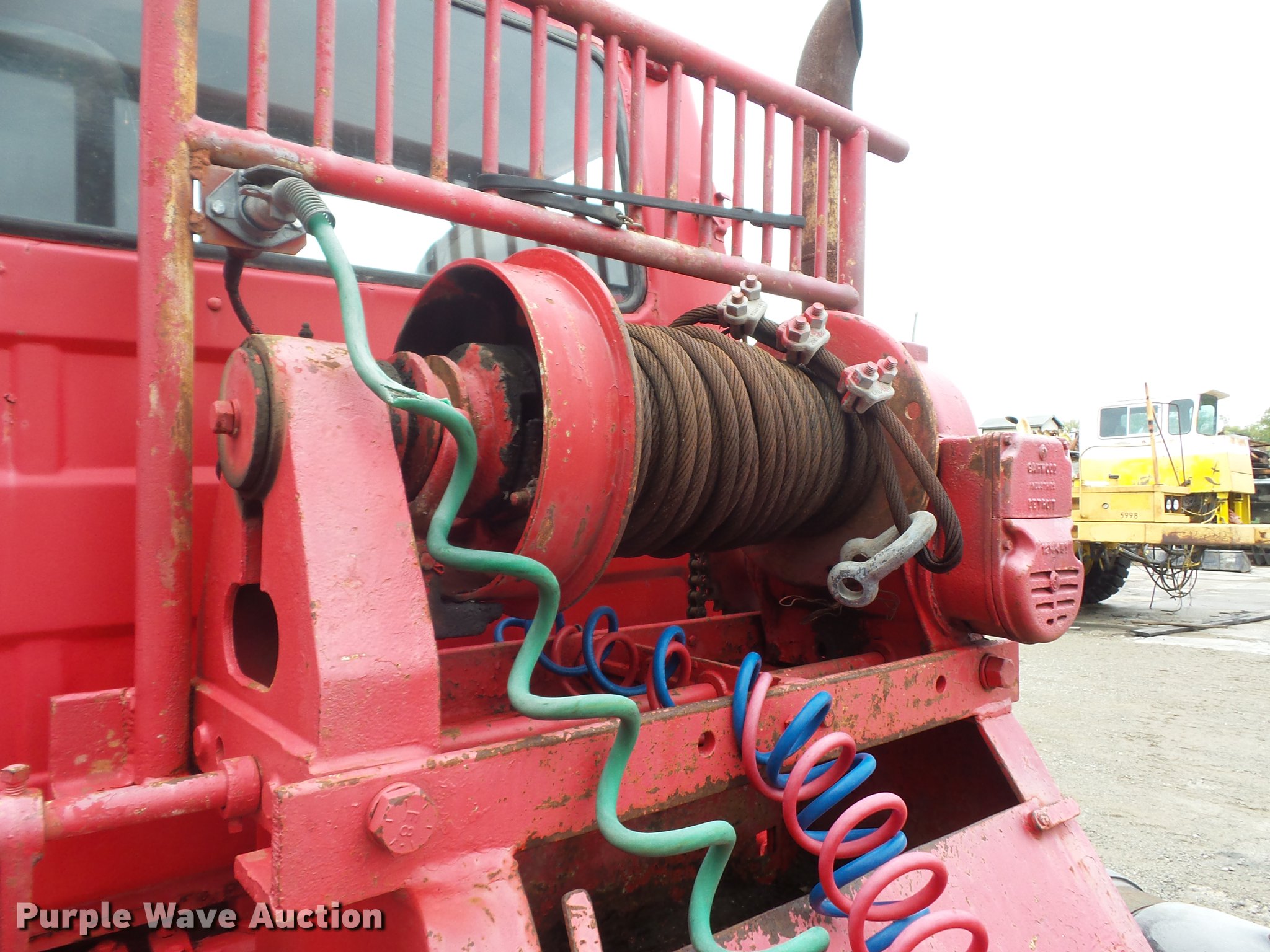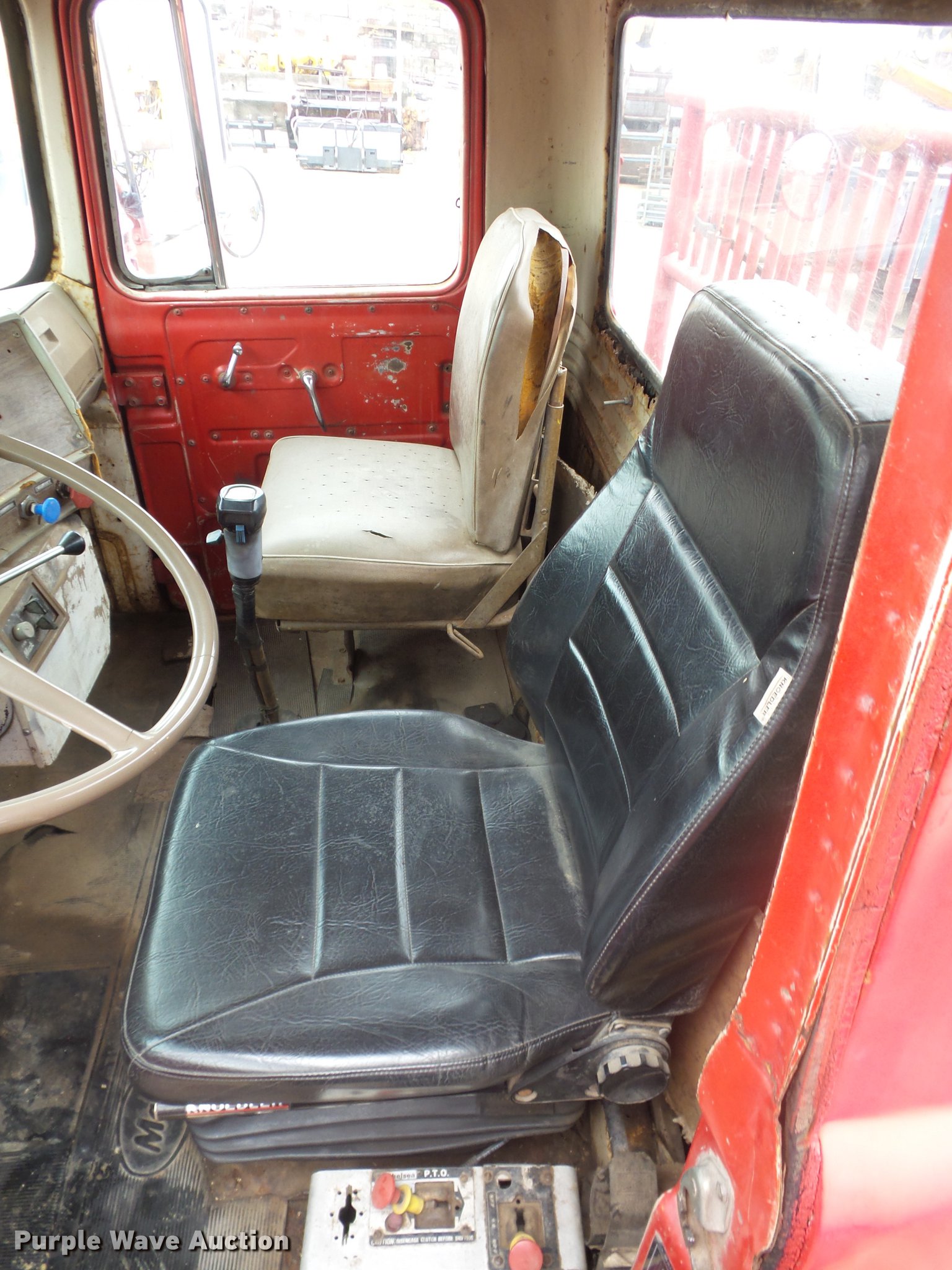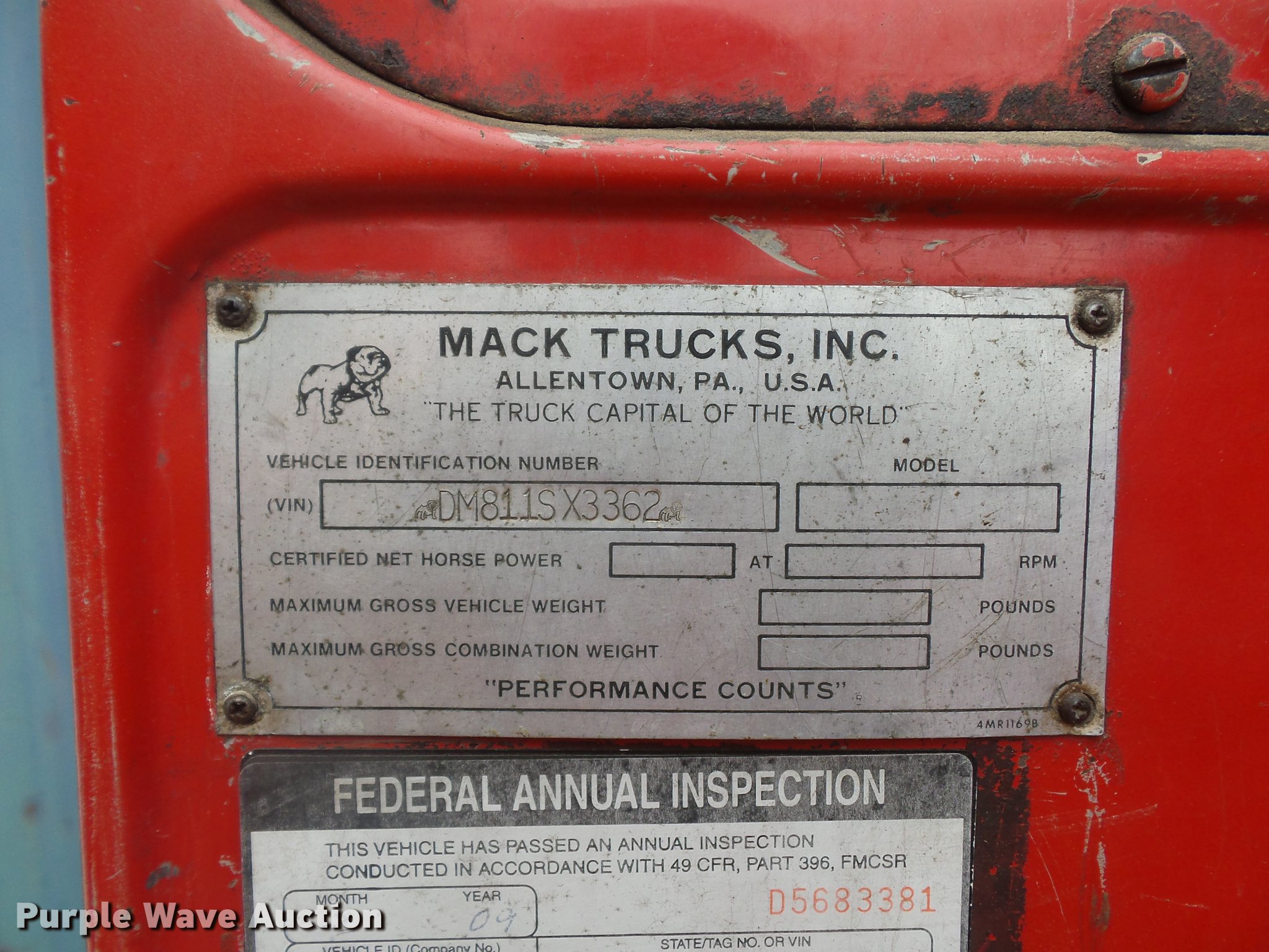 Purple Wave is selling a used Truck Chassis in Missouri. This item is a 1975 Mack semi truck with the following: 117,399 miles on odometer, Cummins six cylinder turbo diesel engine, 13 speed manual transmission, Tandem axle, Heat, PTO, Fifth wheel plate, Rear hydraulic winch, Camelback suspension, Air brakes, 12-24 tires