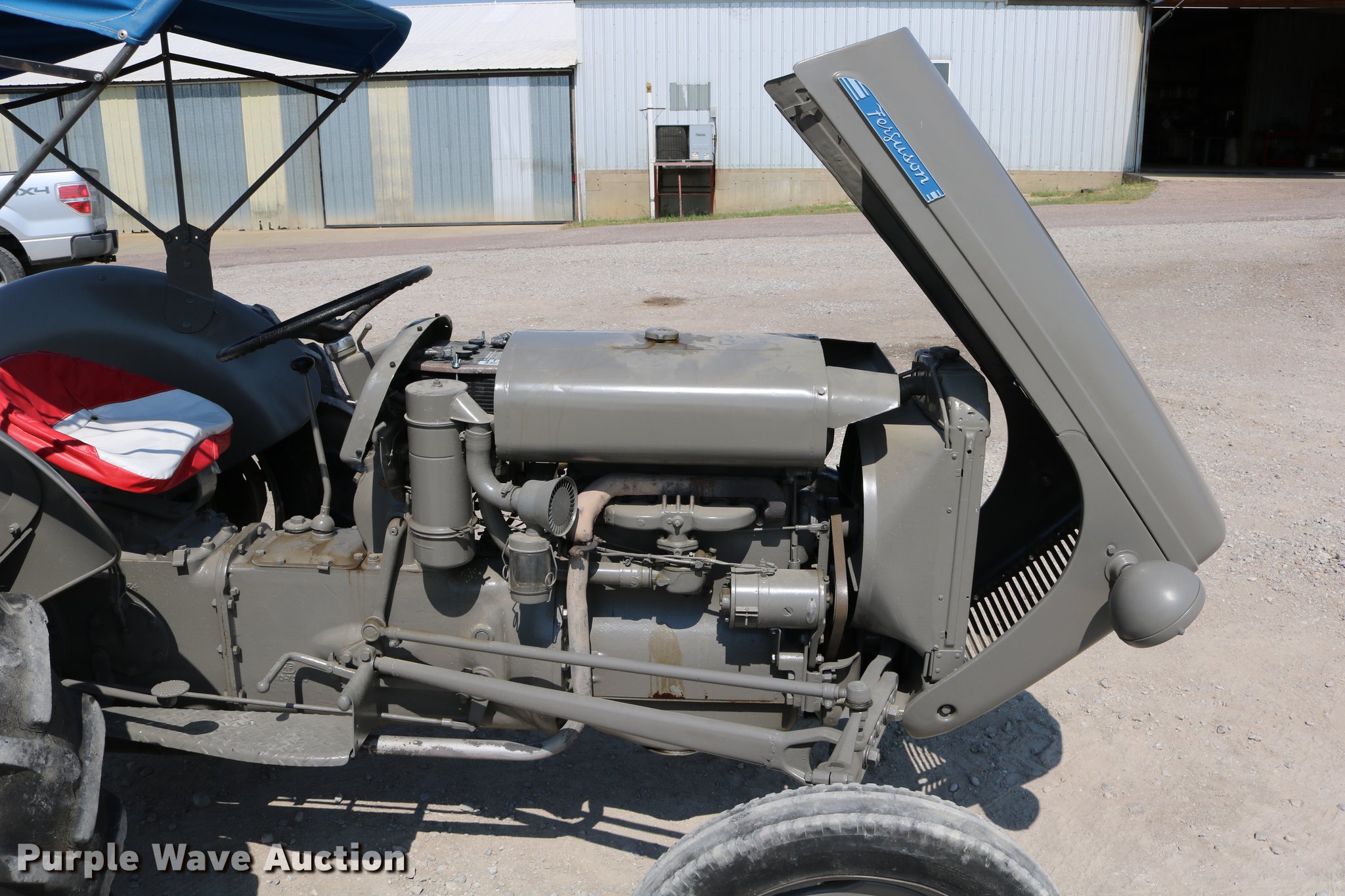 Purple Wave is selling a used Tractor in Kansas. This item is a 1950 Ferguson T020 tractor with the following: Four cylinder gas engine, Manual transmission, 4F-1R gears, Canopy, Spring suspension seat, Works lights, Currently not hooked up, Three point, 540 PTO, 68" wheelbase, 4.00-19 front tires, 11-28 rear tires, Serial E156956