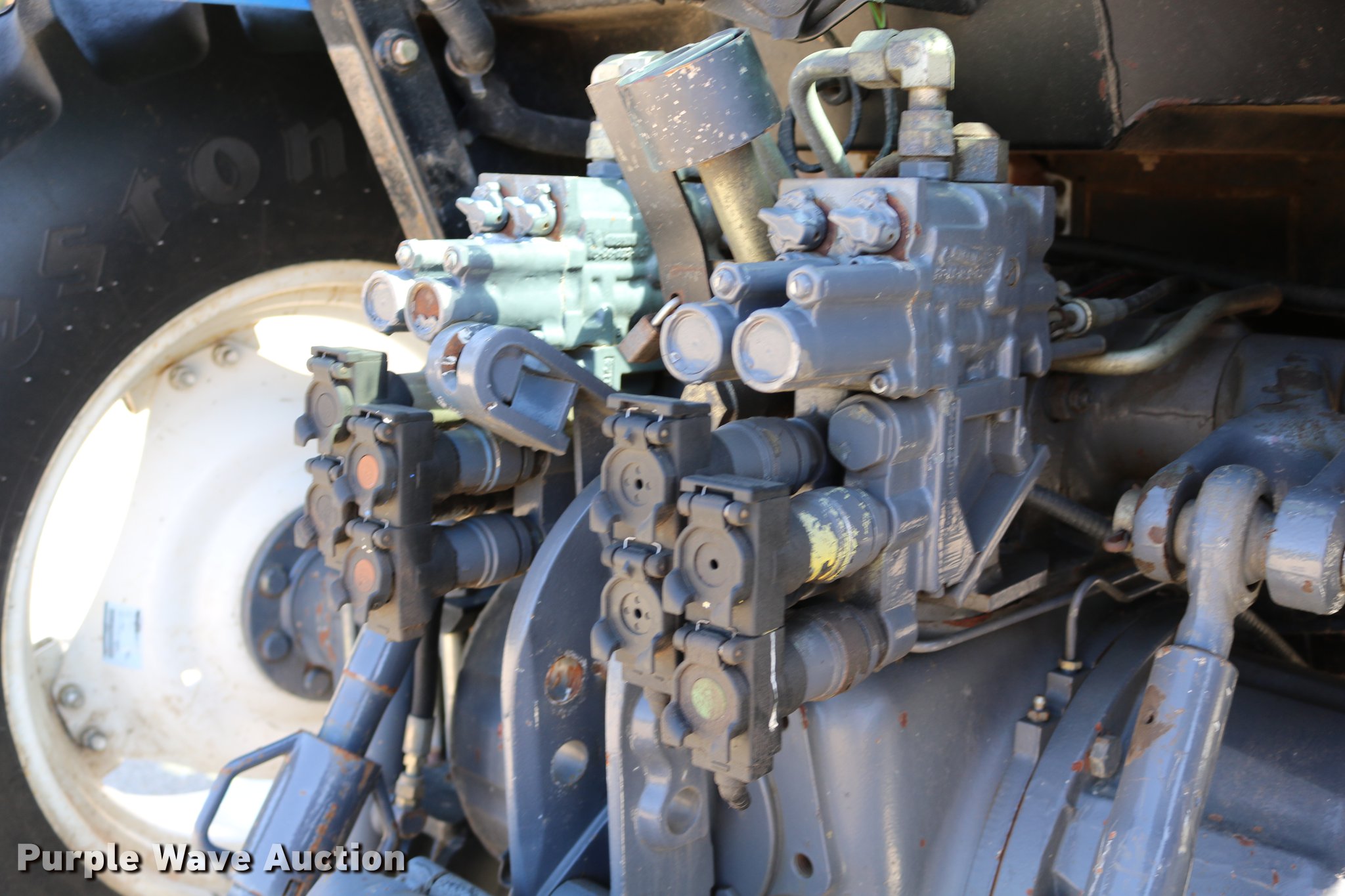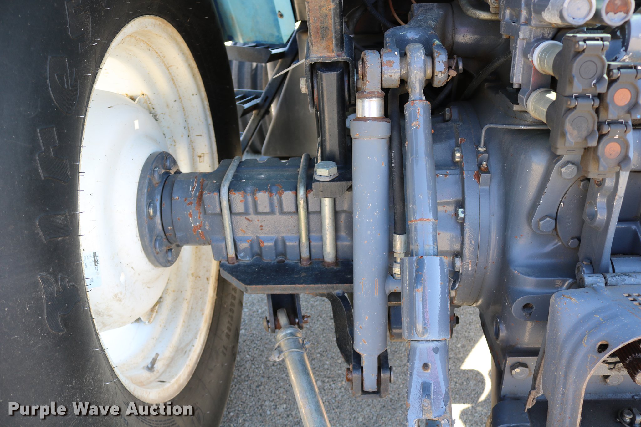 Purple Wave is selling a used Tractor in Kansas. This item is a 2002 New Holland TS100 tractor with the following: 5,691 hours on meter, Four cylinder turbo diesel engine, 80 HP, Synchro shuttle transmission, 24F-24R gears, AC and heat, AM/FM, Air suspension seat, Tilt steering wheel, Visors, Three point, 540/1000 PTO, Seven pin outlet, ISO electrical outlet, (4) rear hydraulic remote sets, (8) suitcase weights, 11L-15 front tires, 18.4-30 rear tires, Lighting issues, Fuel cap damaged, Grill loose, Antenna broken, No top link, Battery weak, Serial 176264B618120, KDOT ID 352-2032