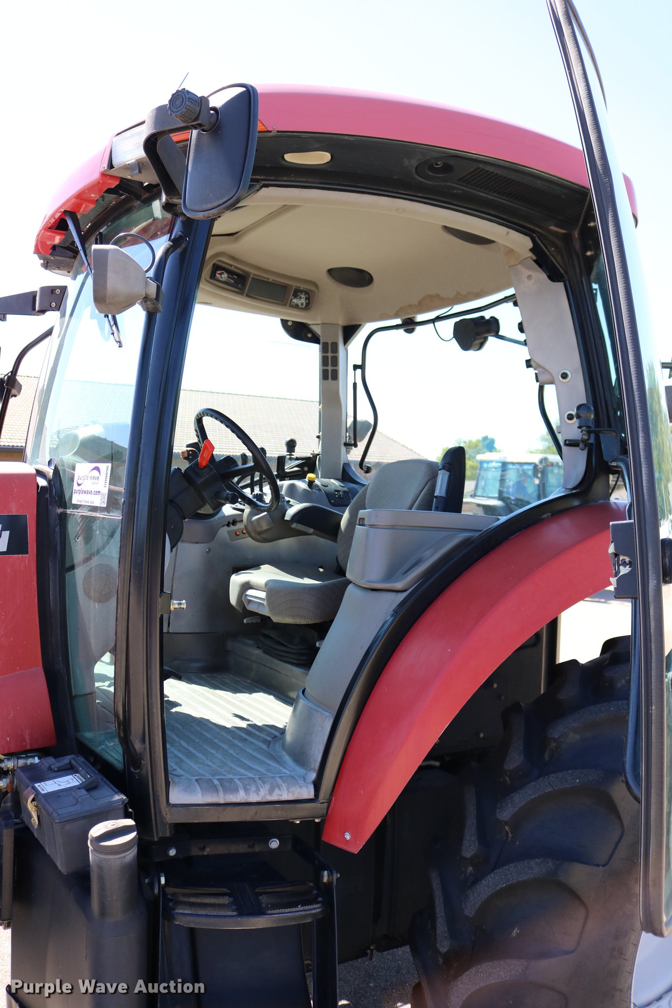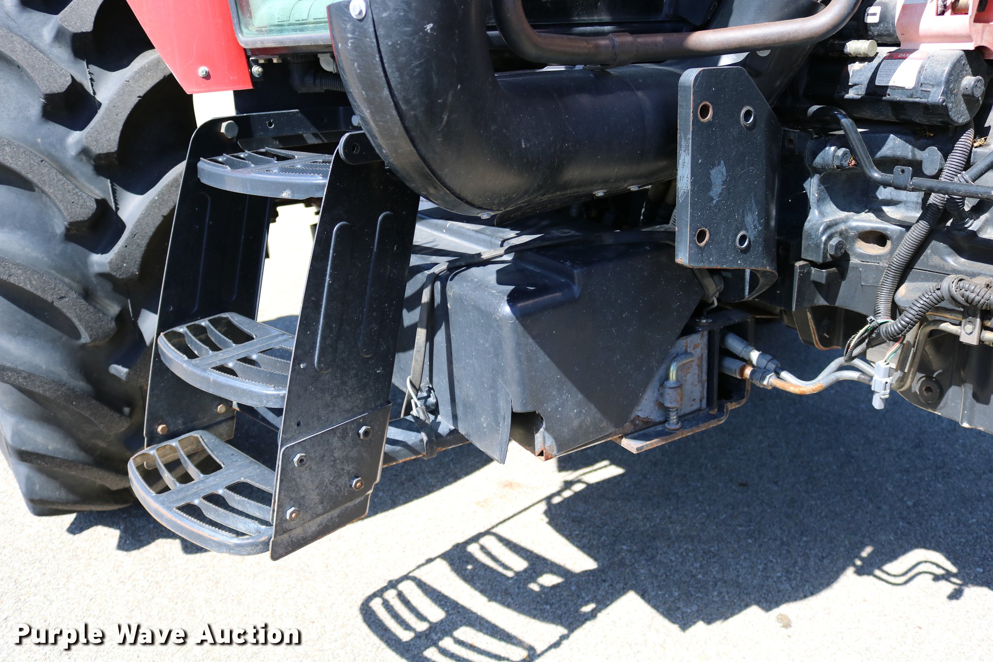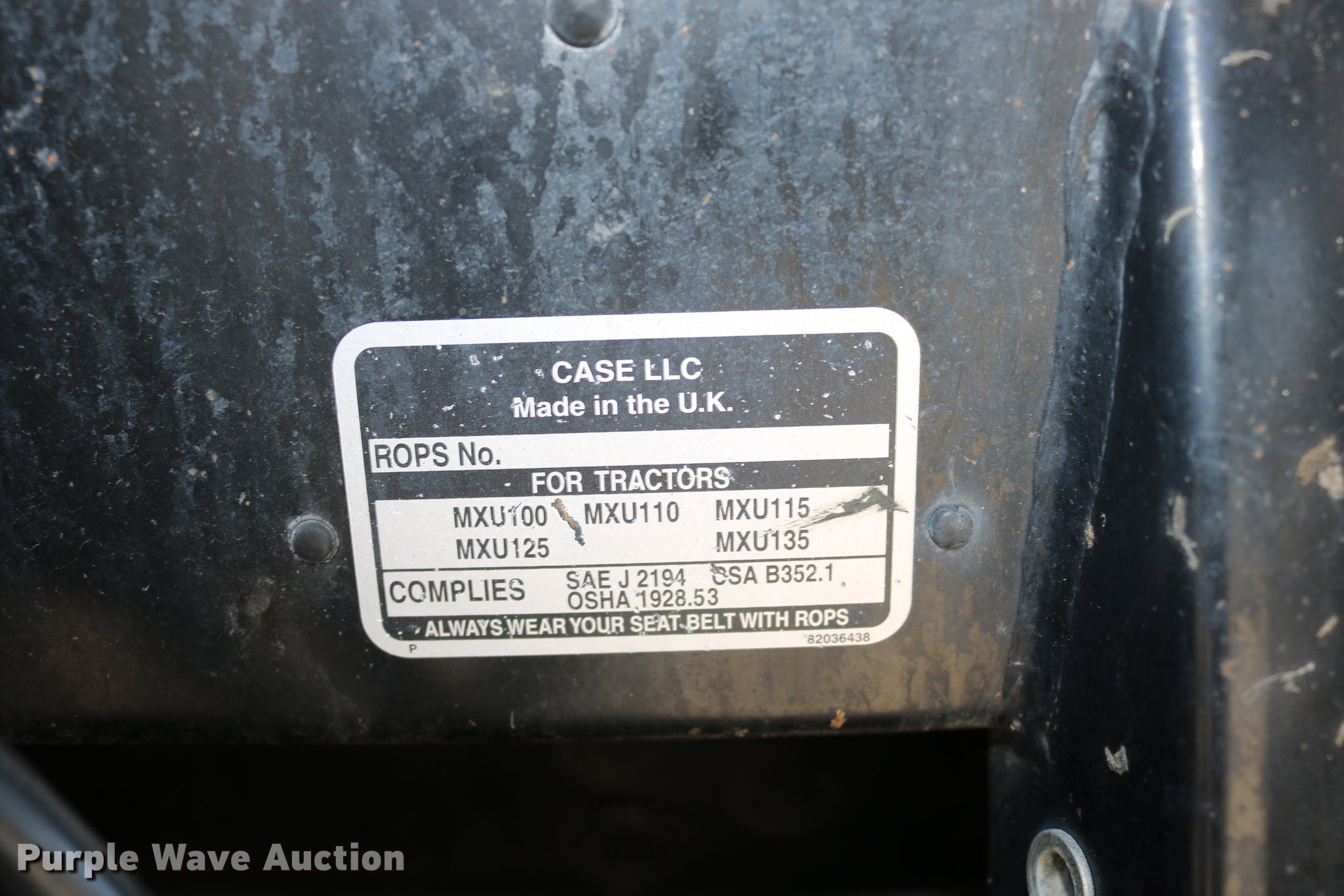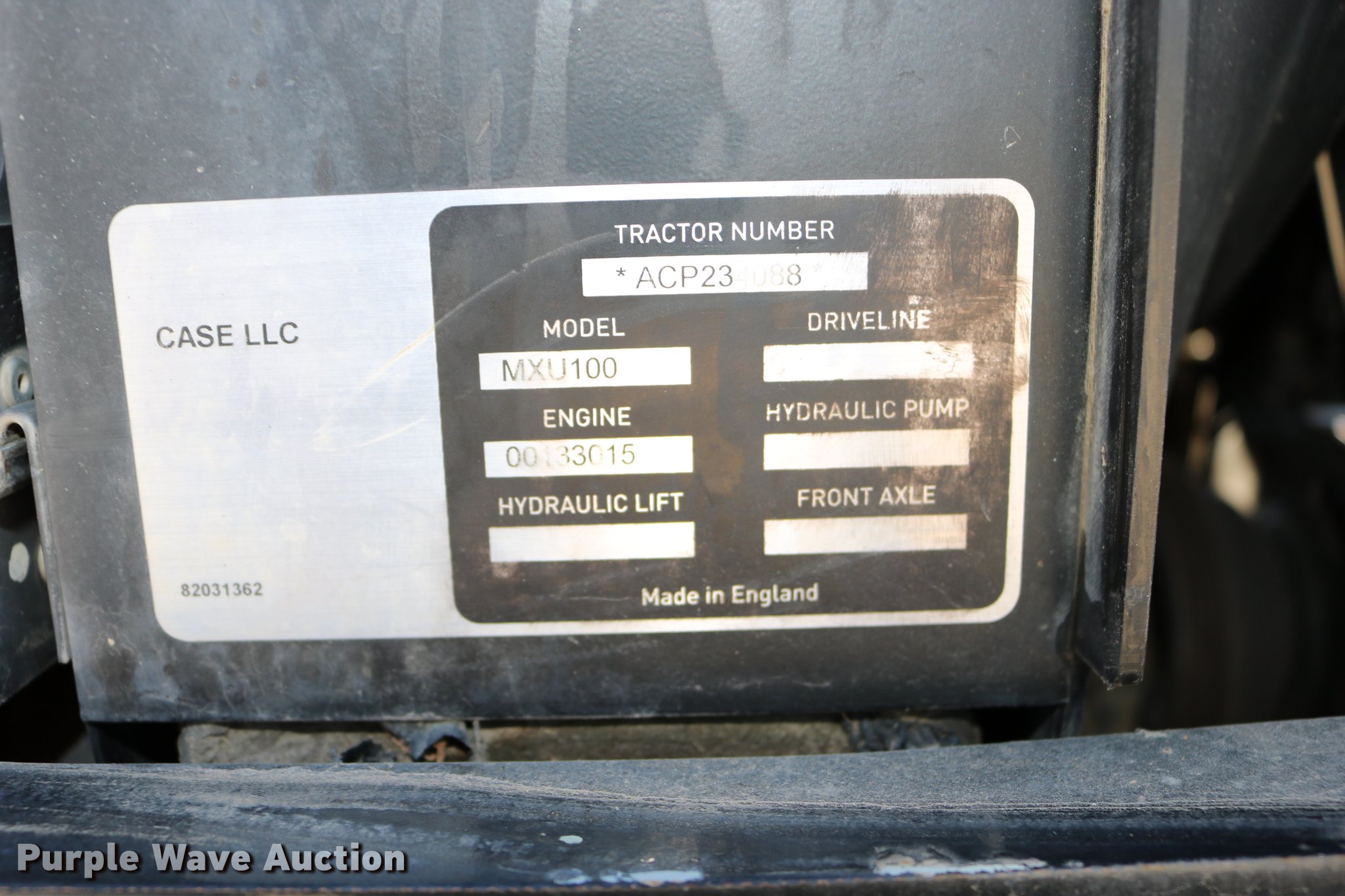 Purple Wave is selling a used Tractor in Kansas. This item is a 2004 Case MXU-100 tractor with the following: 5,061 hours on meter, Case four cylinder turbo diesel engine, 90 HP, Serial 00133015, Powershift transmission, 24F-24R gears, Left-Hand reverser, Differential lock, AC and heat, AM/FM/CD, Spring suspension seat, Tilt steering wheel, Visors, Three point, 540/1000 PTO, Drawbar, Seven pin outlet, ISO electrical outlet, (4) rear hydraulic remote sets, (8) suitcase weights, 11L16SL front tires, 18.4-30 rear tires, No three point arms, No top link, Battery weak, Mirrors missing, Serial ACP234088, KDOT ID 352-2014