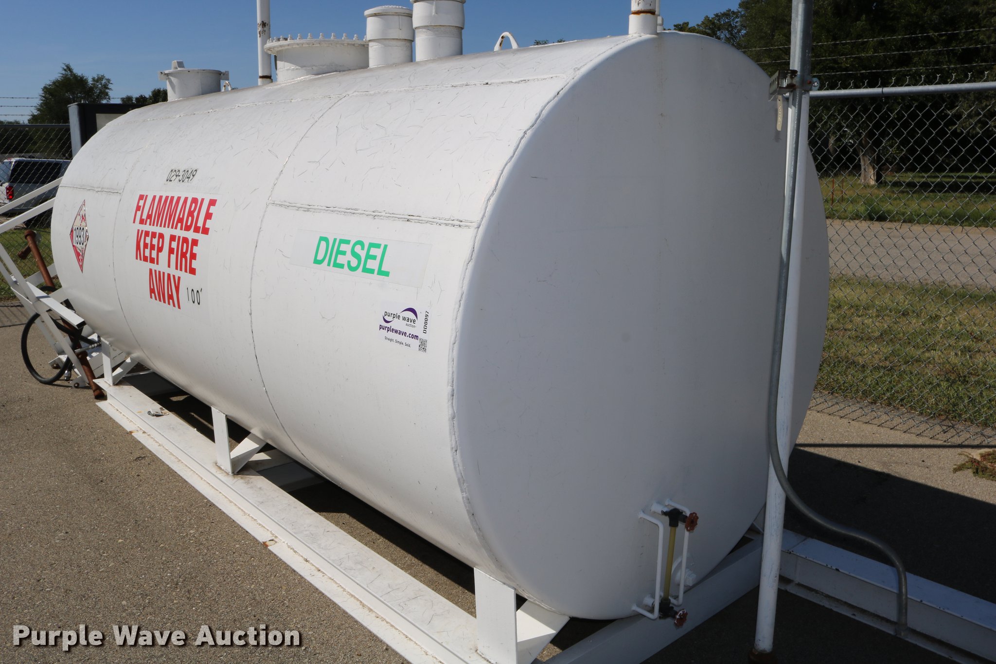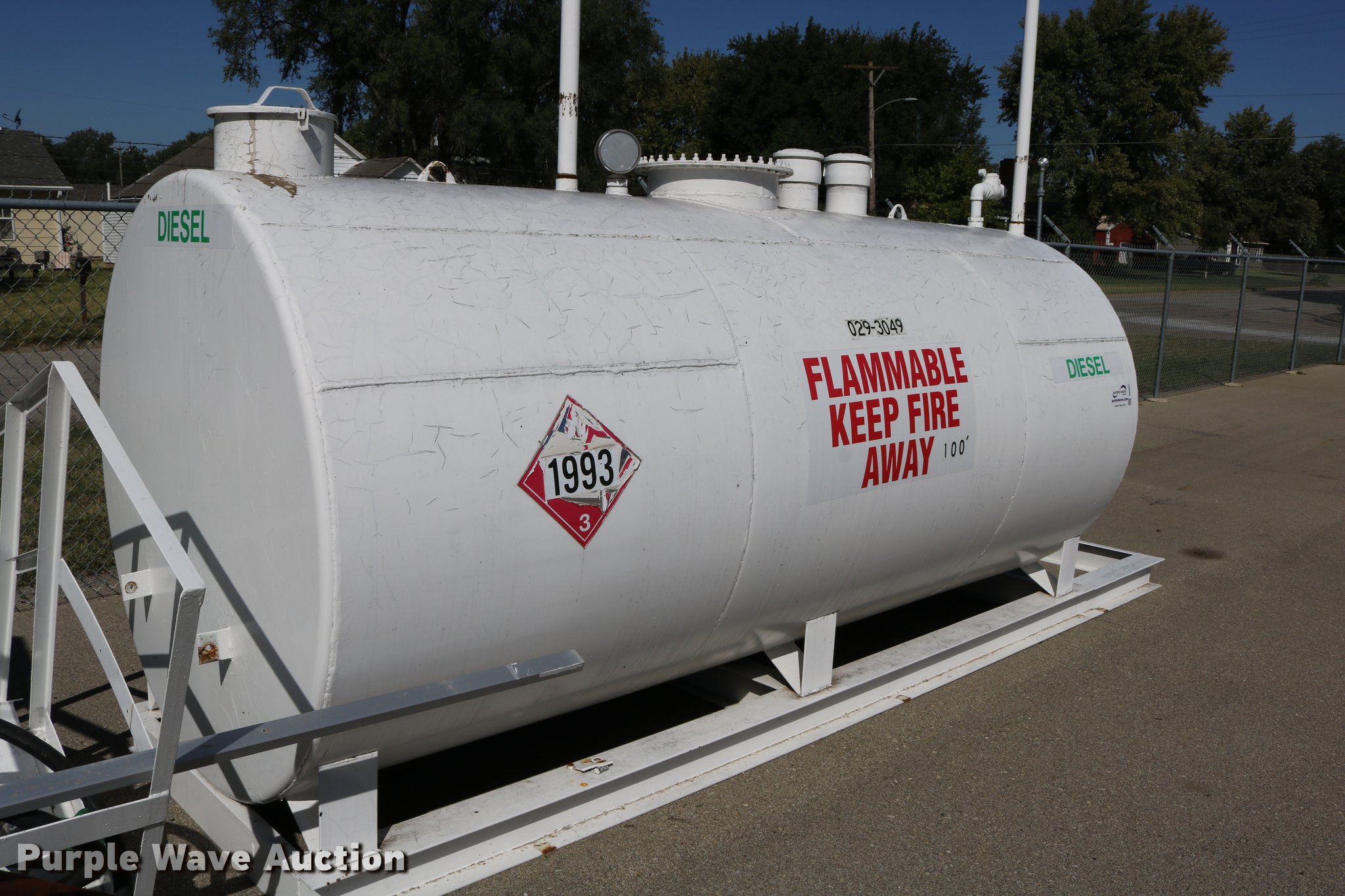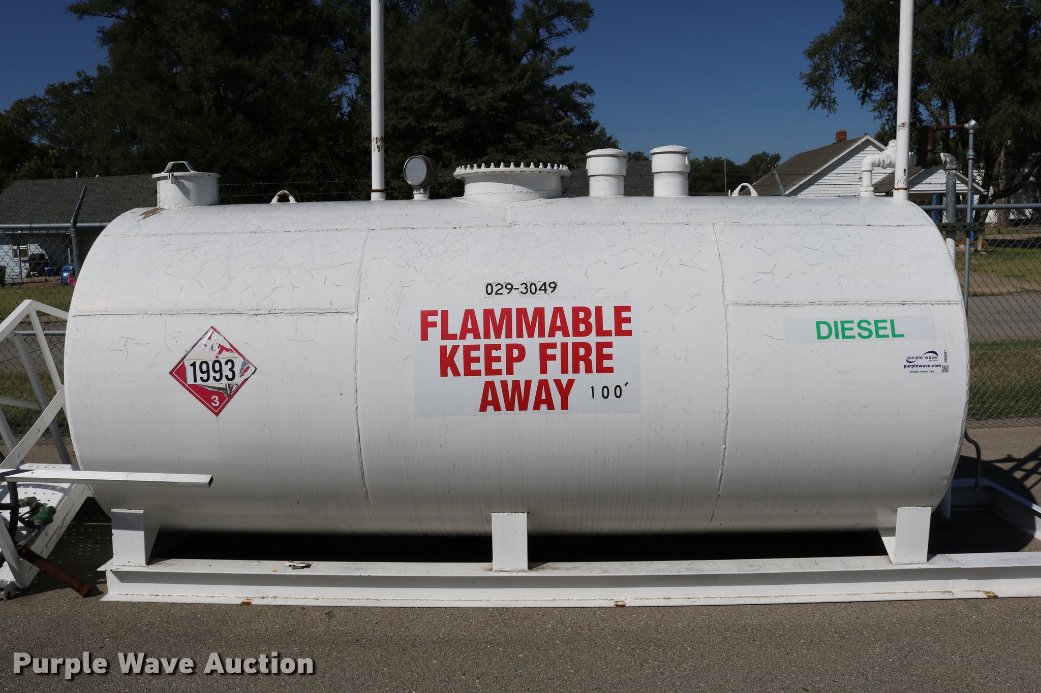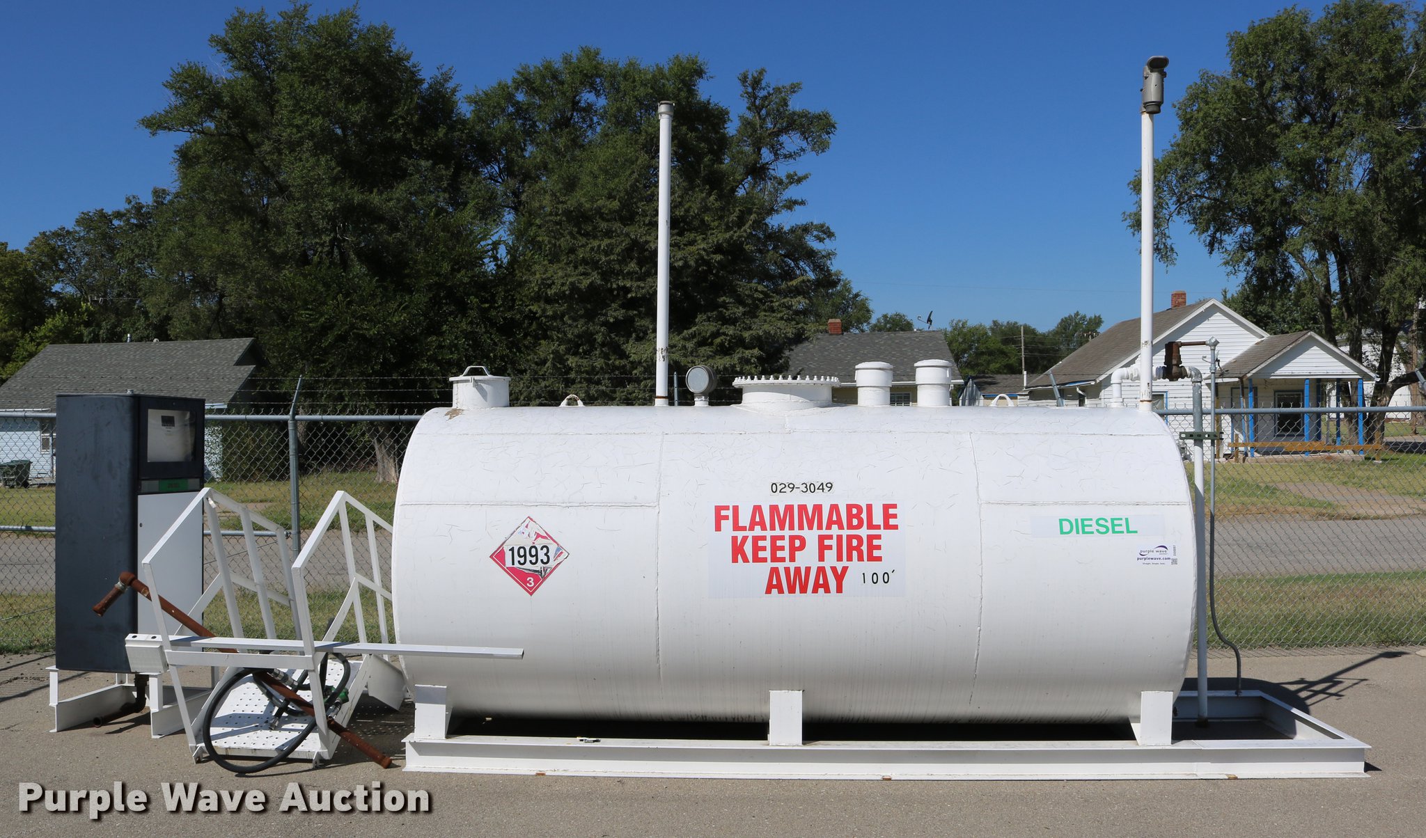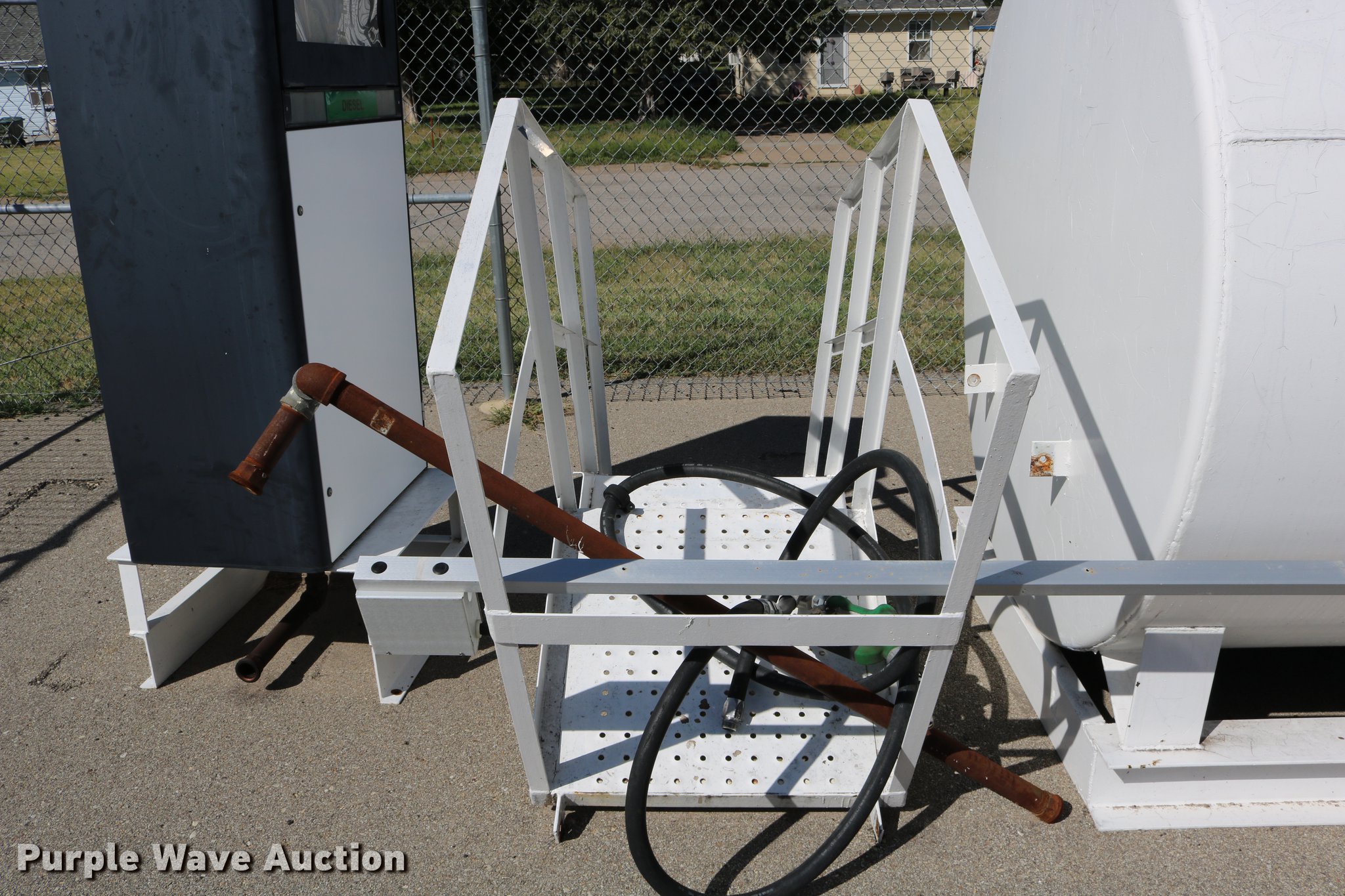 Purple Wave is selling a used Fuel and Lube in Kansas. This item is a 1993 Smith fuel tank with the following: 2,000 gallon capacity, Bennett Island pump, Skid mounted, Steps, Venting pipes, Hose, Nozzle, Unit has pumped 235,644 gallons, Previously held diesel, KDOT ID 029-3049