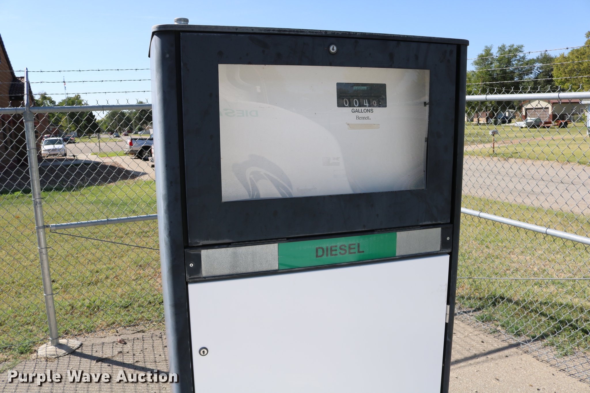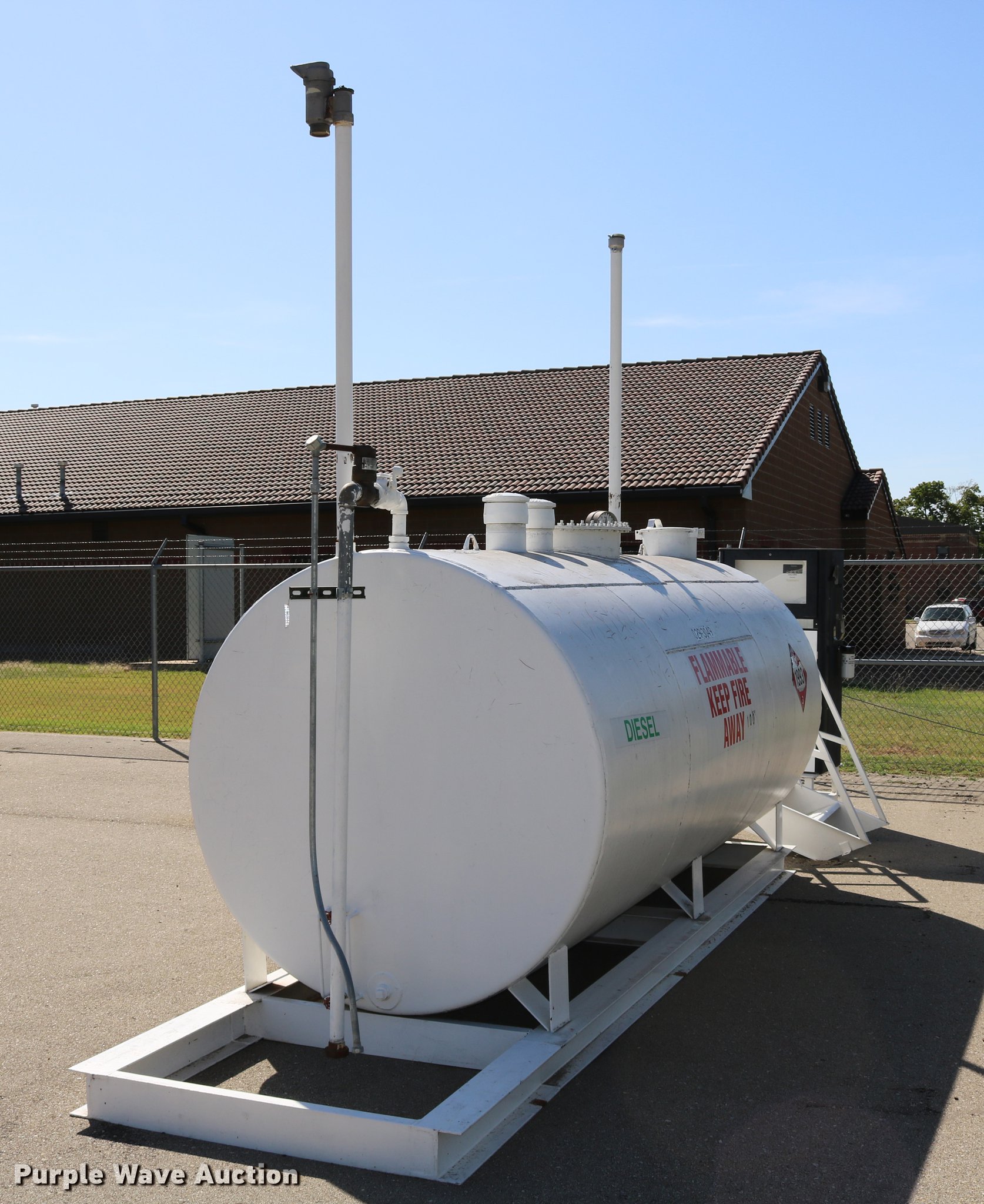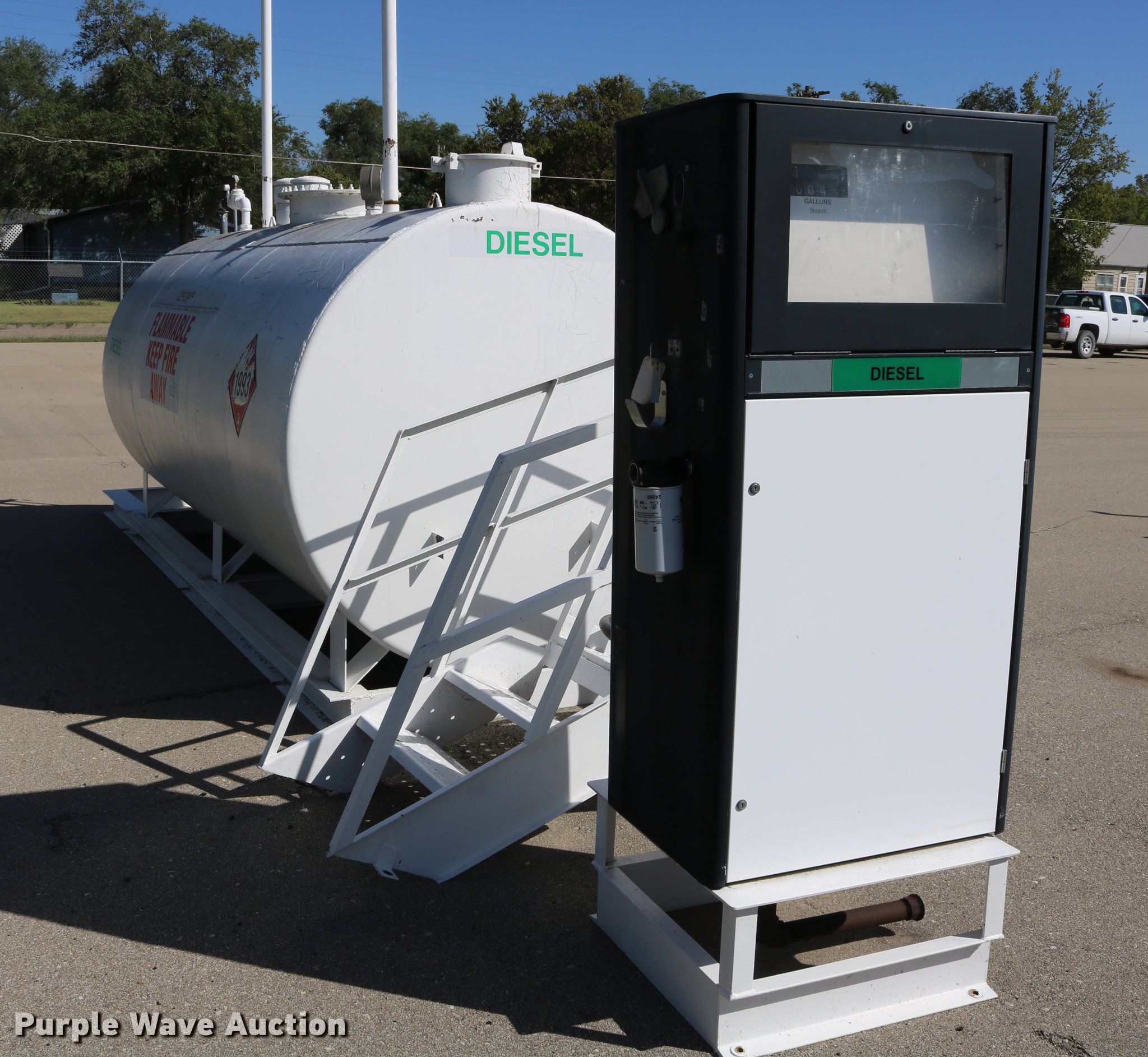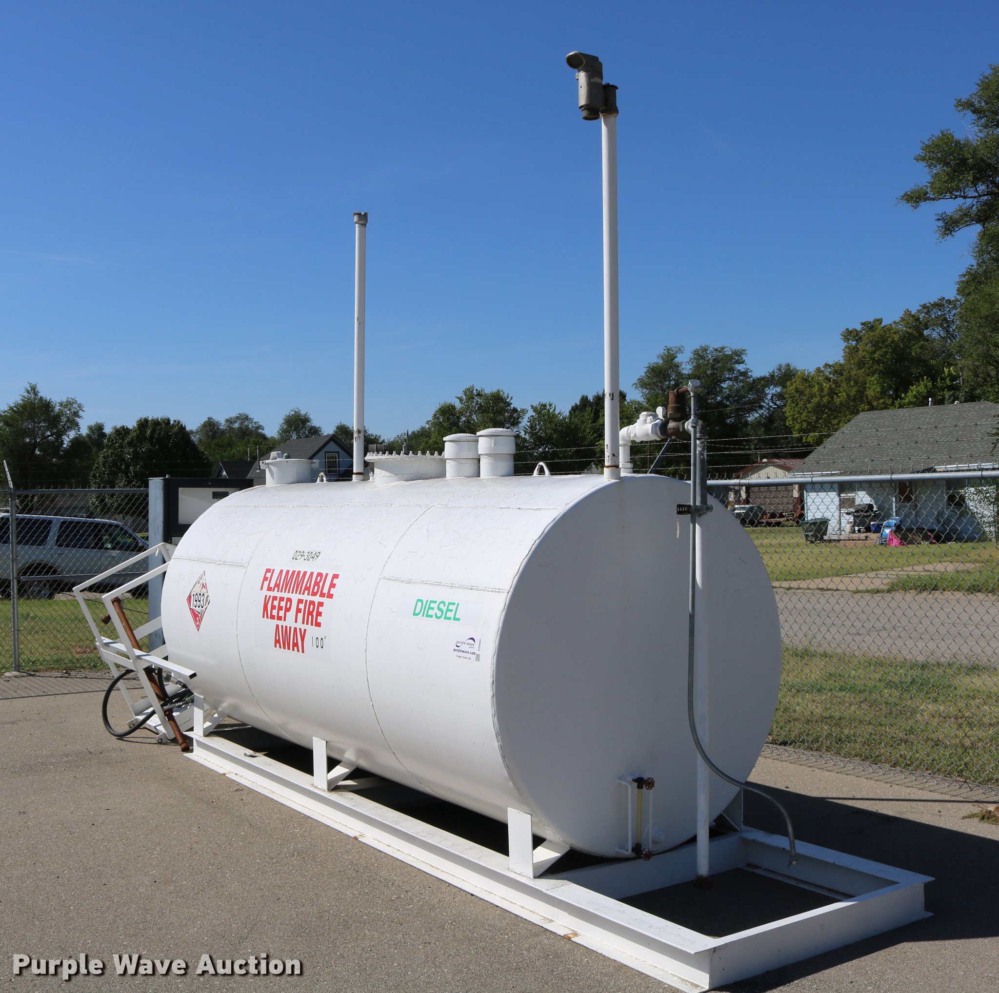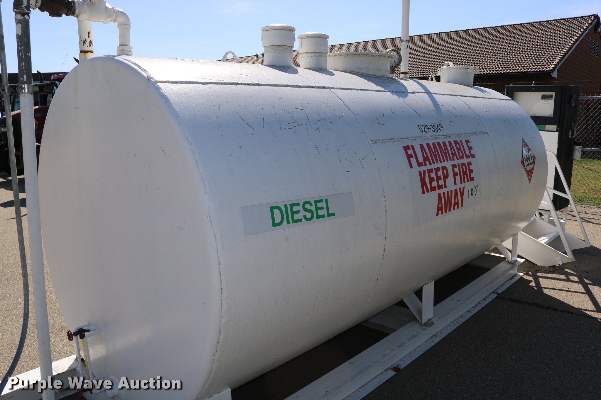 Purple Wave is selling a used Fuel and Lube in Kansas. This item is a 1993 Smith fuel tank with the following: 2,000 gallon capacity, Bennett Island pump, Skid mounted, Steps, Venting pipes, Hose, Nozzle, Unit has pumped 235,644 gallons, Previously held diesel, KDOT ID 029-3049