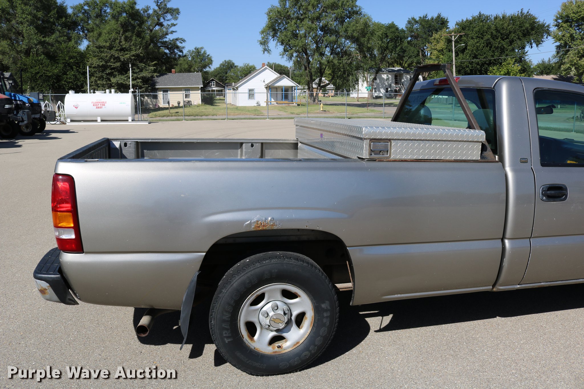 Purple Wave is selling a used 1/2 Ton Pickup or Van in Kansas. This item is a 2002 Chevrolet Silverado 1500 pickup truck with the following: 211,099 miles on odometer, 4.3L V6 OHV 12V gas engine, Automatic transmission, AC and heat, Tilt, Cruise, AM/FM, Manual windows and locks, Cloth interior, Cross bed toolbox, Receiver hitch, Trailer wiring, 245/75R16 tires, Steering system needs repairs, Driver's door lock needs repair, Tailgate latch needs repair, Backup lights need repair, Weak battery, KDOT ID 052-2202