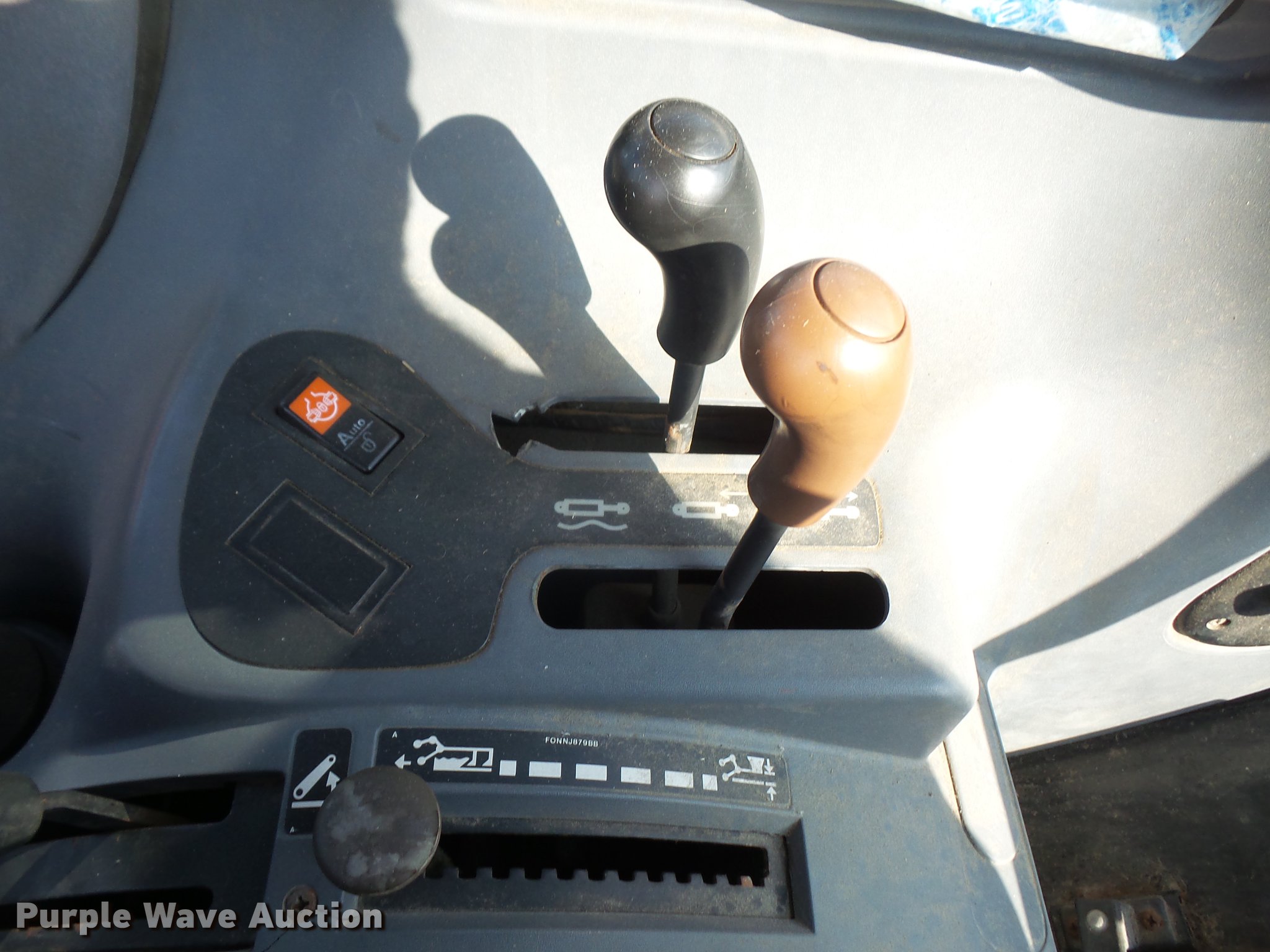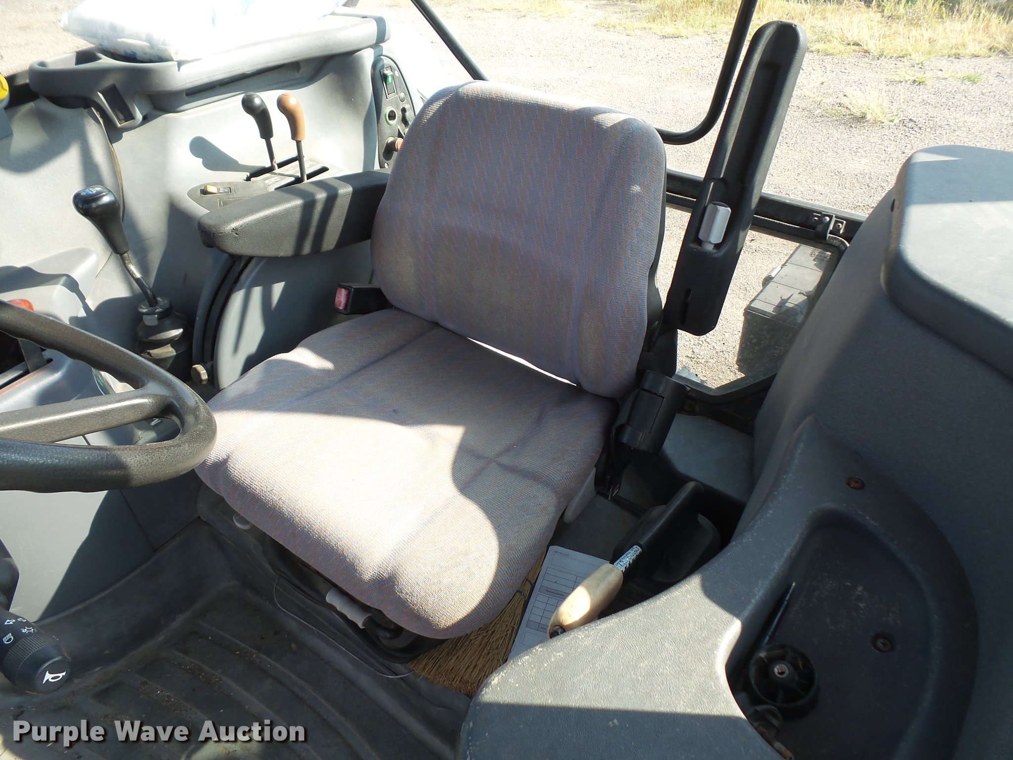 2002 New Holland TS100 tractor. 3,872 hours on meter, New Holland 450T/PF 5.0L four cylinder turbo diesel engine 98 HP, Dual Command transmission 24F-24R gears, AC and heat, AM/FM, Spring suspension seat, Tilt steering wheel, Visors, Quicke Q750 loader 72"W bucket, Quick attach, Joystick control, Three point, 1000 PTO, Seven pin outlet, (4) rear hydraulic remote sets, 11L-16 front tires, 18.4-30 rear tires, Battery dead, Transmission shifter loose Unit will start in gear with push button, Serial 618120, KDOT ID 352-1102. Kansas Department of Transportation - Topeka. 101 SW Gage Blvd. Topeka, KS 66606