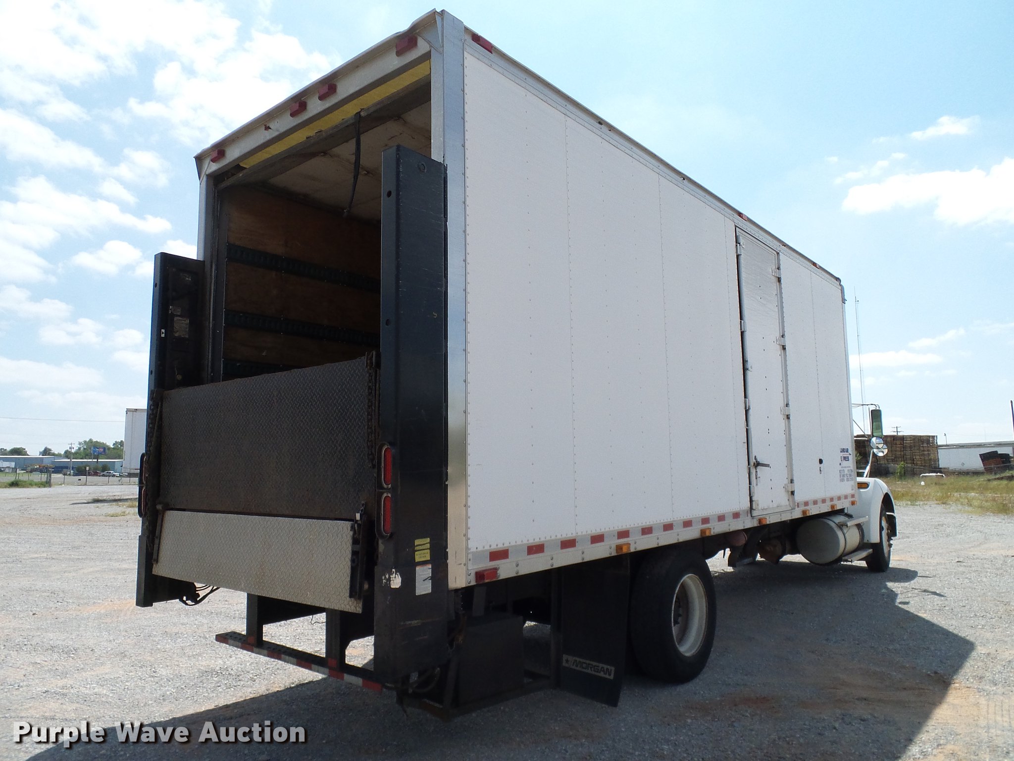 Purple Wave is selling a used Box Truck in Oklahoma. This item is a 2006 Kenworth T300 box truck with the following: 153,643 miles on odometer, Actual mileage unknown, Caterpillar C7 7.2L L6 turbo diesel engine, Eaton Fuller six speed manual transmission, Single axle, AC and heat, Unknown operating condition of AC, AM/FM/CD, Power windows, Heated mirrors, Single exhaust stack, Morgan GVSD16924102 box bed, 24'L x 8'W, Wood floor, Swinging side door, Roll up rear door, Lift end gate, 4,400 lbs capacity, Serial MW105VB35415006, Dual fuel tanks, Air suspension, Air brakes, 261" wheelbase, 11R22.5 front tires, 295/75R22.5 rear tires, GVWR 26,000 lbs, Cracked windshield, Some floor boards need replaced, Unit# 335