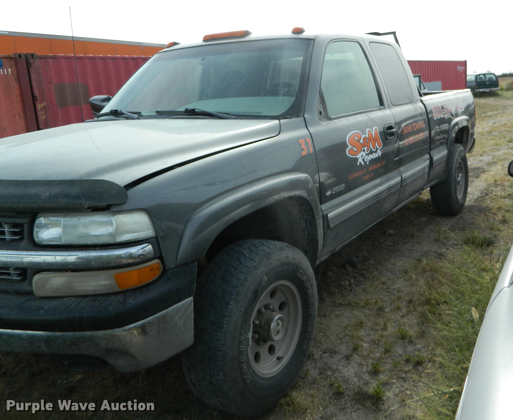 2000 Chevrolet Silverado 2500 Ext. Cab pickup truck. 265,000 miles on odometer, 6.0L V8 OHV 16V gas engine, Automatic transmission, Four wheel drive, AC and heat, Tilt, Cruise, AM/FM/CD, Power windows, locks, and mirrors, Cloth interior, Gooseneck hitch, Receiver hitch, Trailer wiring, 265/75R16 tires, Transmission issue, Battery bad, Vehicle must be towed or hauled. Kansas title. 1GCGK29U0YE257779. S & M Towing. 1008 W 17th St. Goodland, KS 67735