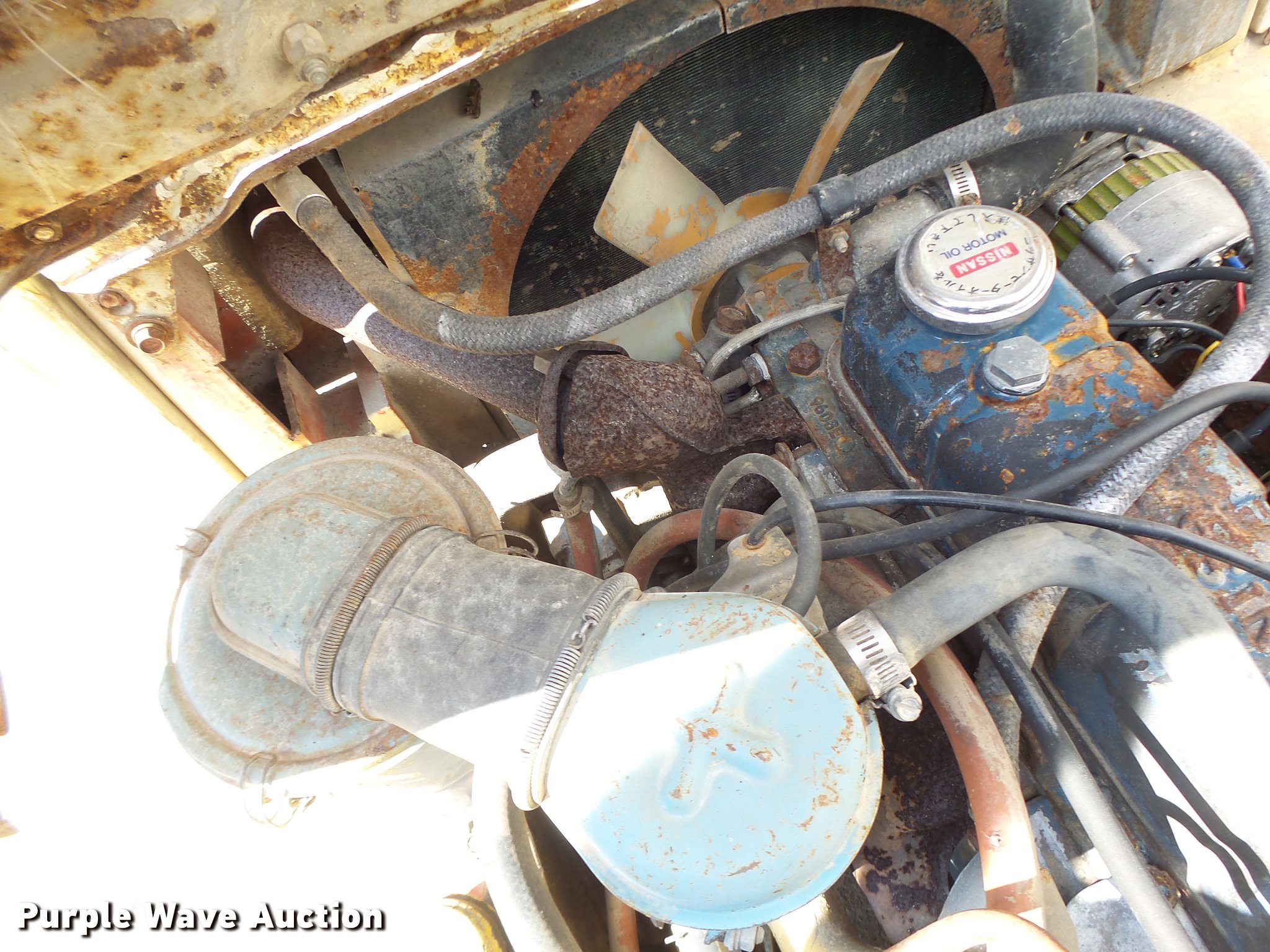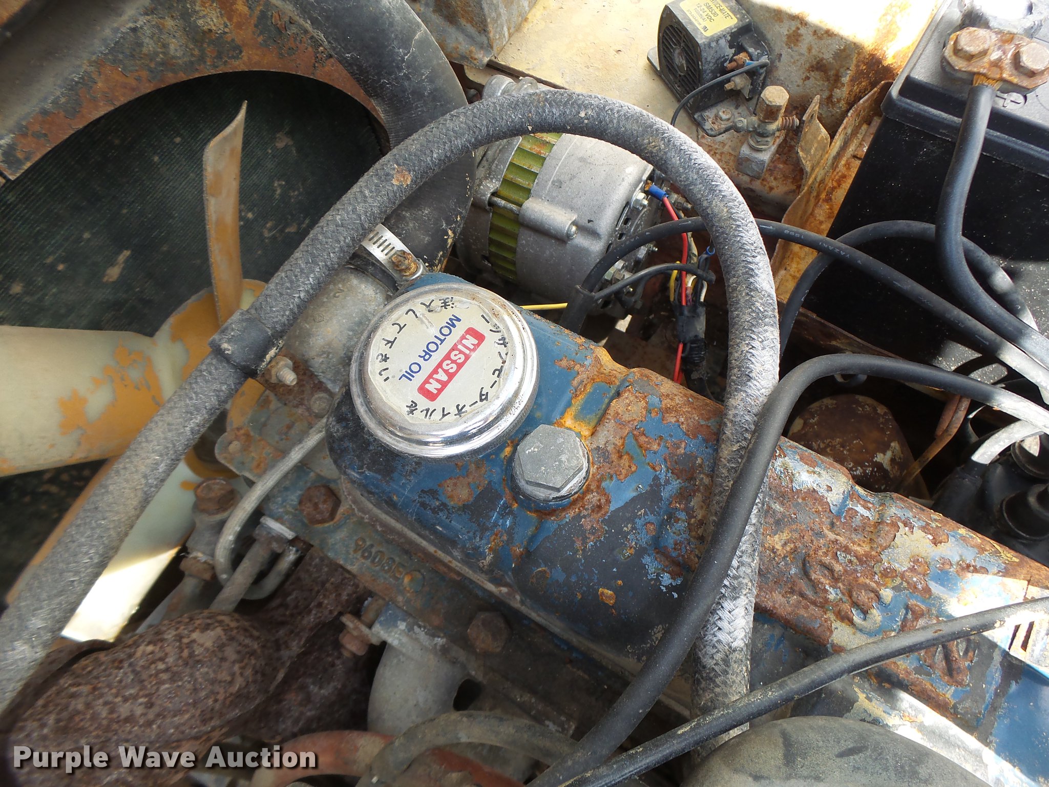 Purple Wave is selling a used Warehouse Forklift in Missouri. This item is a Datsun CPF02A25V forklift with the following: 6,367 hours on meter, Nissan four cylinder LPG engine, Shuttle shift transmission, Canopy, 5,000 lbs lift capacity, Three stage mast, Mast tilt, 48"L forks, Solid tires, No forward movement, will not drive, Dead battery, Serial 04486