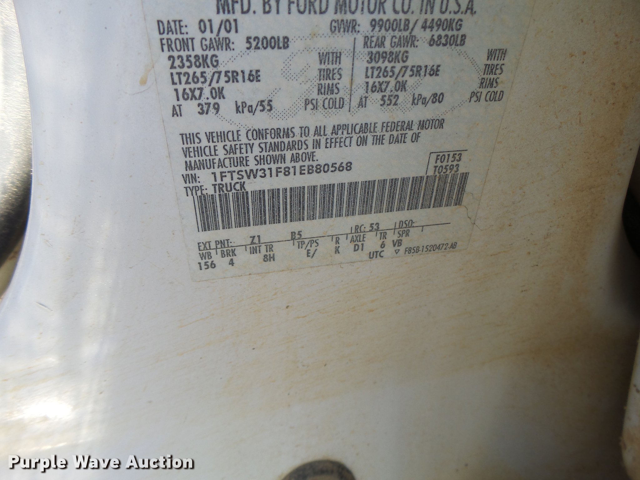 Take a look at this used 2001 Ford F350 Crew Cab pickup truck being sold on October 25th, 2017 in the SOLD! October 25 Vehicles and Equipment Auction made by Ford. Take a look at all of the item information below or take a look at similar auctions for Pickups and Vans.