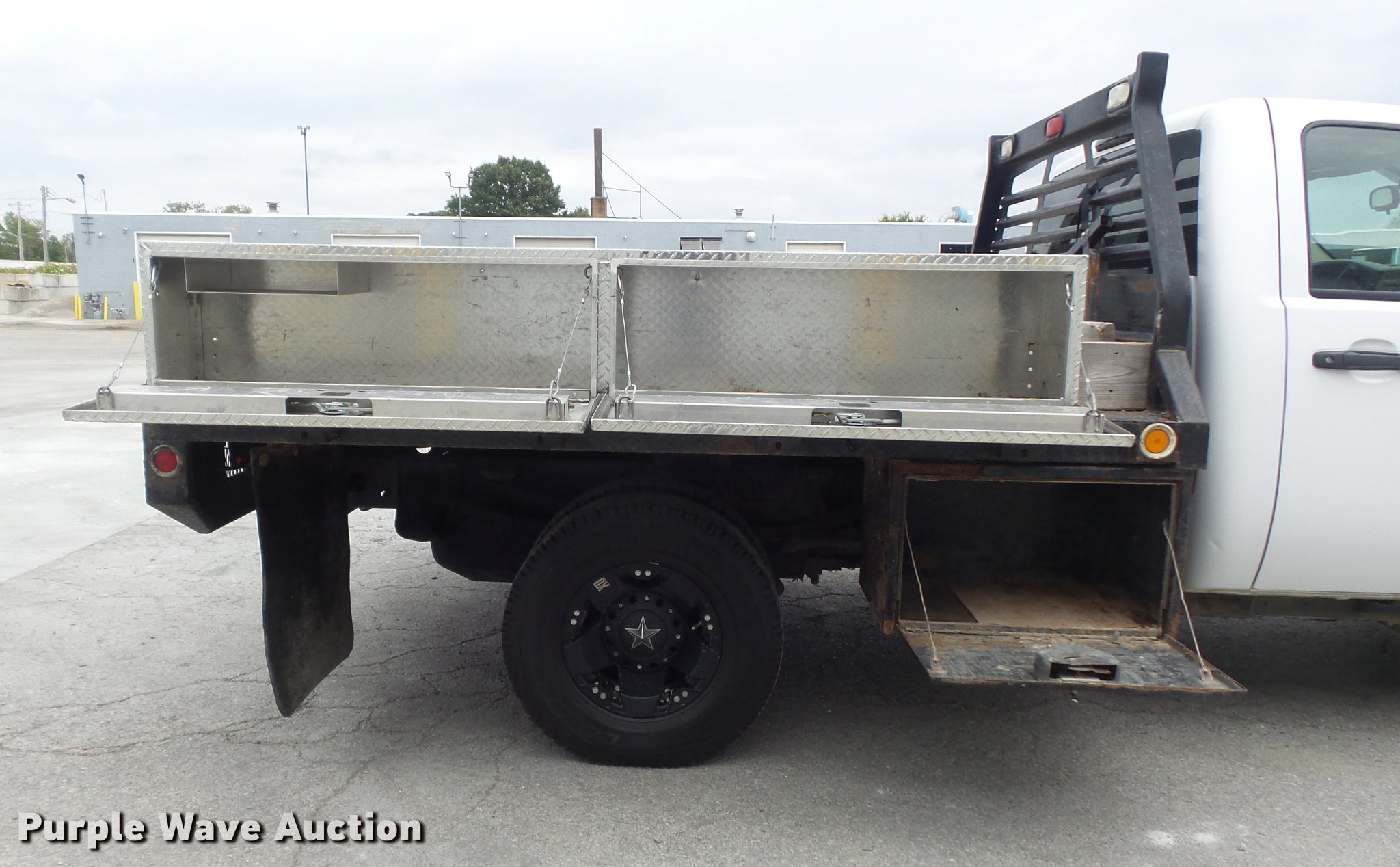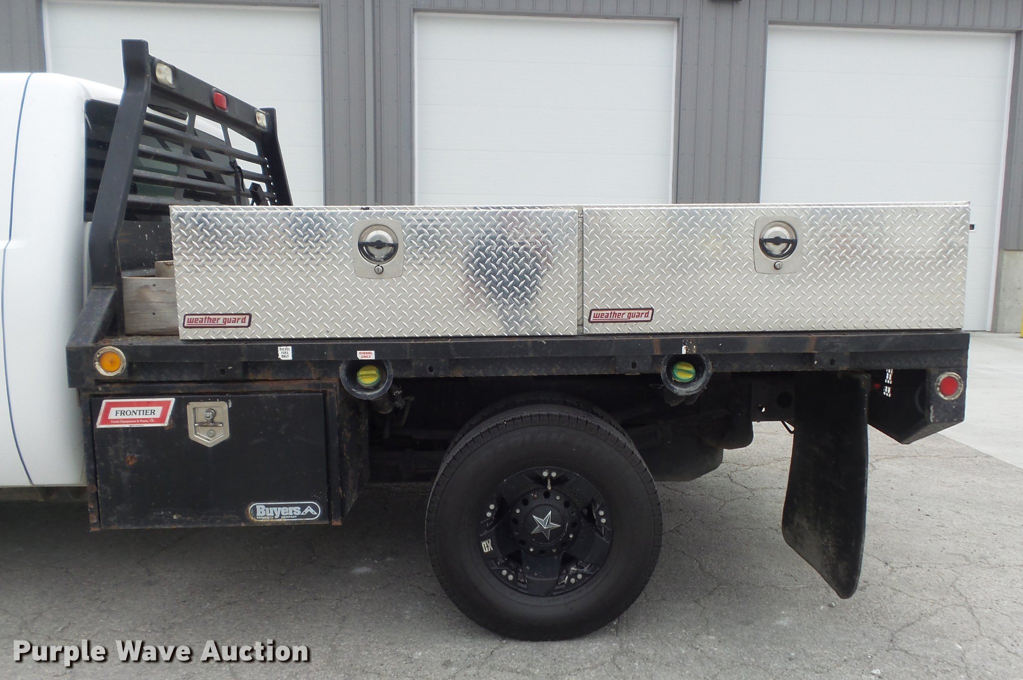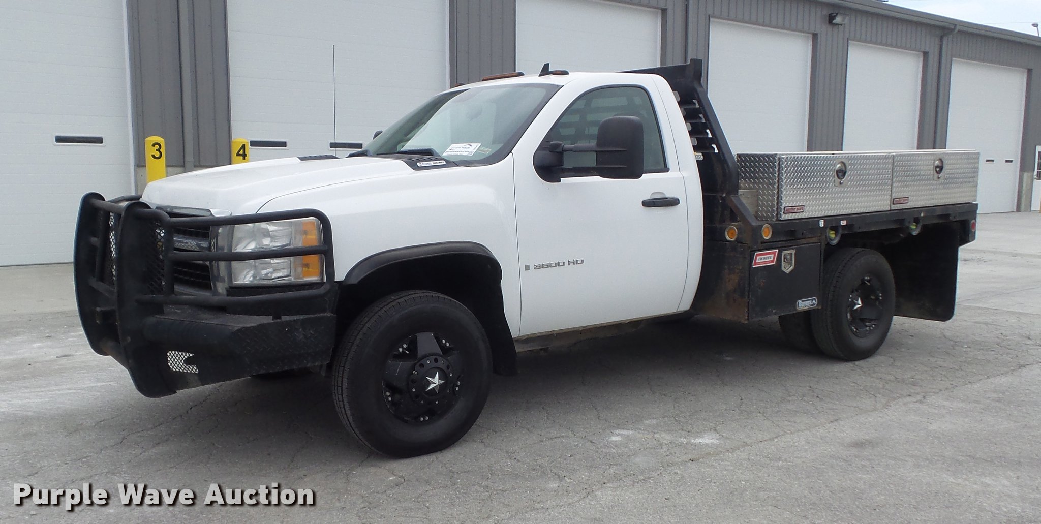 Purple Wave is selling a used 3/4 or 1 Ton Pickup or Van in Missouri. This item is a 2009 Chevrolet Silverado 3500HD flatbed pickup truck with the following: 221,612 miles on odometer, 6.6L V8 OHV 32V turbo diesel engine, Automatic transmission, Four wheel drive, AC and heat, Tilt, Cruise, AM/FM/CD, Manual windows and locks, Cloth interior, Omaha Standard Badger flatbed, 9'L x 96"W, (4) toolboxes, Stake pockets with rub rails, Removable ladder rack post, Gooseneck ball, Receiver hitch, LT235/85R16 tires, Check engine light on, Power steering is hard to turn at idle, possible power steering pump issues, Passenger door mirror cracked, Unit# T-260