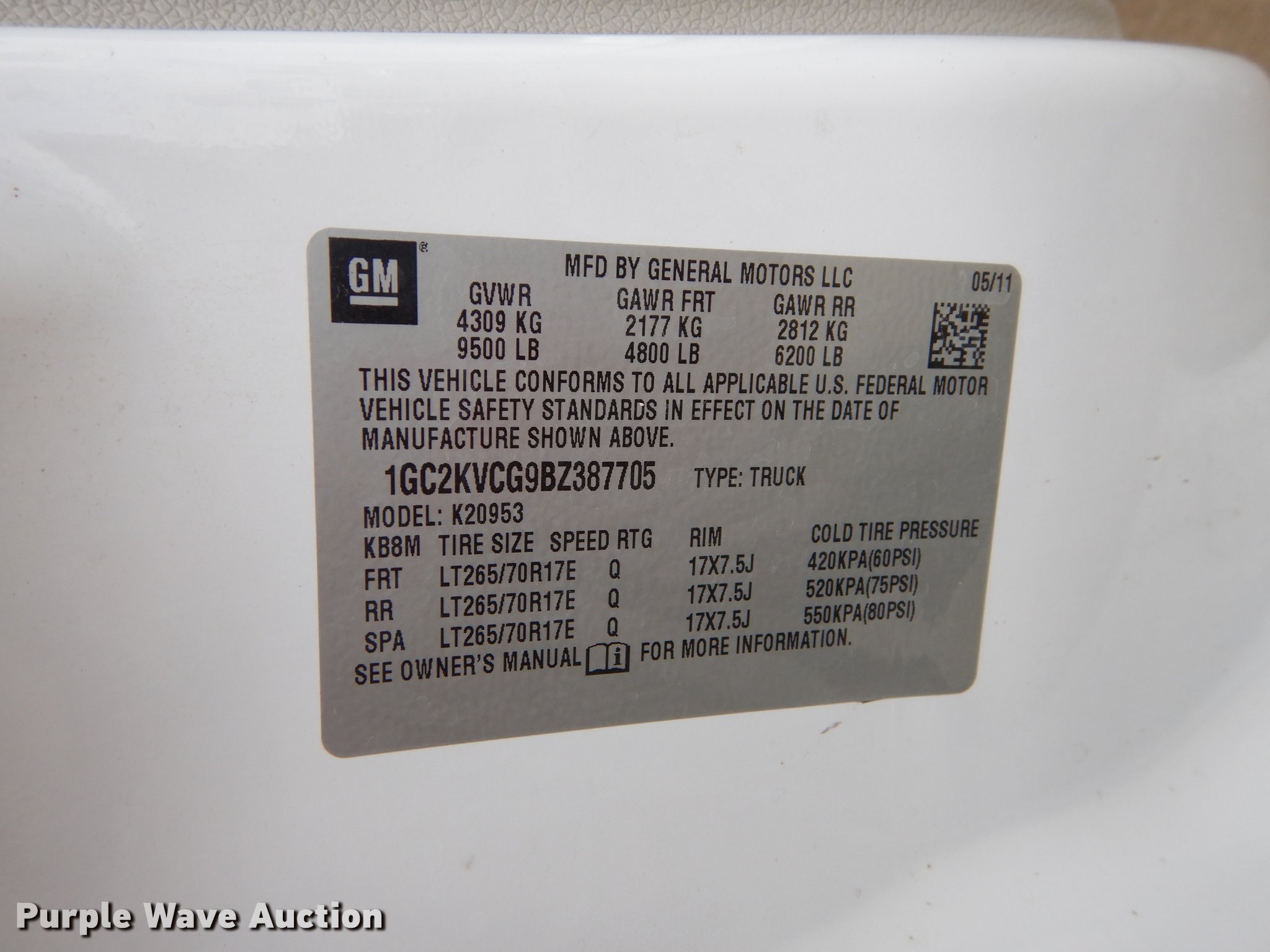 Purple Wave is selling a used 3/4 or 1 Ton Pickup or Van in Kansas. This item is a 2011 Chevrolet Silverado 2500HD Ext. Cab pickup truck with the following: 145,657 miles on odometer, 6.0L V8 OHV 16V FFV gas engine, Automatic transmission, Four wheel drive, AC and heat, Tilt, Cruise, AM/FM/CD, Power windows, locks, and mirrors, Cloth interior, Front tow hooks, Running boards, Long bed, Receiver hitch, 265/70R17 tires, Unit# 1837