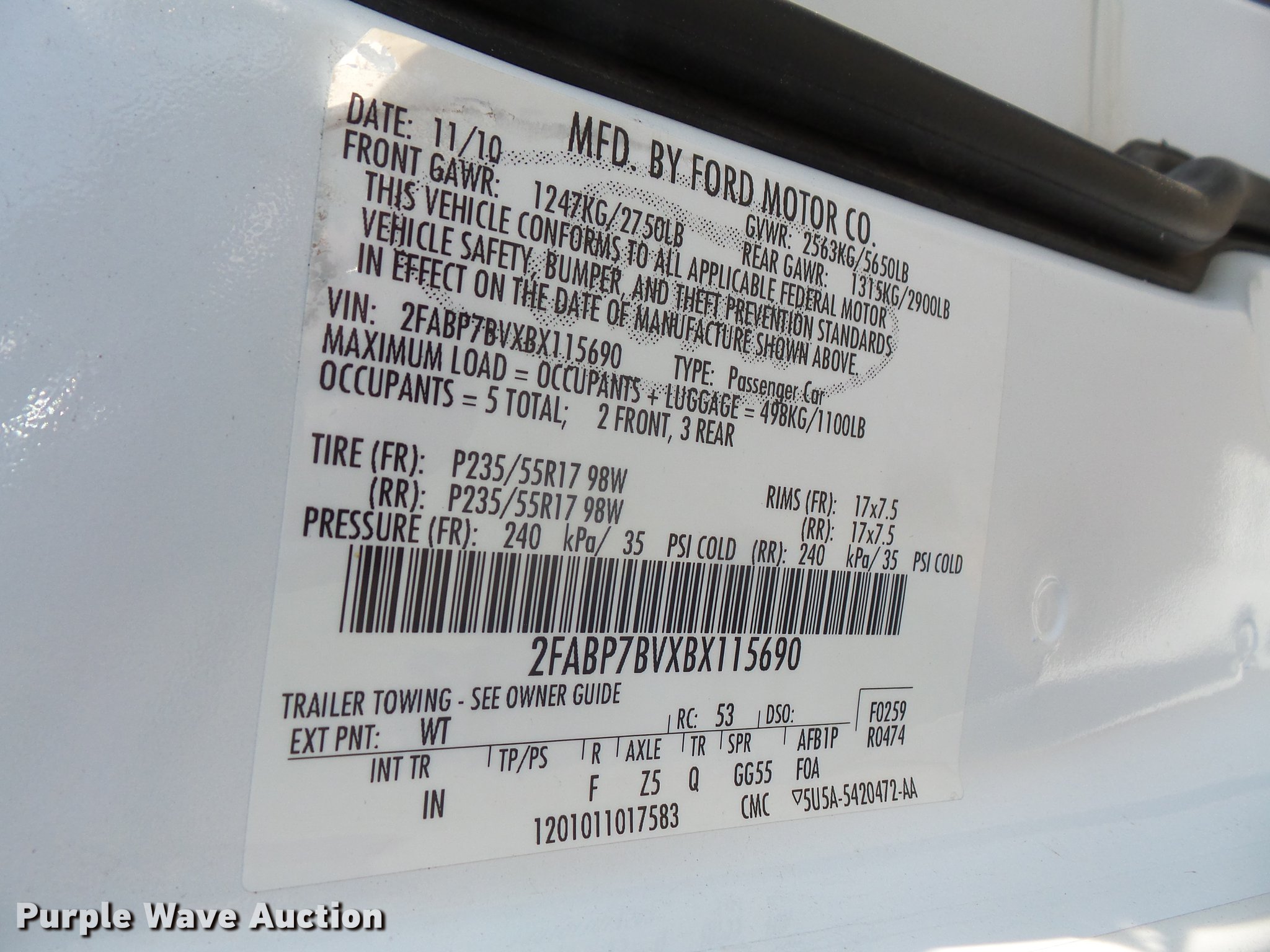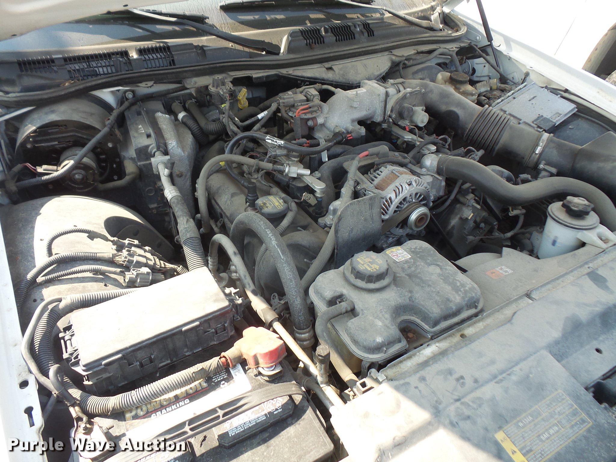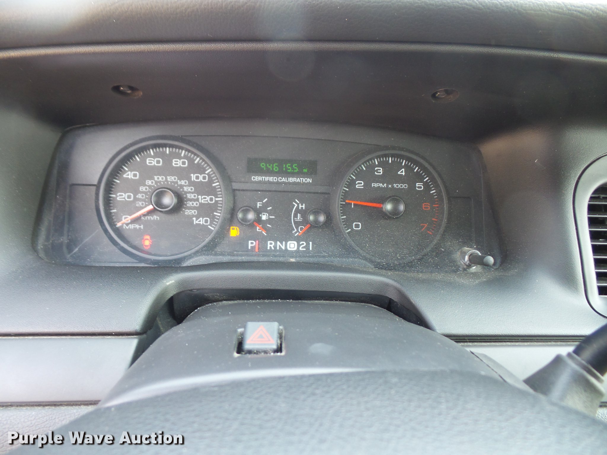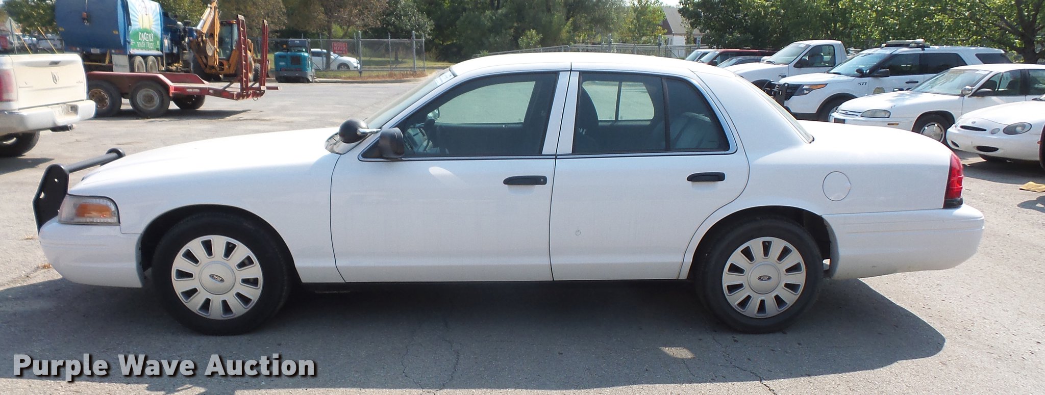 Purple Wave is selling a used Passenger Vehicle in Kansas. This item is a 2011 Ford Crown Victoria Police Interceptor with the following: 94,615 miles on odometer, 4.6L V8 SOHC 16V FFV gas engine, Automatic transmission, AC and heat, Tilt, Cruise, AM/FM, Power windows, locks, and mirrors, Cloth front interior, Vinyl rear interior, Spotlight, Grill guard, 235/55R17 tires, Unit# 120
