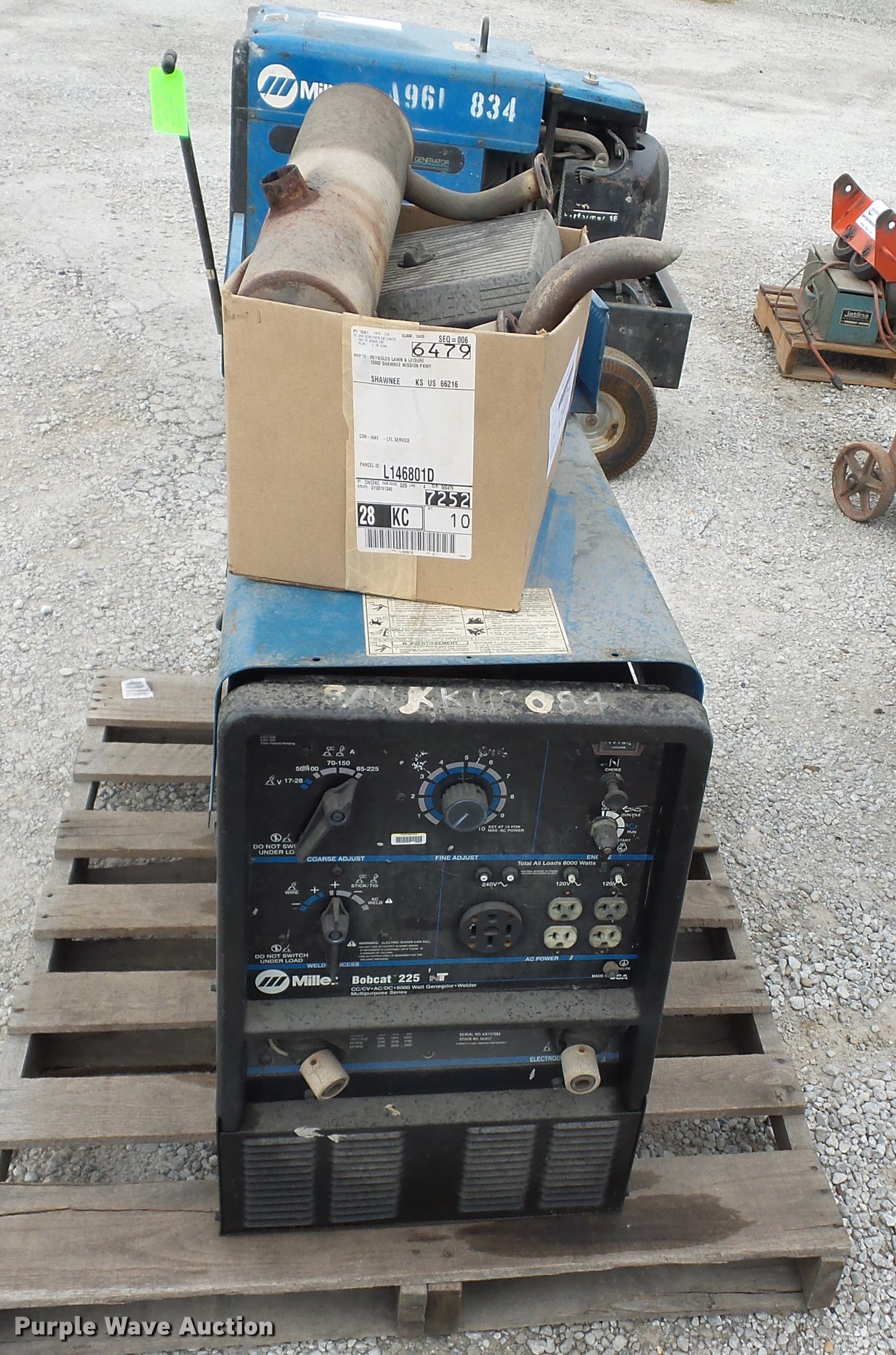 Purple Wave is selling a used Welder (Manual) in Missouri. This item is a Miller Bobcat 225NT welder/generator with the following: 8,000 watt generator, 120V outputs, 240V outputs, Unknown operating condition