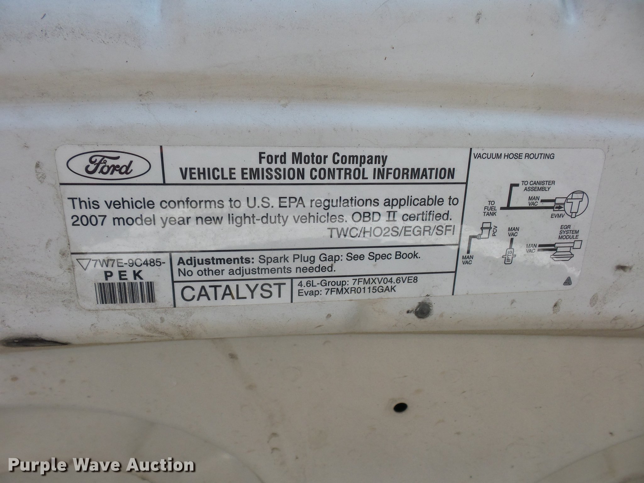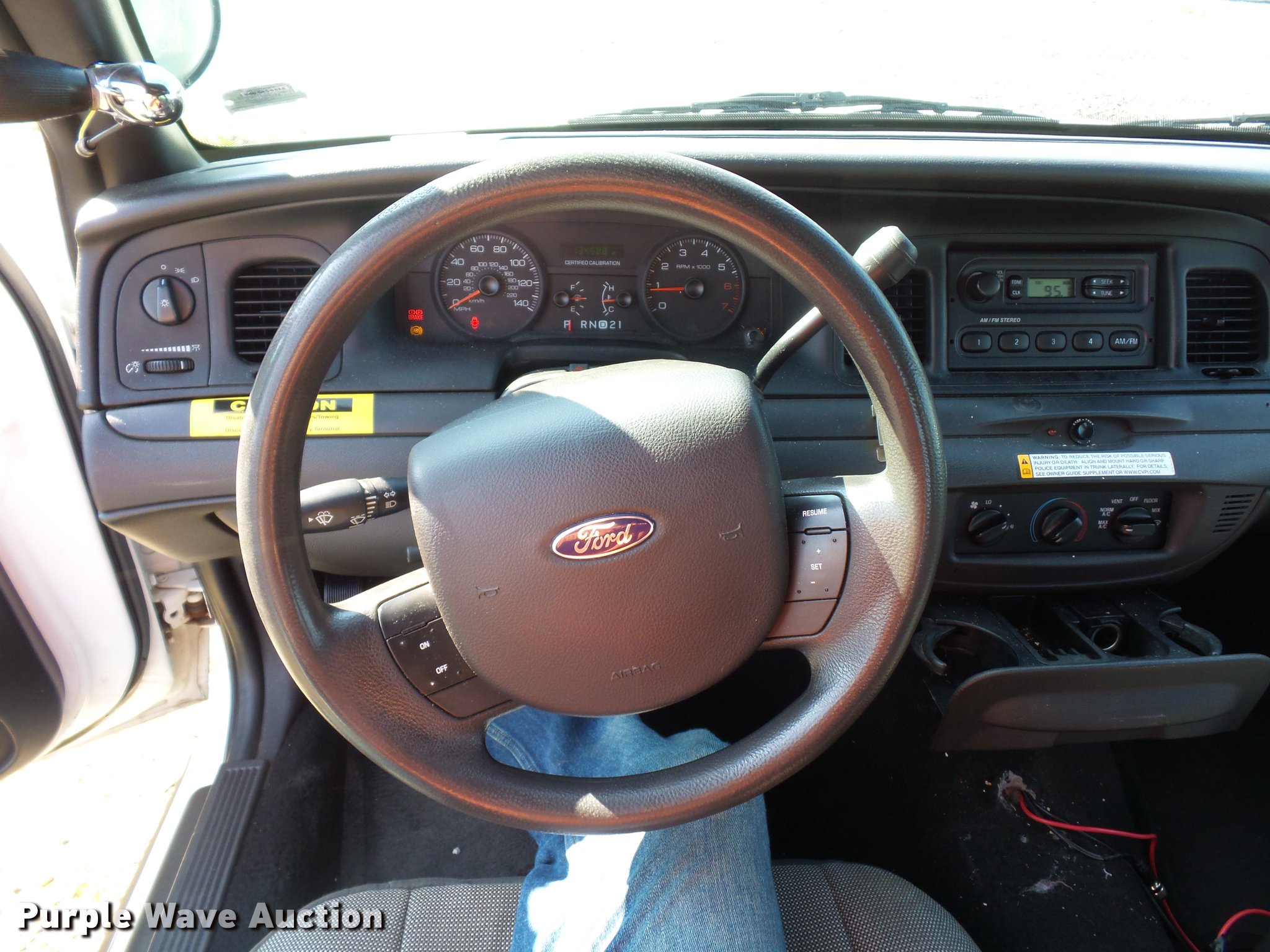 Purple Wave is selling a used Passenger Vehicle in Missouri. This item is a 2007 Ford Crown Victoria Police Interceptor with the following: 134,588 miles on odometer, 4.6L V8 SOHC 16V gas engine, Automatic transmission, AC and heat, Tilt, Cruise, AM/FM, Power windows, locks, and mirrors, Cloth interior, 235/55R17 tires, Dead battery, Brake and ABS light on