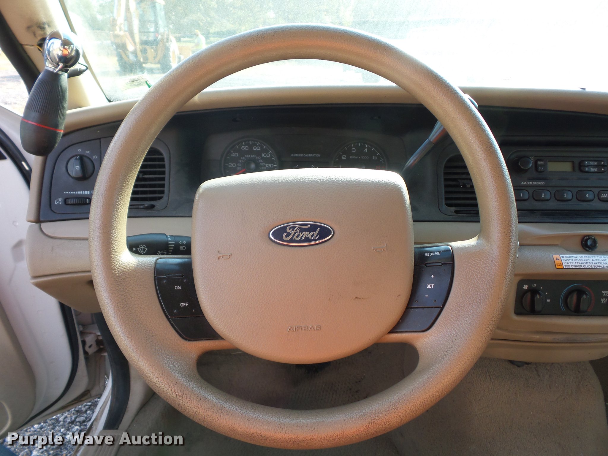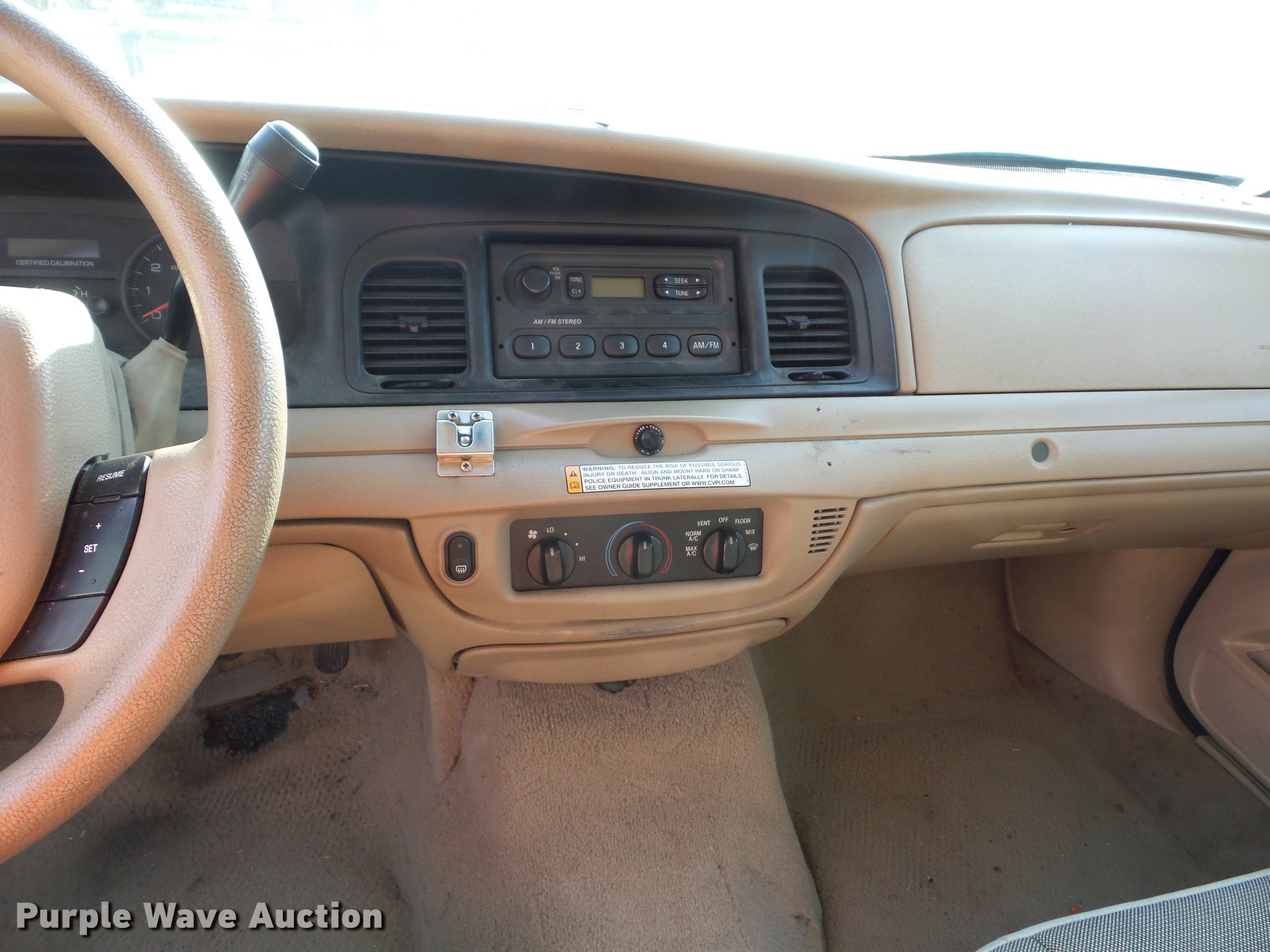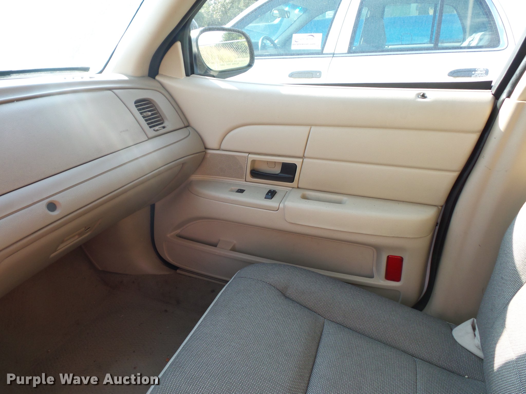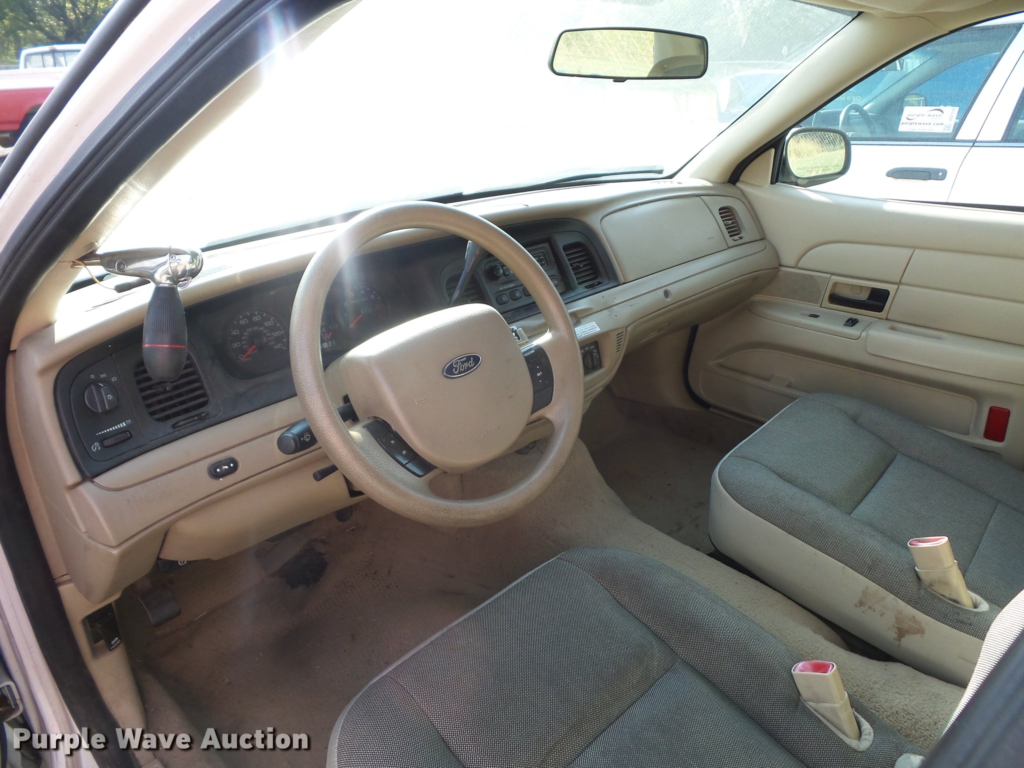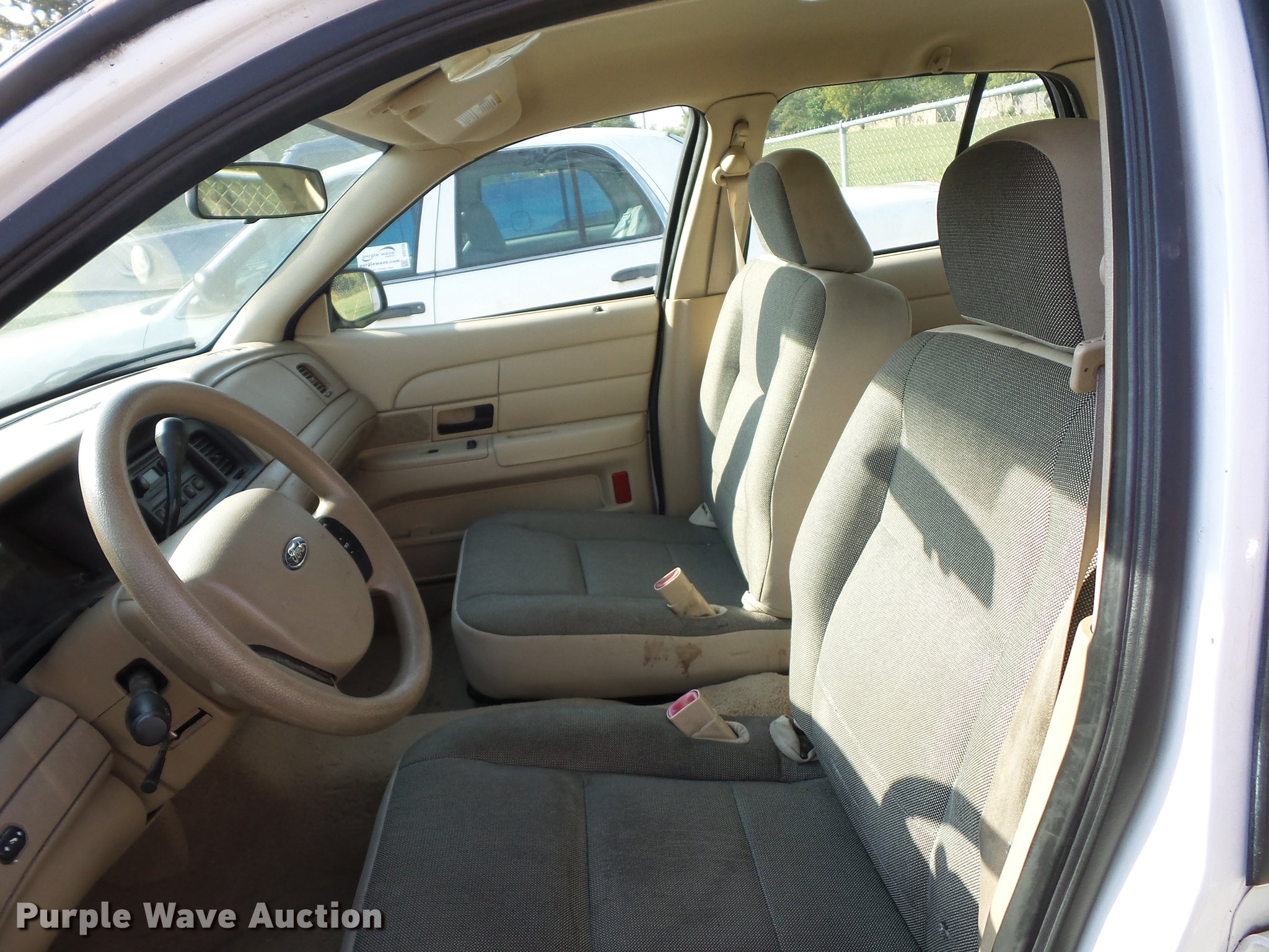 Purple Wave is selling a used Passenger Vehicle in Missouri. This item is a 2009 Ford Crown Victoria Police Interceptor with the following: Unknown miles on odometer, 4.6L V8 SOHC 16V FFV gas engine, Automatic transmission, AC and heat, Tilt, Cruise, AM/FM, Power windows, locks, and mirrors, Cloth interior, 235/55R17 tires, Dead battery, Dash inoperable