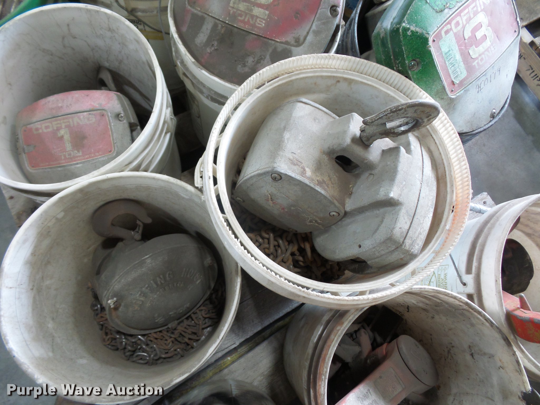 Purple Wave is selling a used Tools in Missouri. This item is a (11) chain hoists with the following: One to three ton capacities, Manual operation