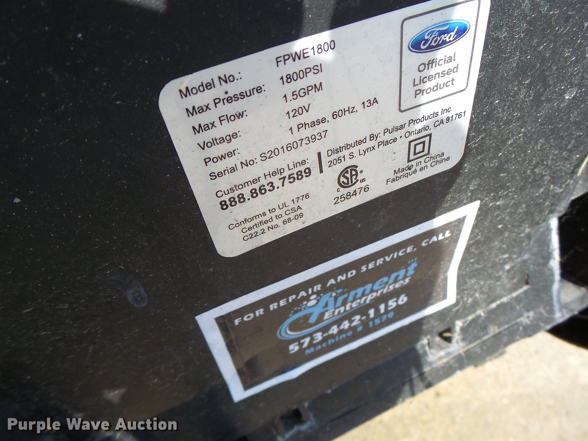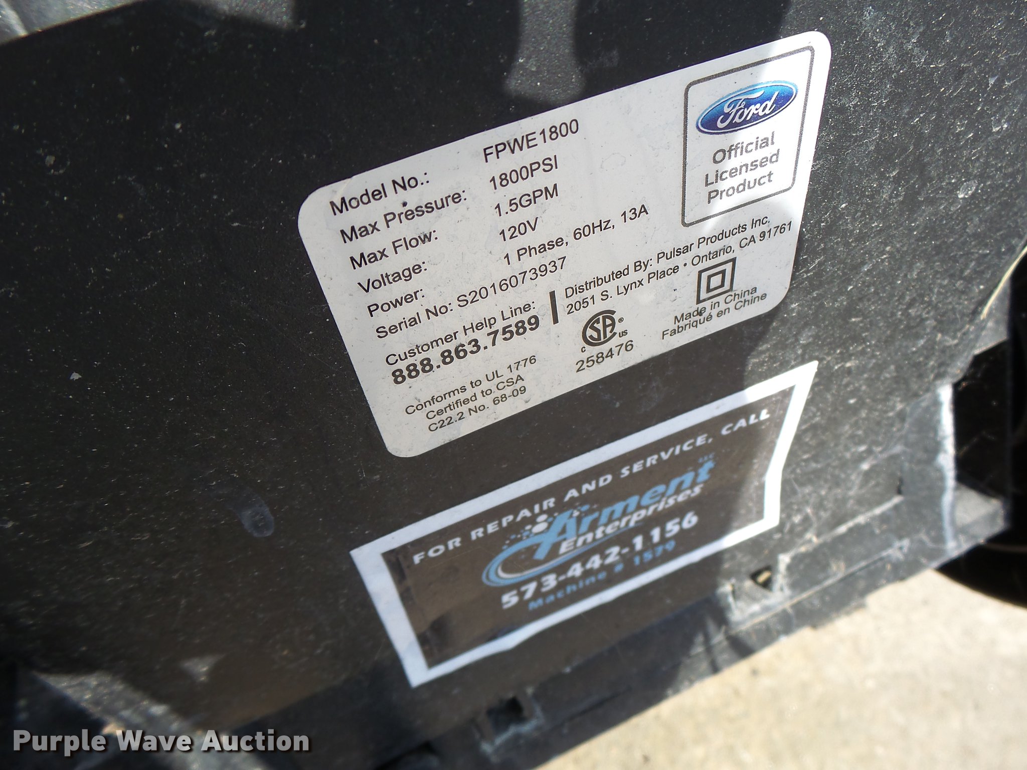 Purple Wave is selling a used Pressure Washer in Missouri. This item is a (2) electric power washers with the following: Karcher, 120 volt, 1,600 psi, Unknown operating condition, Ford FPWE1801, 120 volt, 1,800 psi, Unknown operating condition