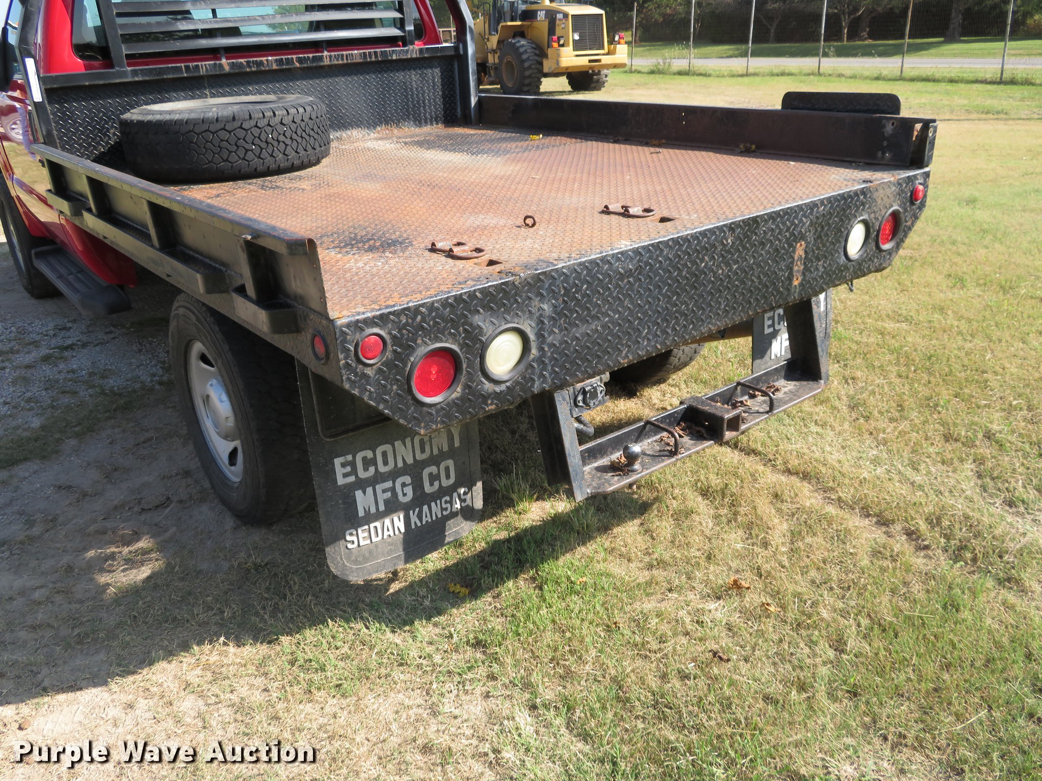 2009 Ford F250 Super Duty flatbed pickup truck. 206,214 miles on odometer, 5.4L V8 SOHC 16V gas engine, Automatic transmission, Four wheel drive, AC and heat, Tilt, Cruise, AM/FM, Manual windows and locks, Vinyl interior, Economy flatbed 102"L x 86"W, 265/70R17 tires. Kansas title. 1FDNF215X9EA19919. Cowley County. Winfield, KS 67156