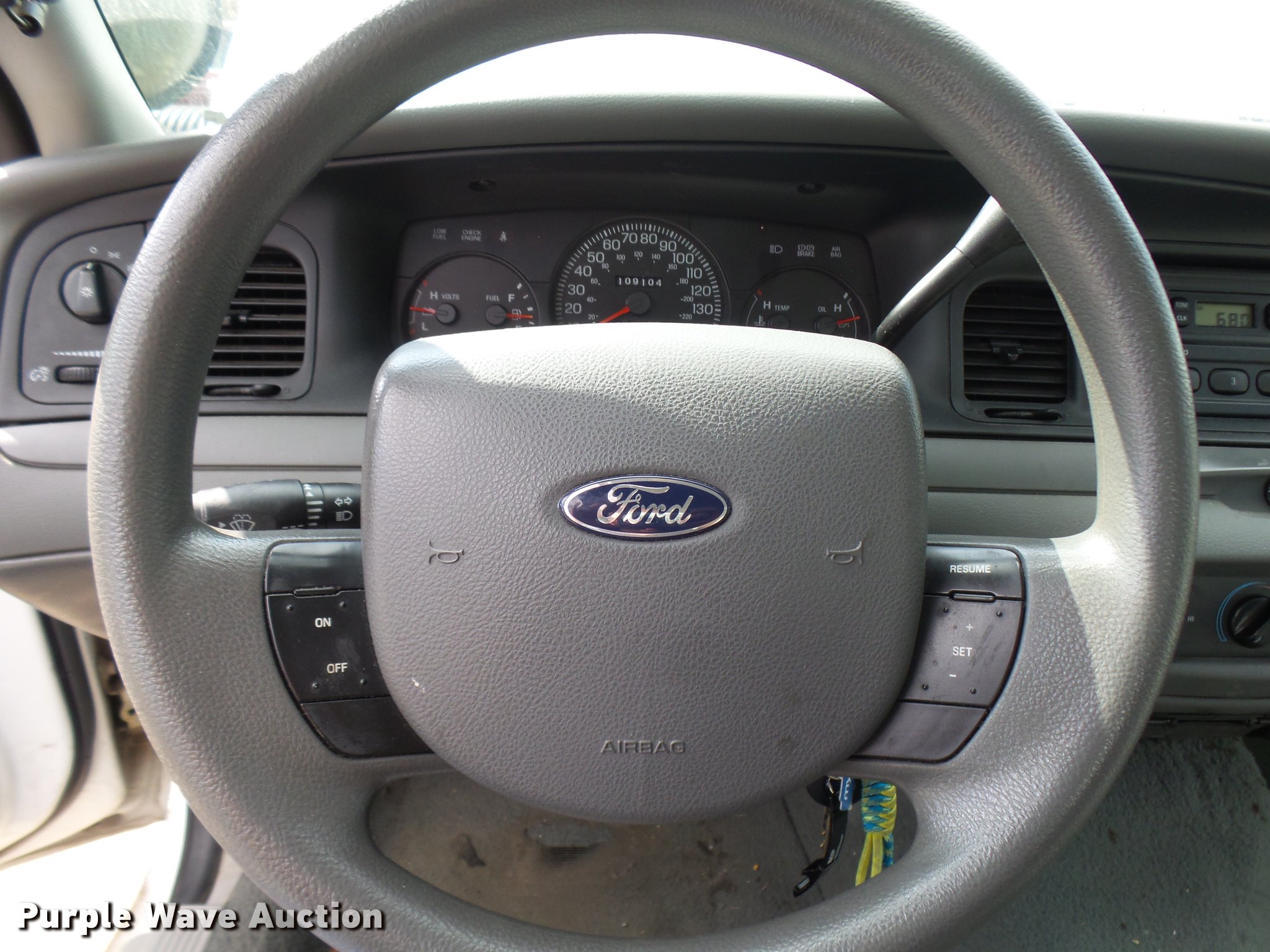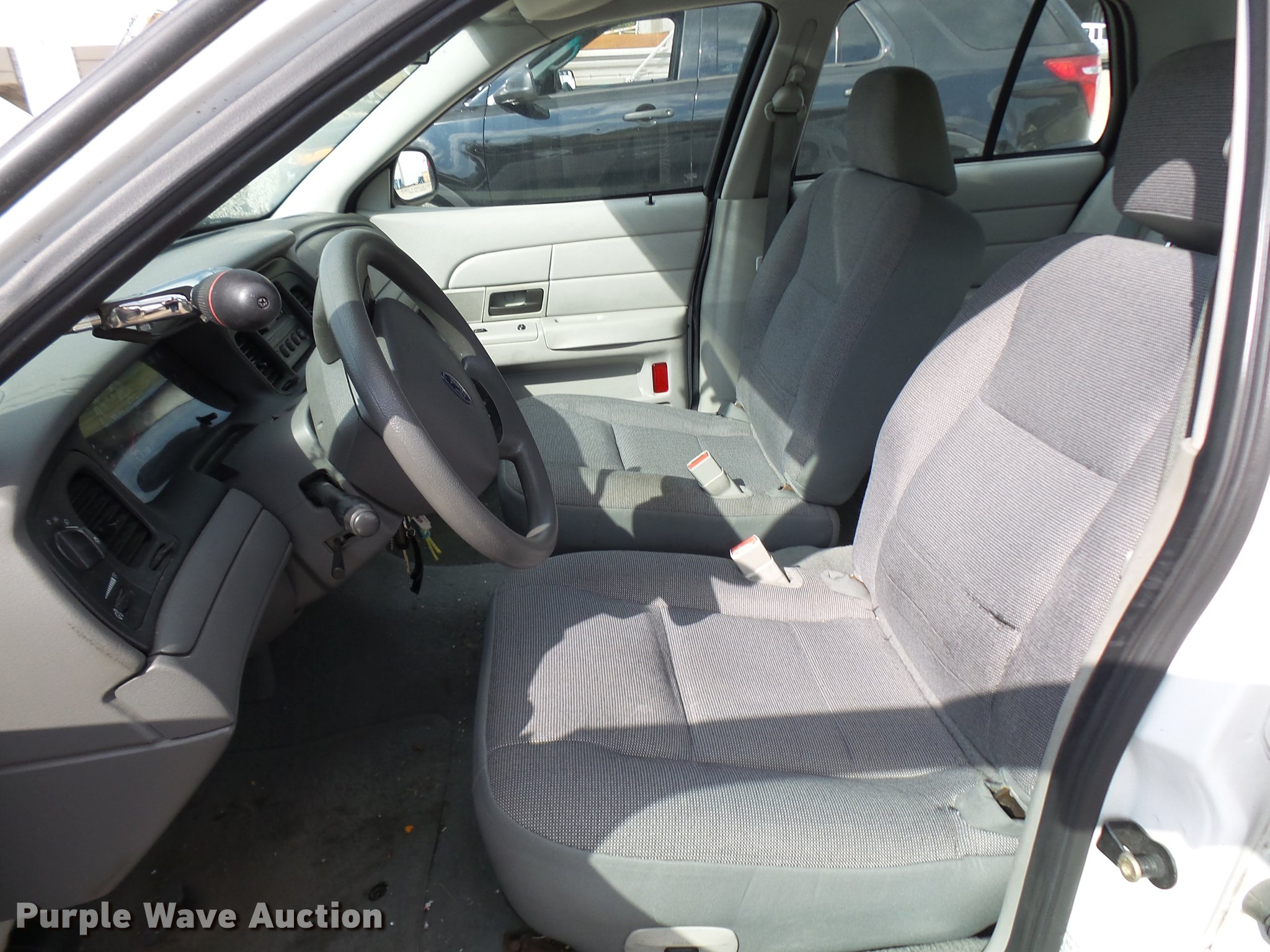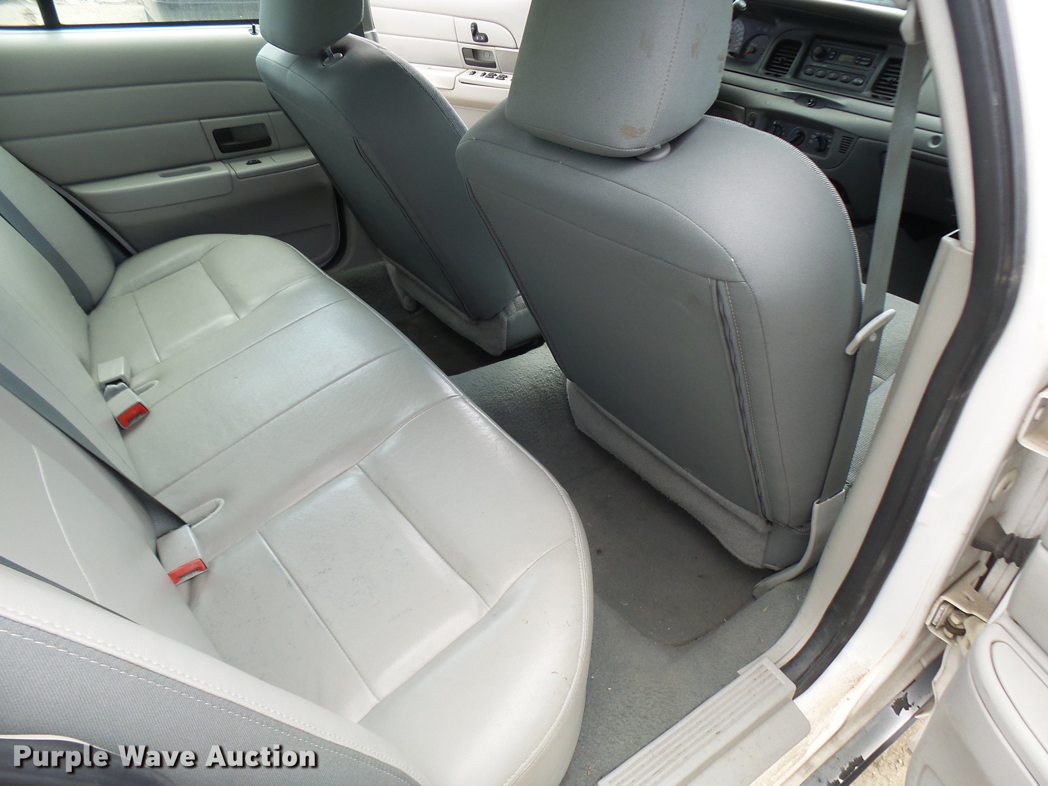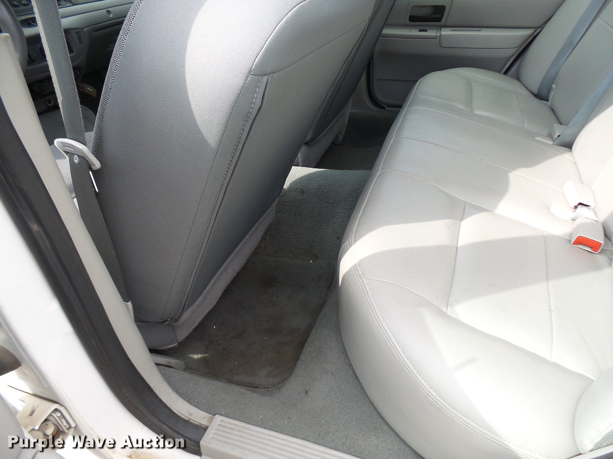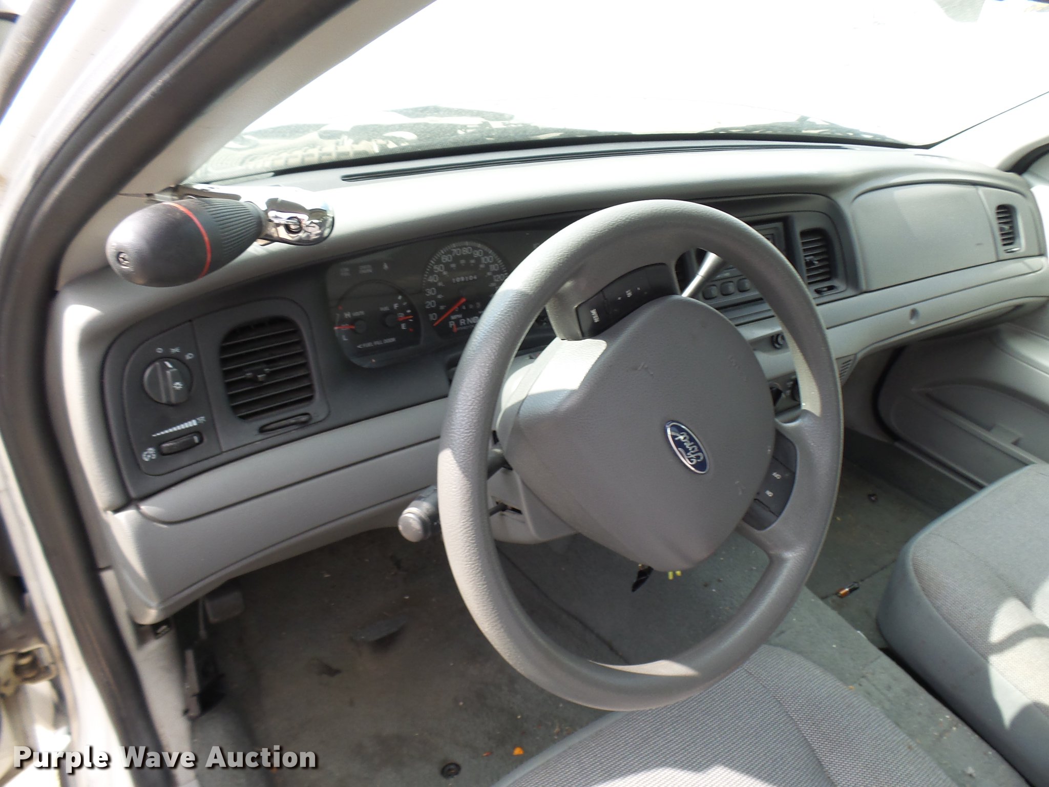 Purple Wave is selling a used Passenger Vehicle in Missouri. This item is a 2005 Ford Crown Victoria Police Interceptor with the following: 109,104 miles on odometer, 4.6L V8 SOHC 16V gas engine, Automatic transmission, AC and heat, Tilt, Cruise, AM/FM, Power windows, locks, and mirrors, Cloth front interior, Vinyl rear interior, Spotlight, 225/60R16 tires