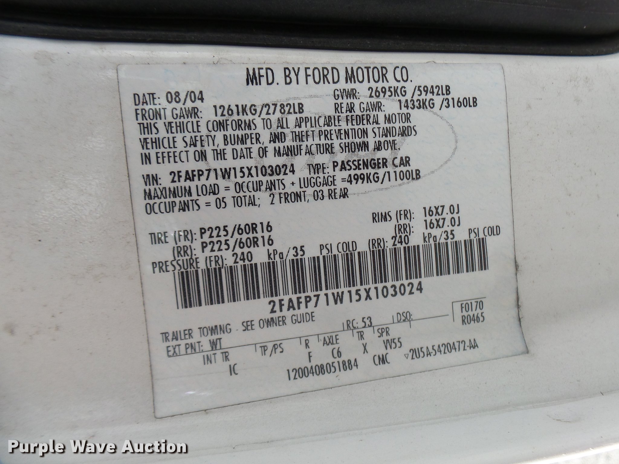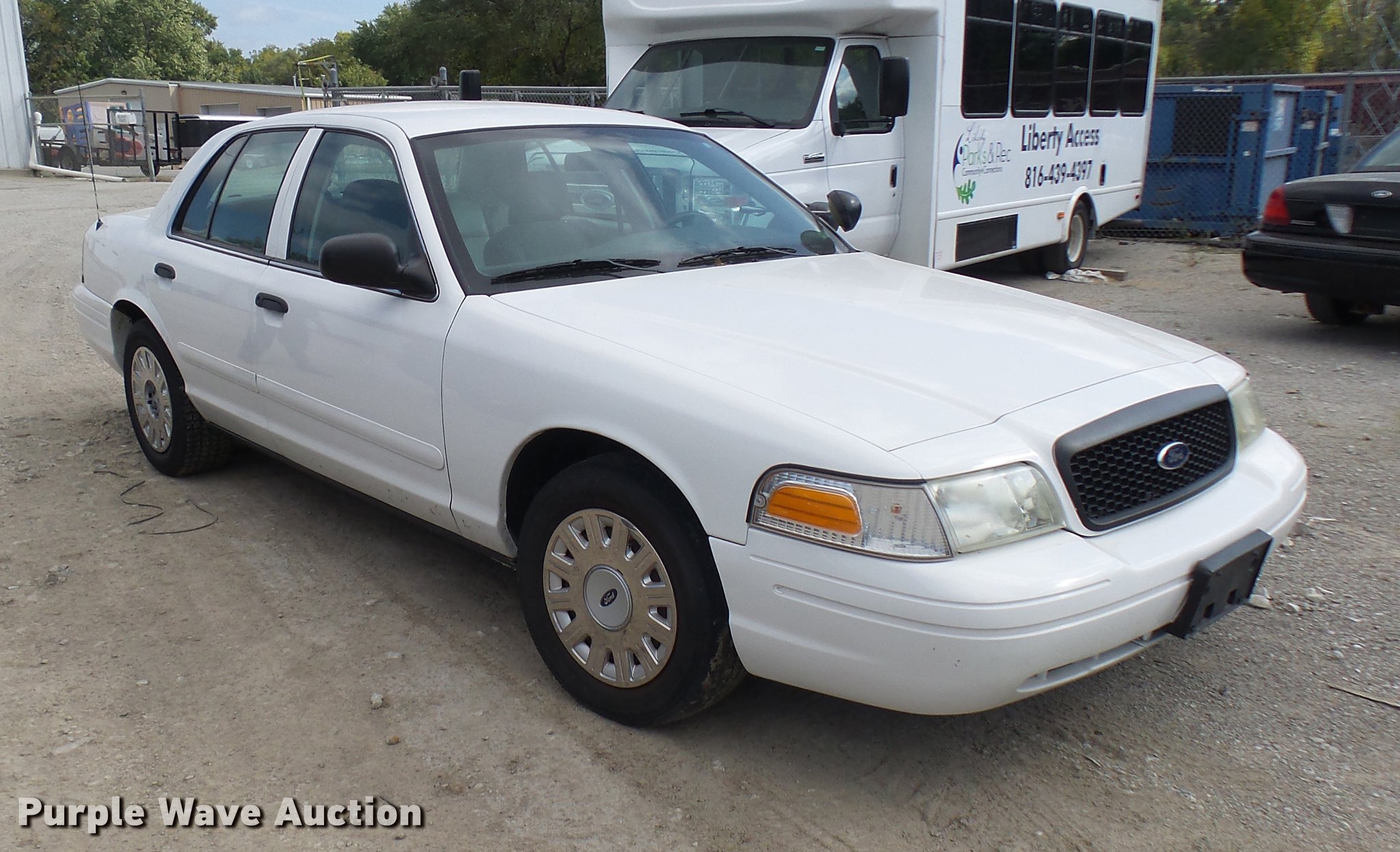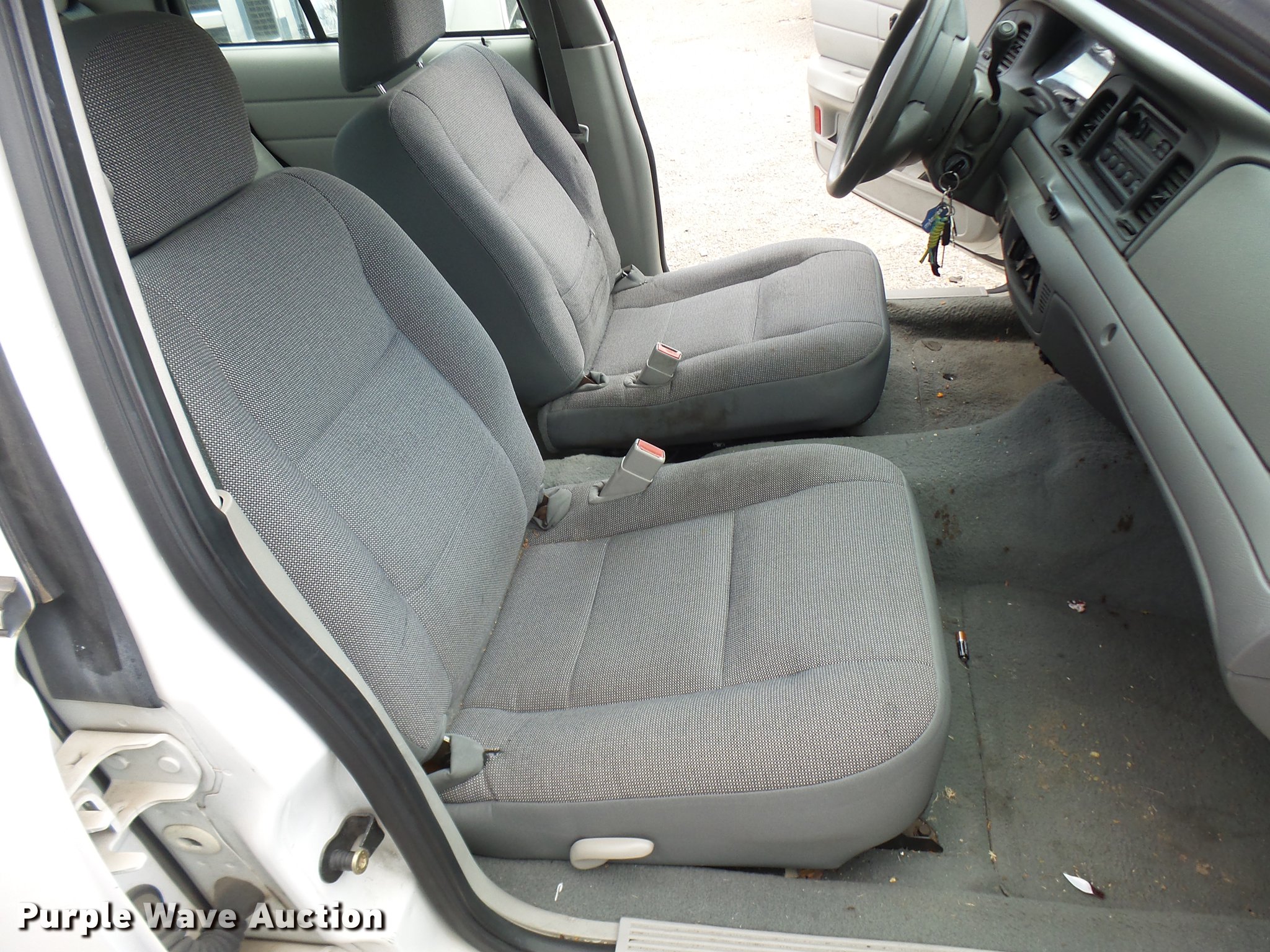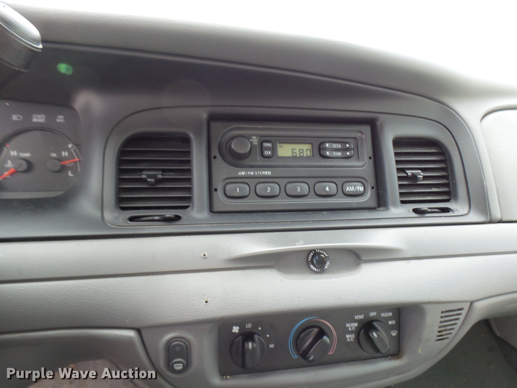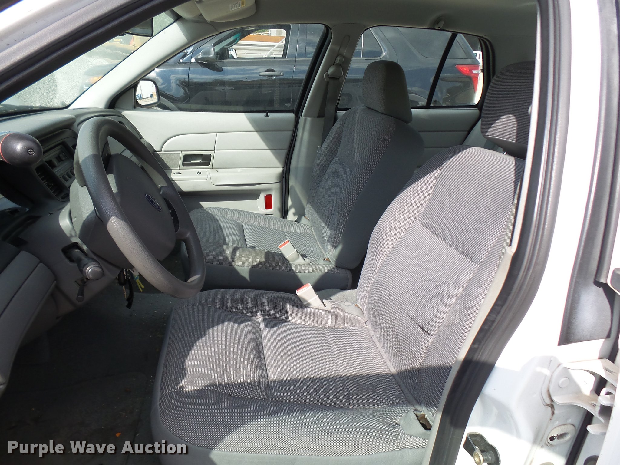 Purple Wave is selling a used Passenger Vehicle in Missouri. This item is a 2005 Ford Crown Victoria Police Interceptor with the following: 109,104 miles on odometer, 4.6L V8 SOHC 16V gas engine, Automatic transmission, AC and heat, Tilt, Cruise, AM/FM, Power windows, locks, and mirrors, Cloth front interior, Vinyl rear interior, Spotlight, 225/60R16 tires