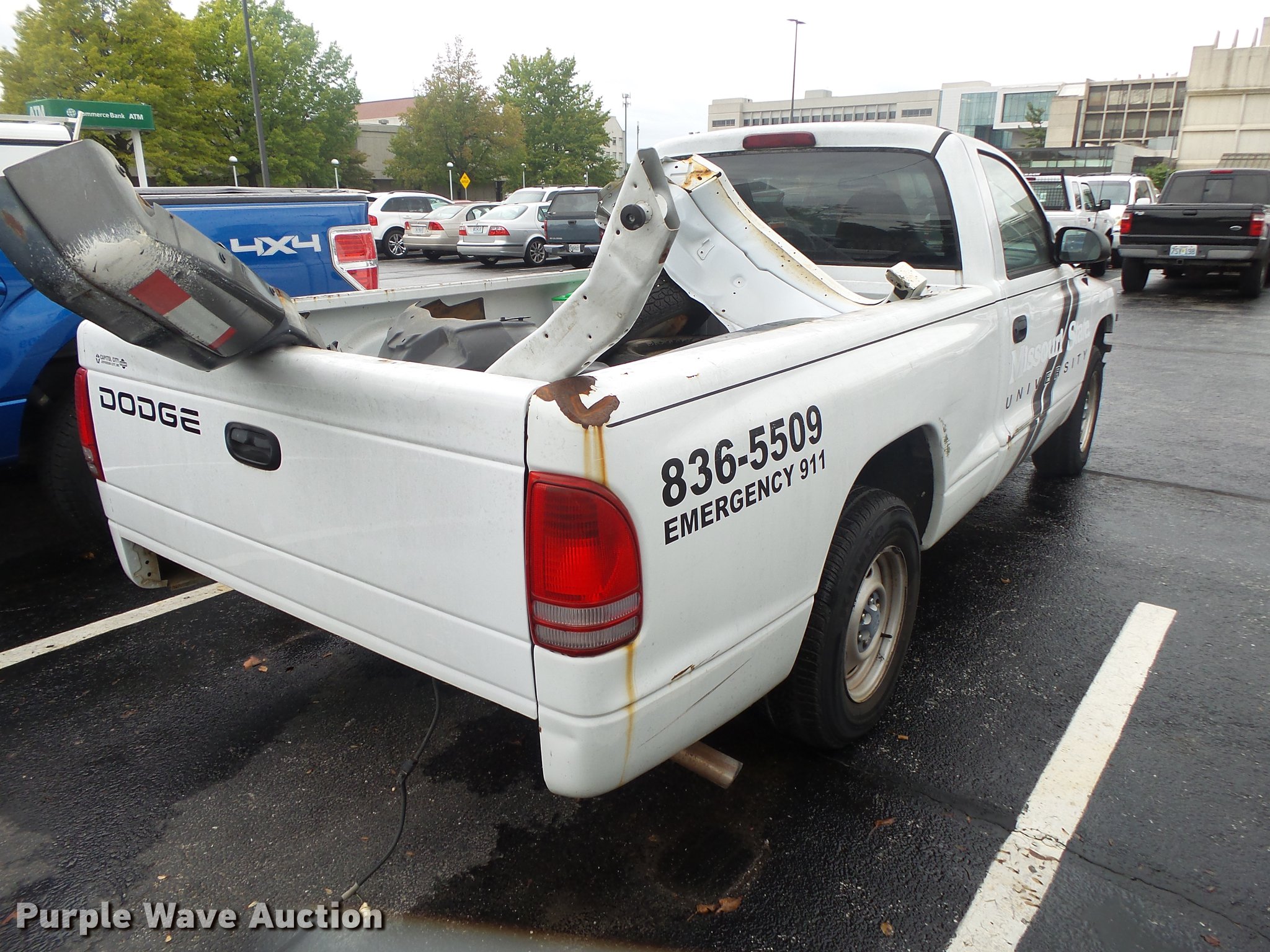 Purple Wave is selling a used Compact Pickup or Van in Missouri. This item is a 2000 Dodge Dakota pickup truck with the following: Unknown miles on odometer, 3.9L V6 OHV 12V gas engine, Automatic transmission, AC and heat, AM/FM/cassette, Manual windows and locks, Cloth interior, P215/75R15 tires, No battery, Parts missing, Unknown operating condition, Vehicle must be towed or hauled