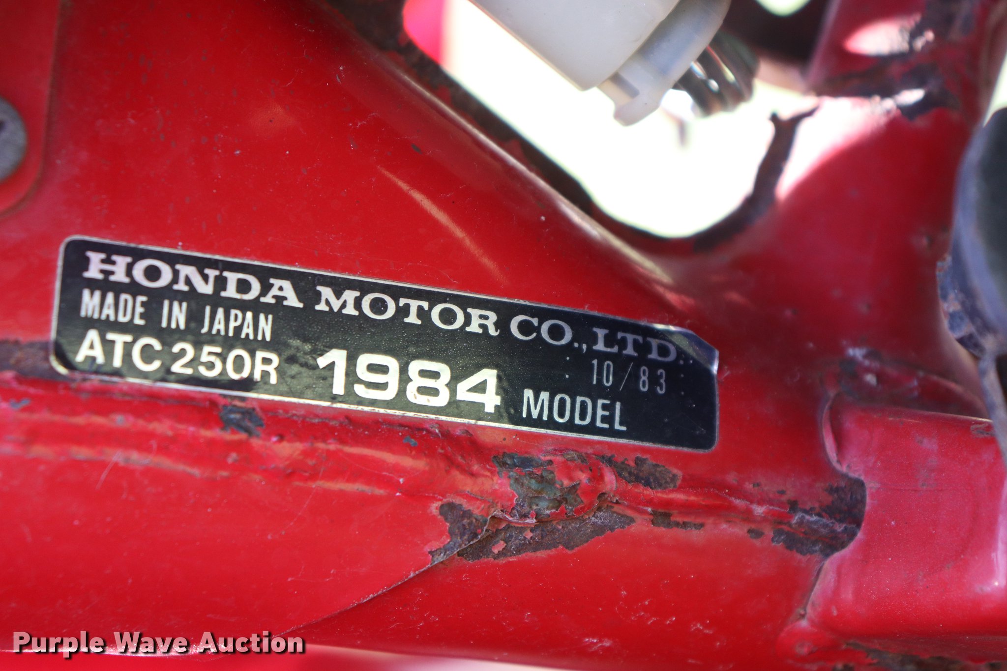 Purple Wave is selling a used ATV in Oklahoma. This item is a 1984 Honda 250R ATC ATV with the following: Honda 249cc gas engine, Five speed manual transmission, Twist throttle, 23x8-11 front tires, 18x9.50-8 rear tires, Replacement front brakes included, Replacement clutch included, Replacement thumb throttle included, Transmission issue, missing 5th gear
