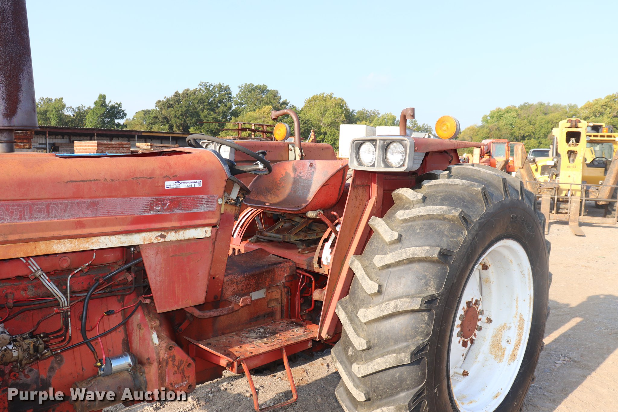 Purple Wave is selling a used Tractor in Oklahoma. This item is a International 674 tractor with the following: Unknown hours on meter, Four cylinder diesel engine, Manual transmission, 8F-4R gears, Spring suspension seat, Front and rear work lights, Three point, 540 PTO, Rear hydraulic remote set, 7.50-16 front tires, 16.9-30 rear tires, Non-operational lights, Alternator needs replaced, Transmission issues, Unit will not go into fourth gear, Serial 118852BRY