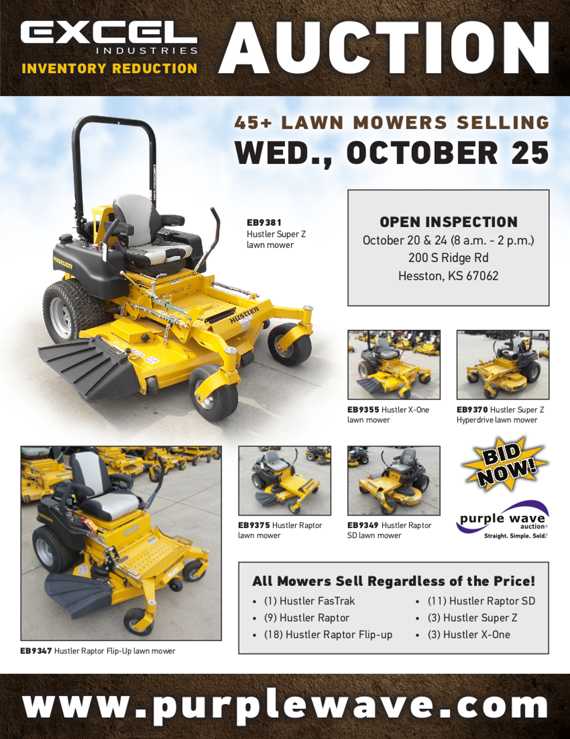 SOLD! October 25 Excel Industries Inc. Manufacturer's Inventory Reduction Auction