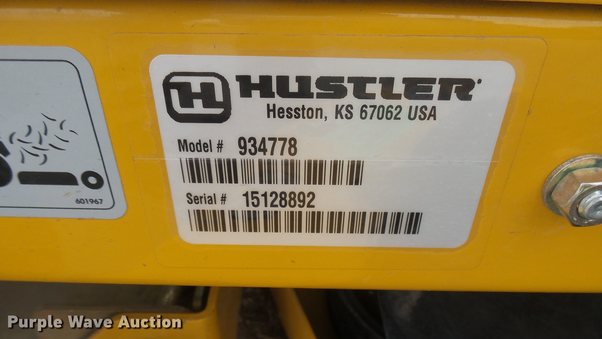 Purple Wave is selling a used Lawn Mower in Kansas. This item is a Hustler Raptor SD ZTR lawn mower with the following: 91 hours on meter, Model 934778, 60" cut, Kohler 26 HP gas engine, 20x12x10 front tires, 13x6.5x6 rear tires, Service issues, Non-operational unit, Serial 15128892