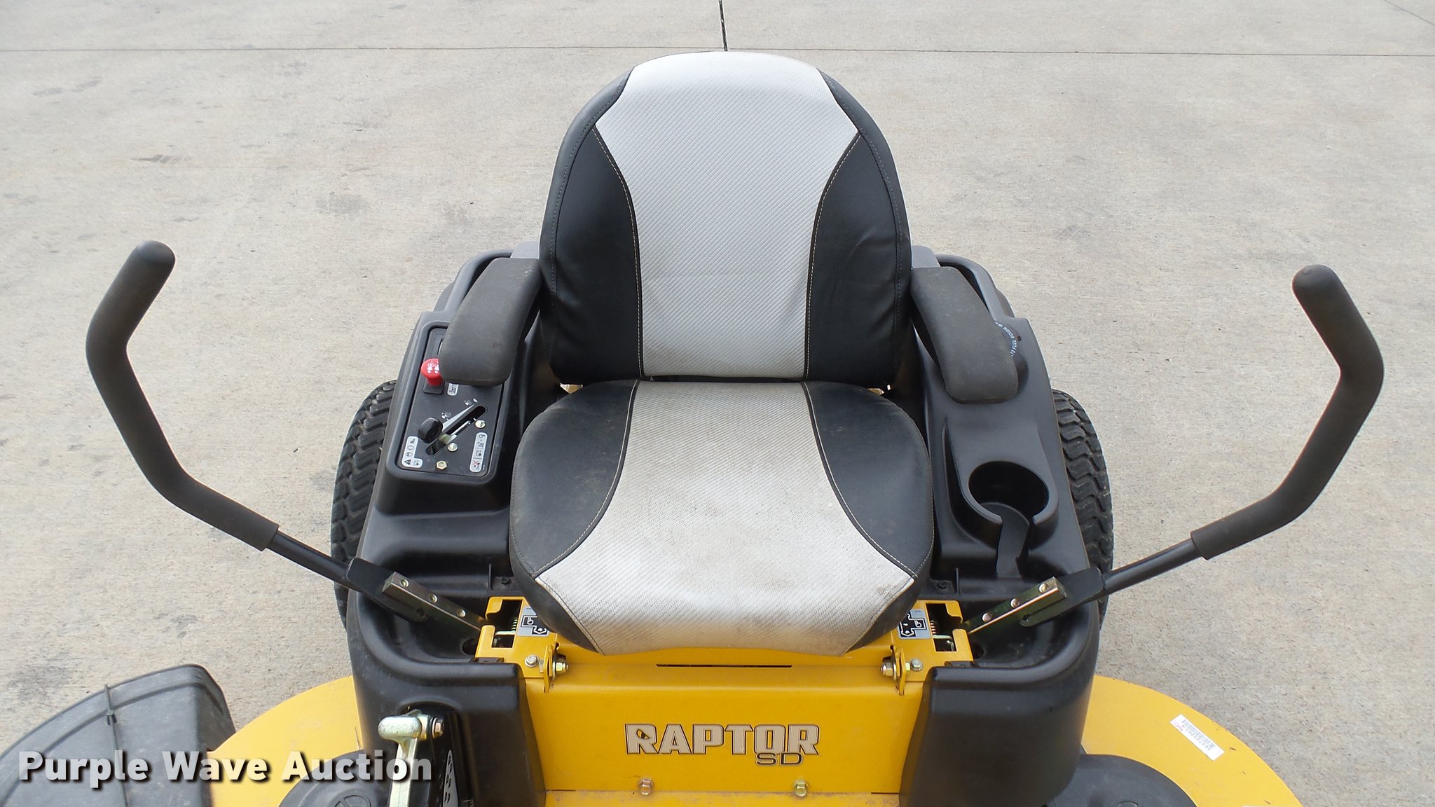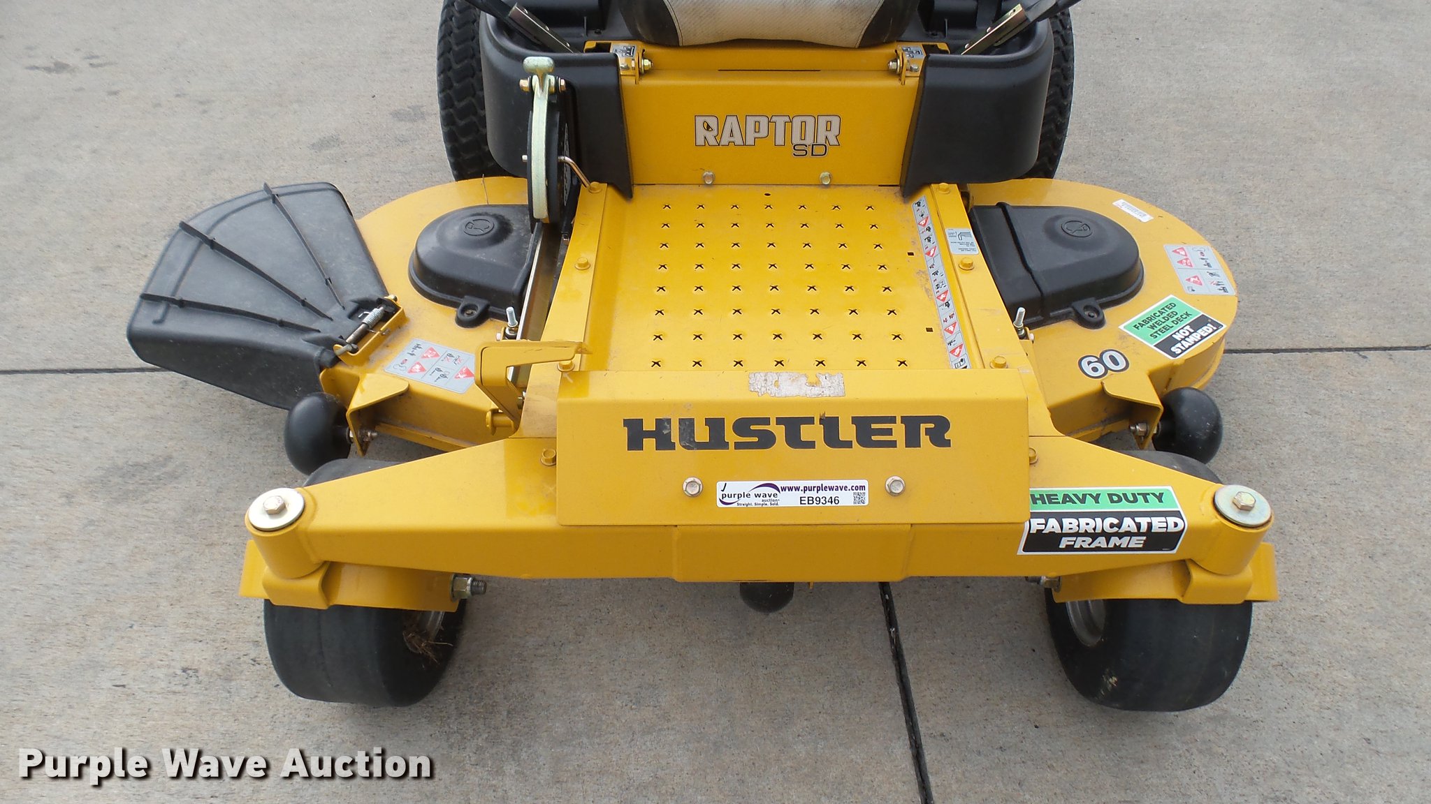 Purple Wave is selling a used Lawn Mower in Kansas. This item is a Hustler Raptor SD ZTR lawn mower with the following: 32 hours on meter, Model 934778, 60" cut, Kohler 26 HP gas engine, 20x12x10 front tires, 13x6.5x6 rear tires, Service issues, Serial 1512A872