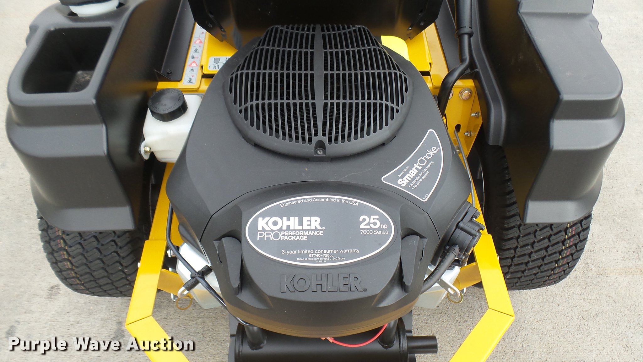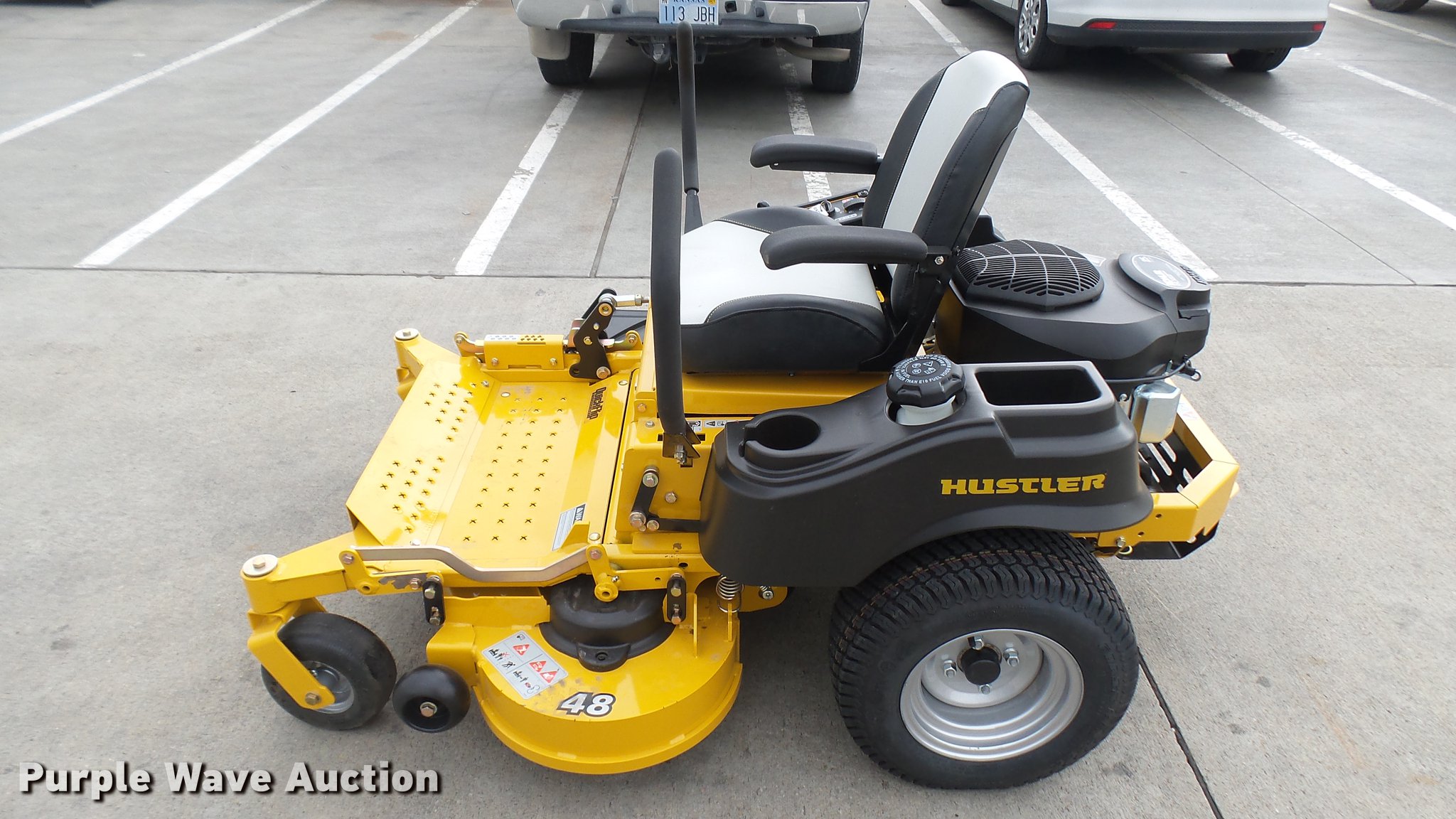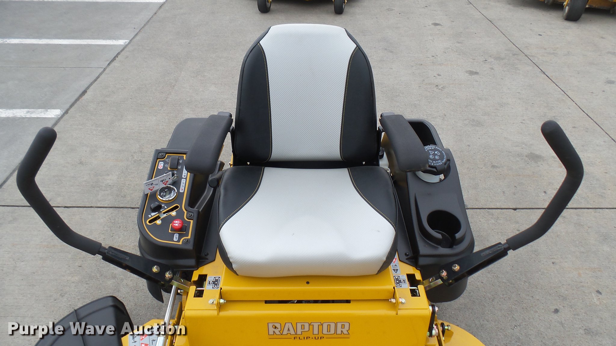 Purple Wave is selling a used Lawn Mower in Kansas. This item is a Hustler Raptor Flip-Up ZTR lawn mower with the following: 1 hours on meter, Model 933614, 48" cut, Kohler 25 HP gas engine, 20x8x10 front tires, 9x3.5x2.25 rear tires, Paint issues, Serial 16027665