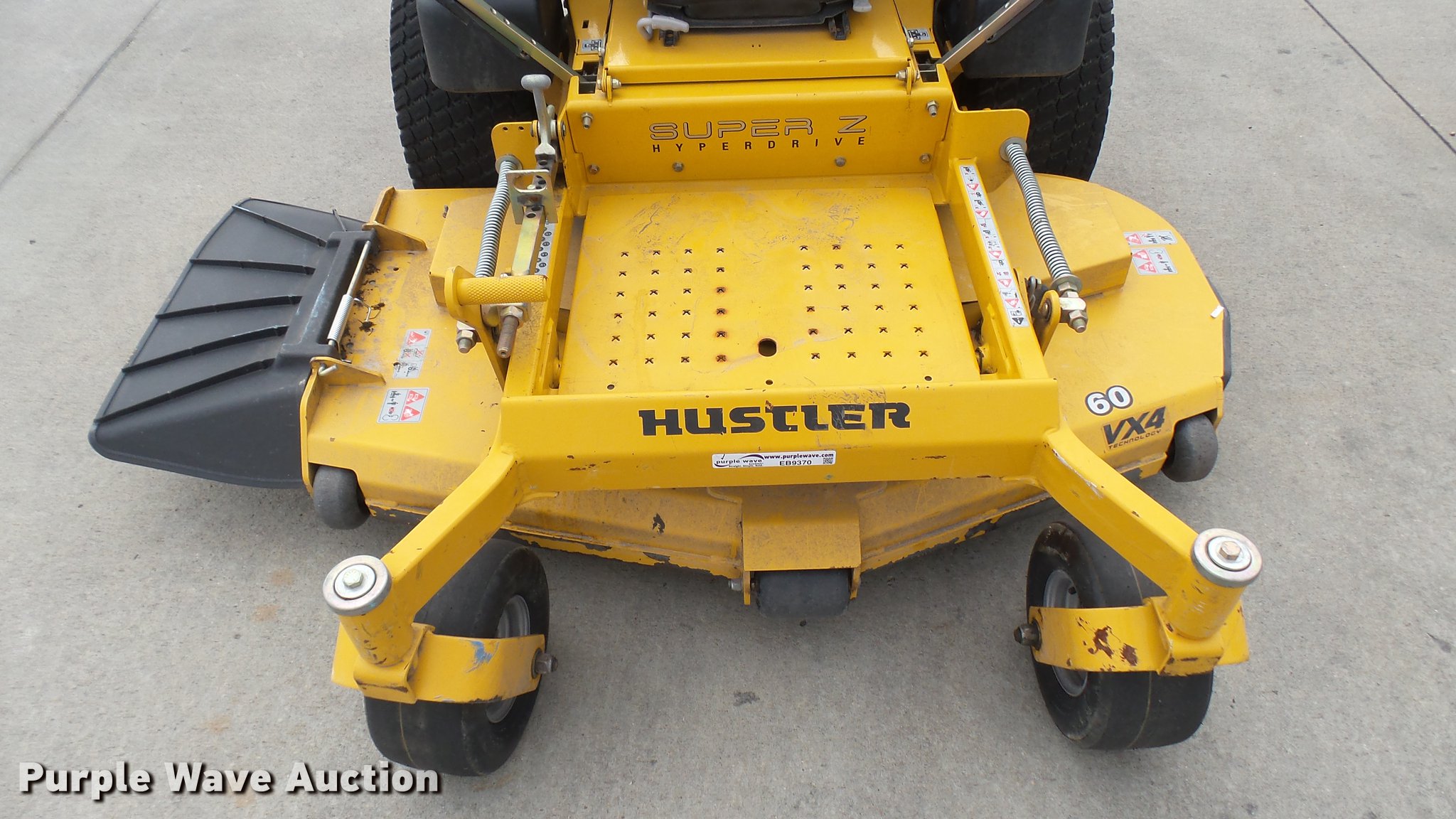 Purple Wave is selling a used Lawn Mower in Kansas. This item is a Hustler Super Z Hyperdrive ZTR lawn mower with the following: 589 hours on meter, Model 934919, 60" cut, Briggs & Stratton 36 HP gas engine, 26x12x12 front tires, 13x6.5x6 rear tires, Serial 1601A504