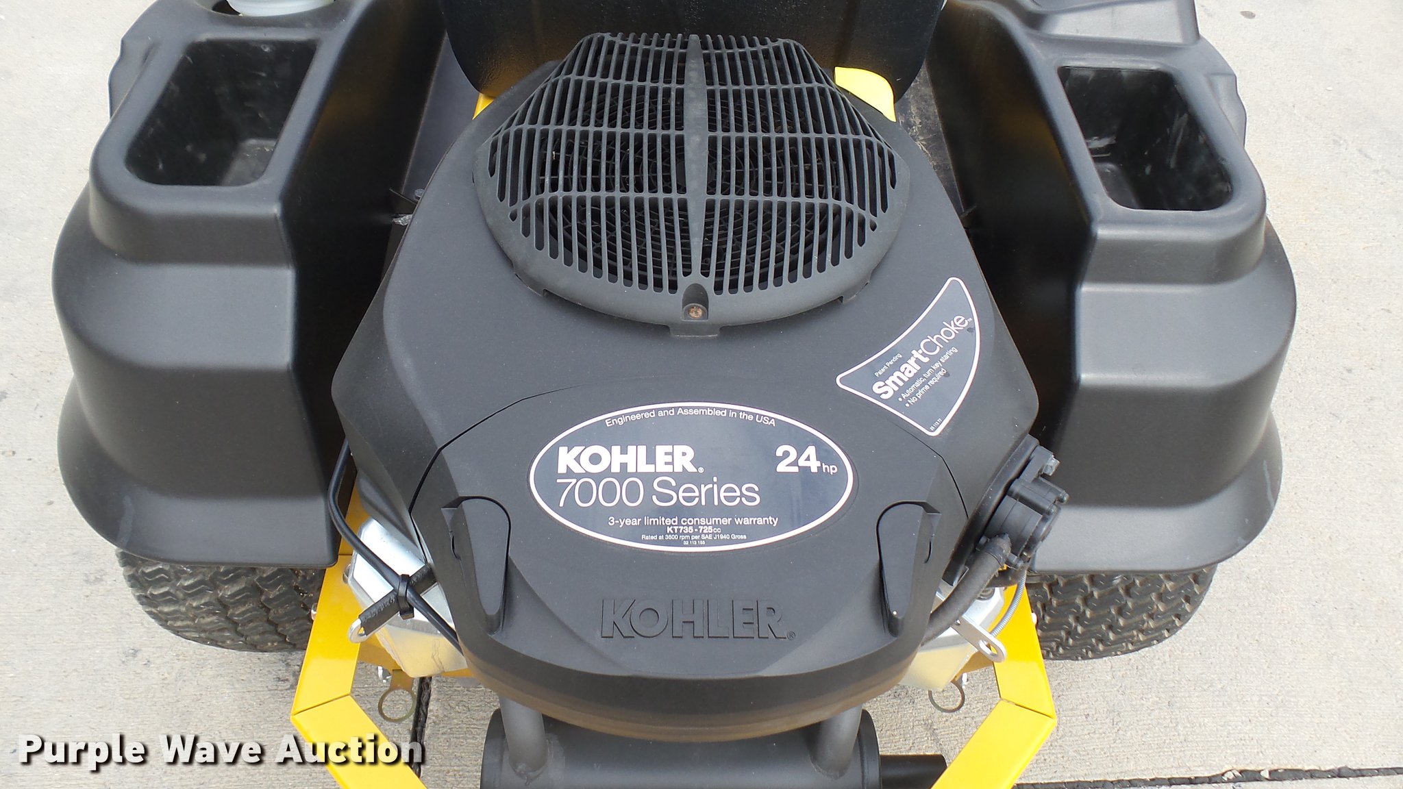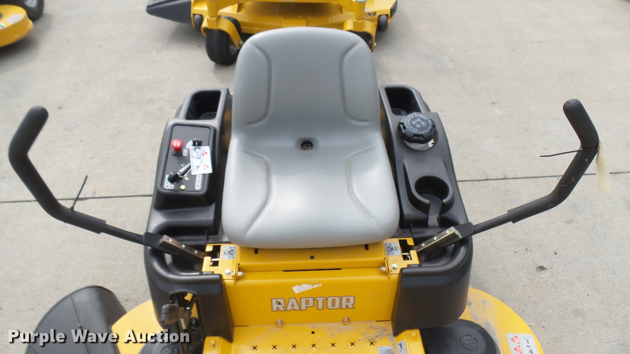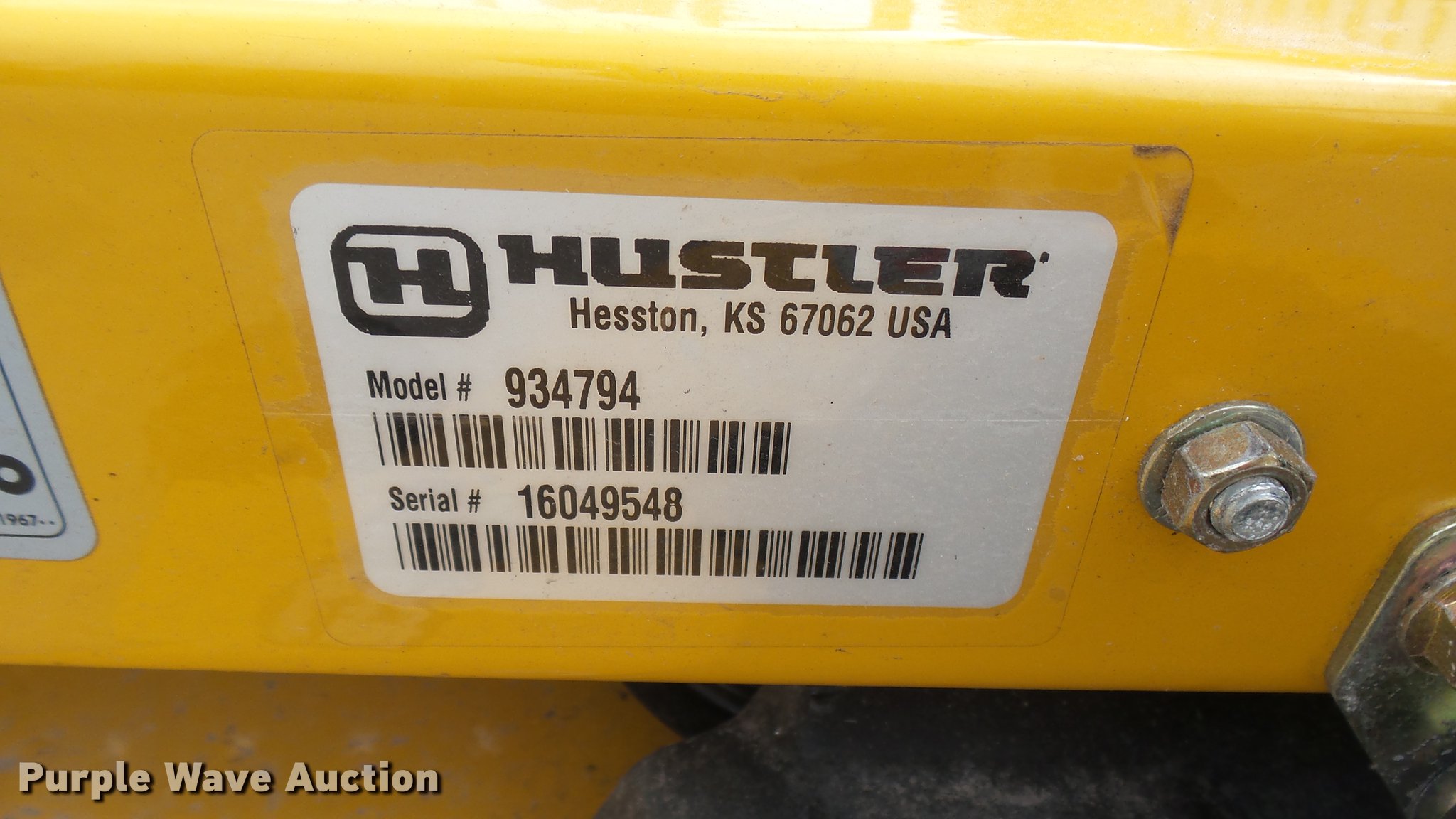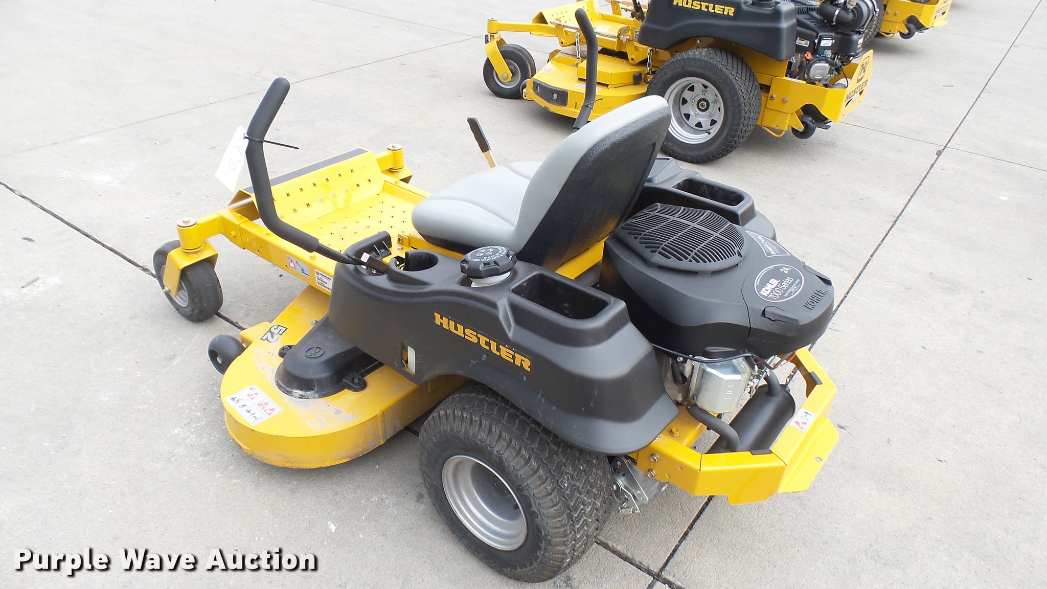 Purple Wave is selling a used Lawn Mower in Kansas. This item is a Hustler Raptor ZTR lawn mower with the following: Model 934794, 52" cut, Kohler 24 HP gas engine, 18x8.5x8 front tires, 11x4x5 rear tires, Serial 16049548