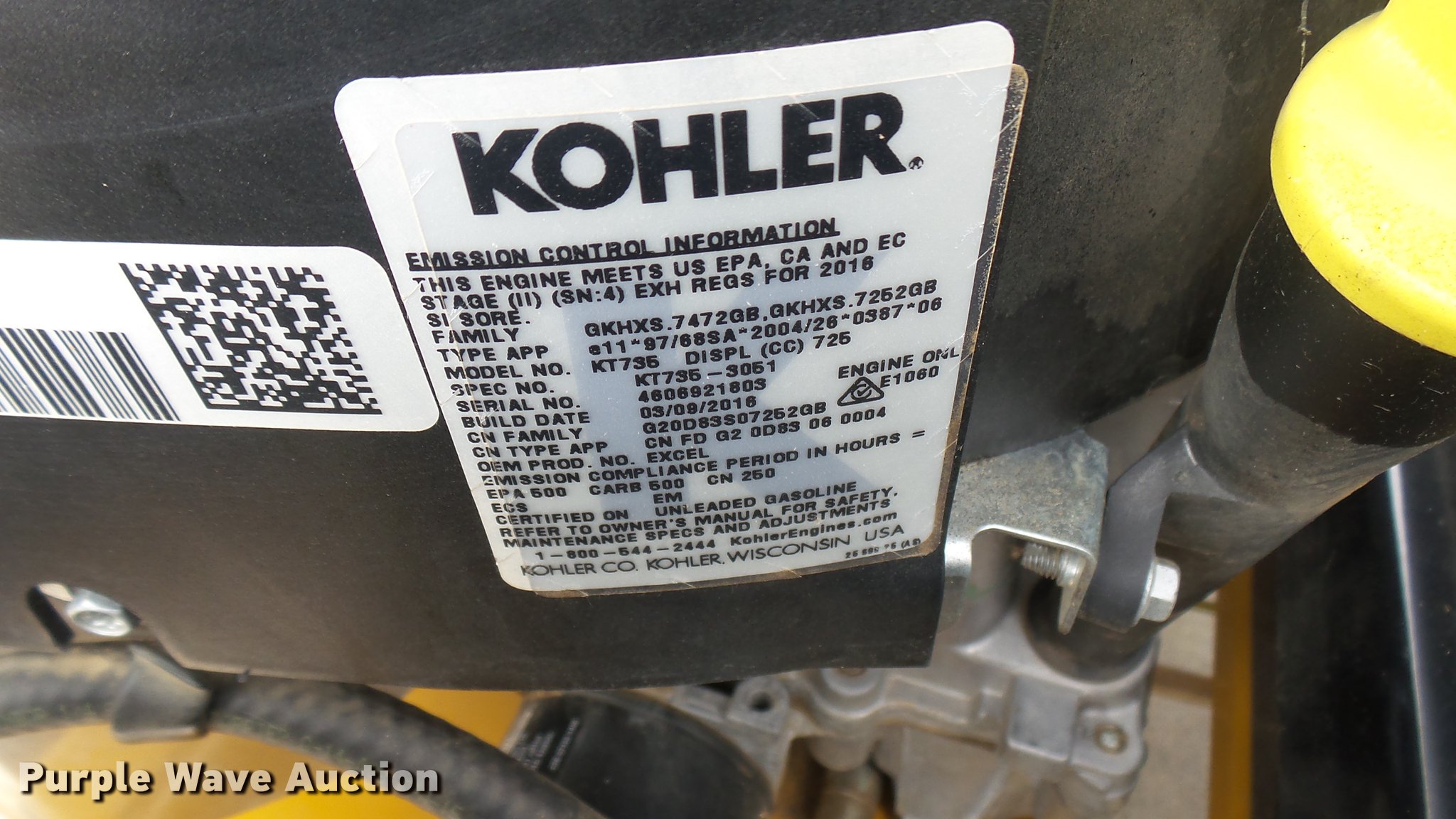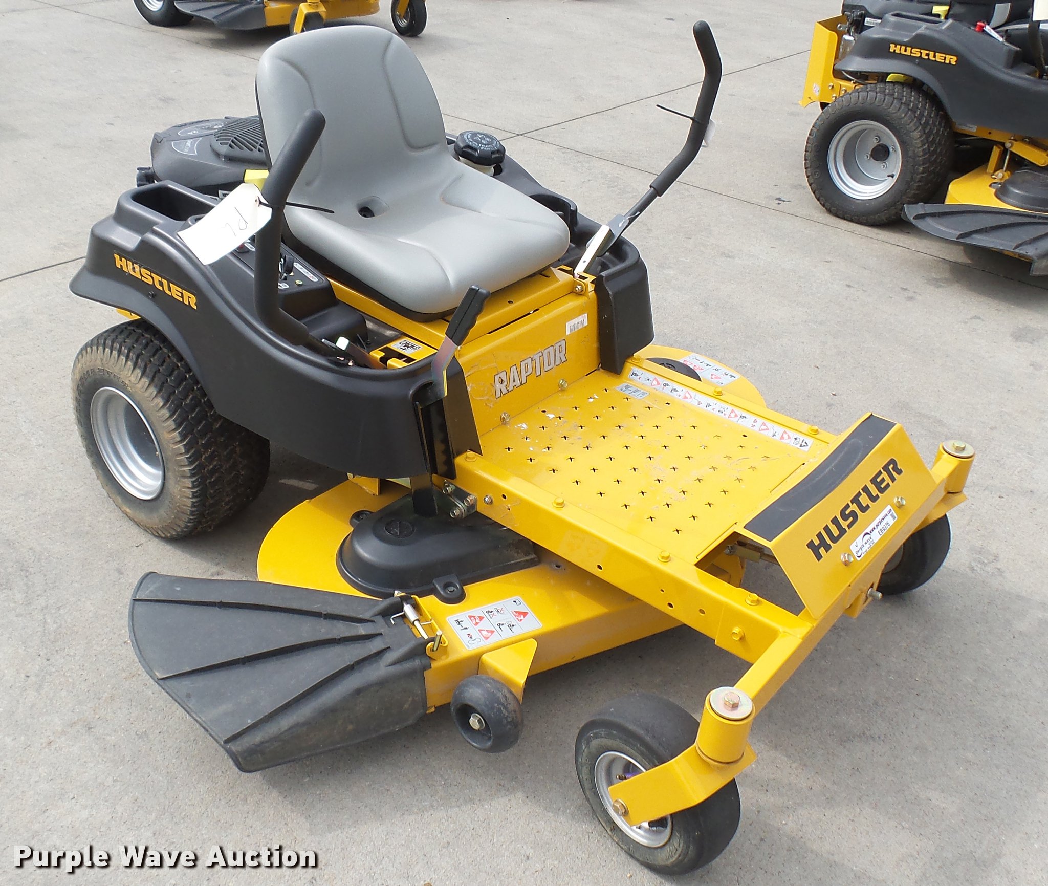 Purple Wave is selling a used Lawn Mower in Kansas. This item is a Hustler Raptor ZTR lawn mower with the following: Model 934794, 52" cut, Kohler 24 HP gas engine, 18x8.5x8 front tires, 11x4x5 rear tires, Serial 1604B766