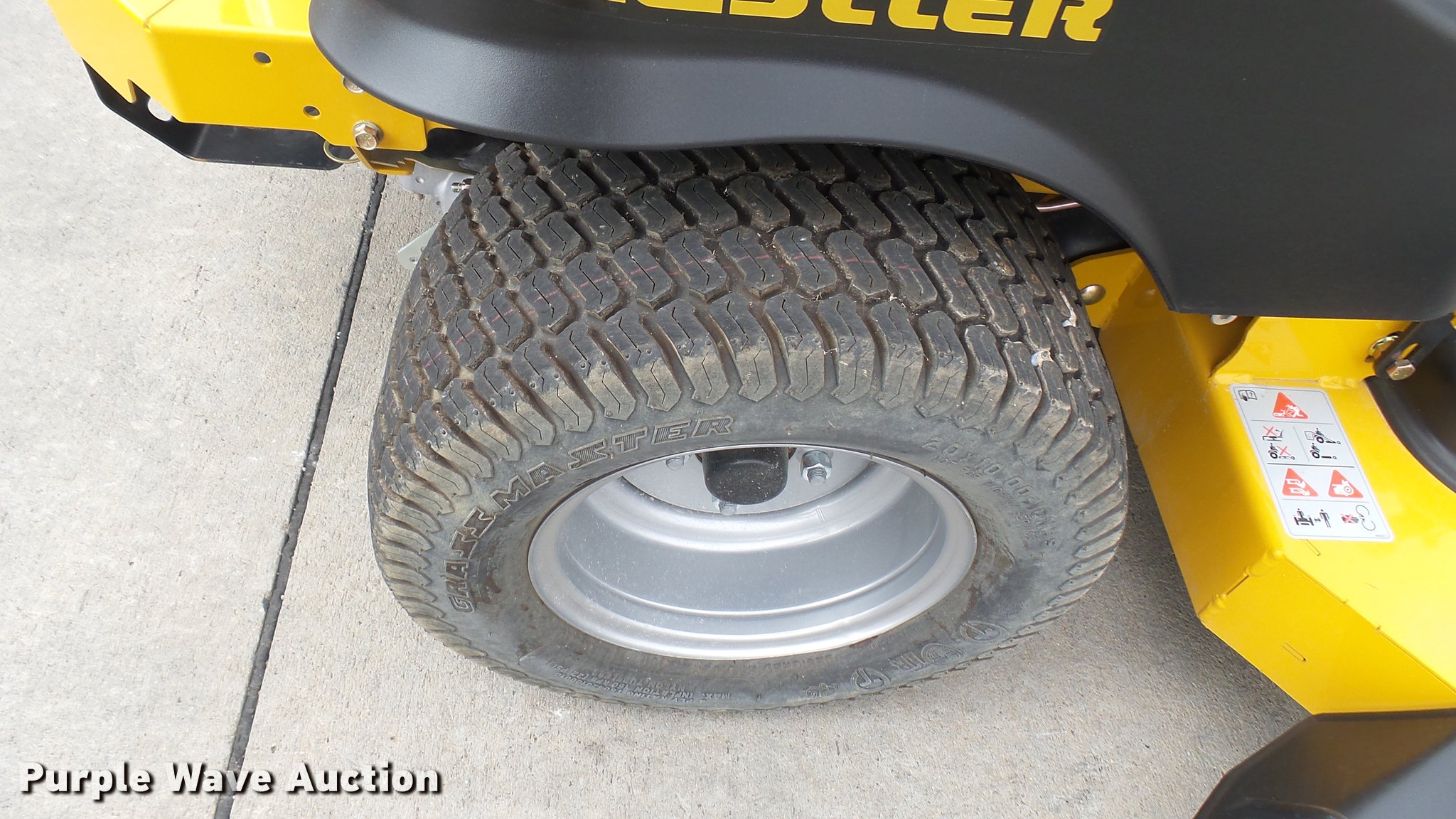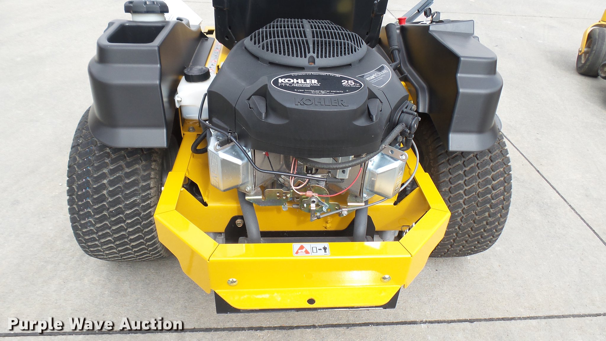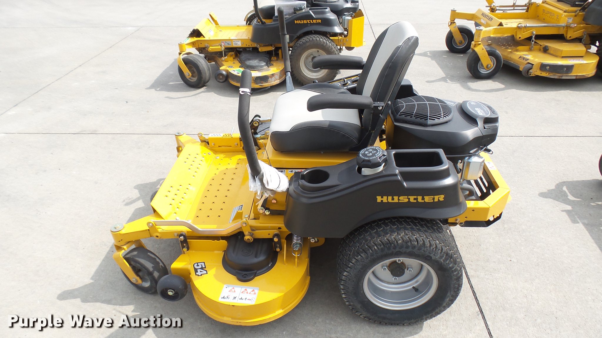 Purple Wave is selling a used Lawn Mower in Kansas. This item is a Hustler Raptor Flip-Up ZTR lawn mower with the following: 23 hours on meter, Model 933622, 54" cut, Kohler 25 HP gas engine, 20x10x10 front tires, 9x3.5x2.25 rear tires, Serial 16038850