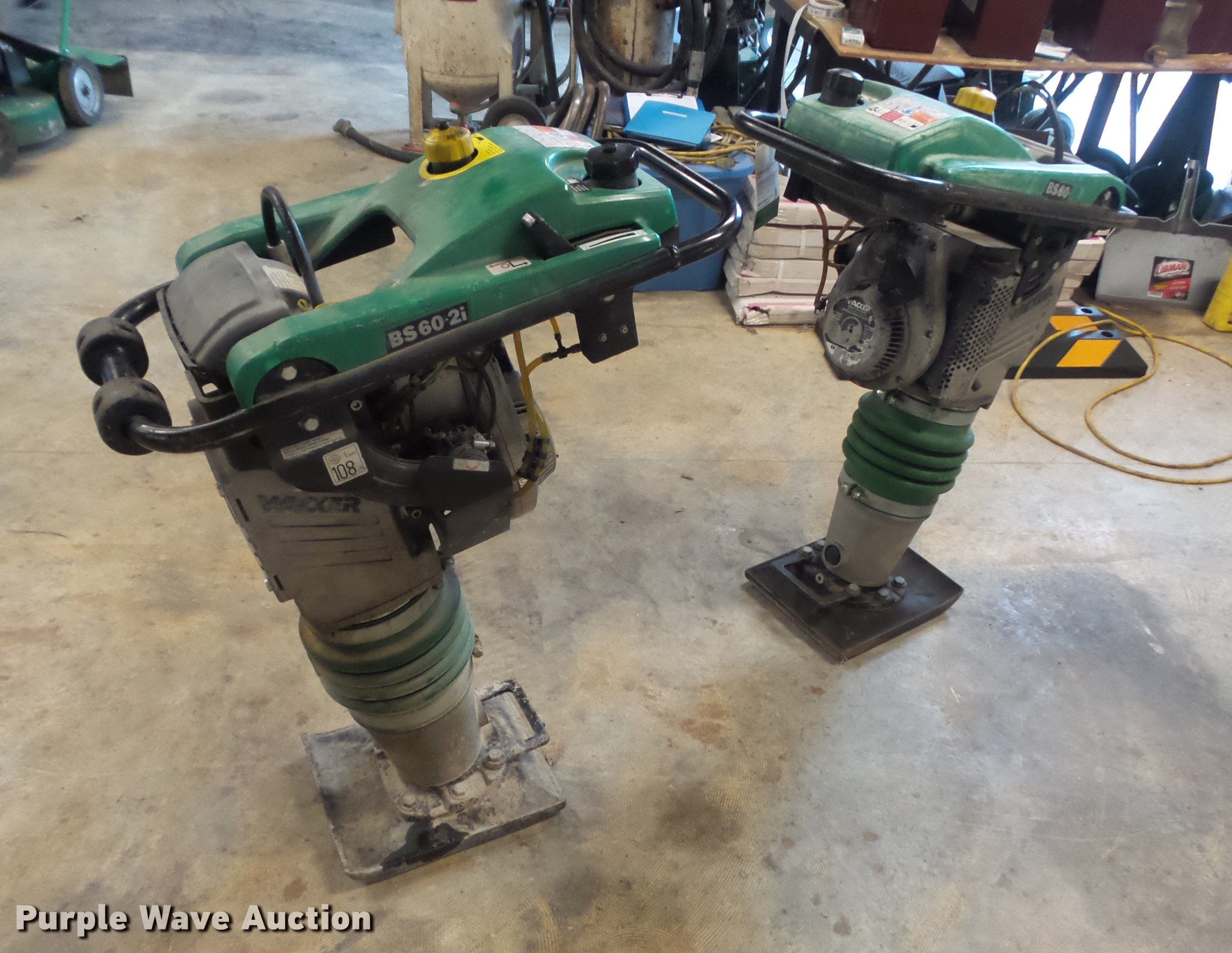 Purple Wave is selling a used Walk Behind Compactor in Illinois. This item is a (2) 2005 Wacker BS60-2i compactors with the following: Single cylinder gas engine, 13"L x 11"W plate, Serial 5538315, 5533762