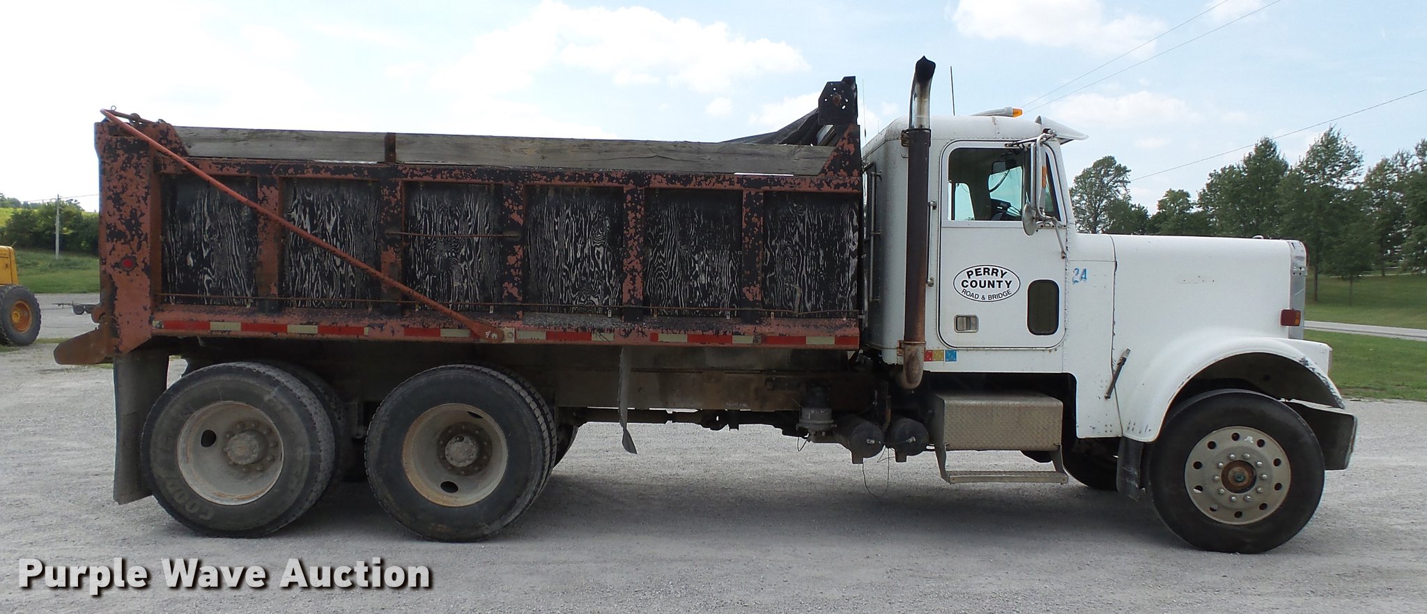 Purple Wave is selling a used Construction Dump Truck in Missouri. This item is a 1986 Freightliner dump truck with the following: 371,243 miles on odometer, Cummins NTA-400 855 C.I.D. six cylinder turbo diesel engine, 400 HP, Serial 10400040, Manual transmission, Inter-axle differential lock, Tandem axle, AC and heat, AM/FM/CD, Air suspension seat, PTO, Block heater, Exterior visor, Heil steel dump bed, 15'L, 42" side height, 8" side board height, Single fuel tank, Pintle hitch, Trailer wiring, Air suspension, Air brakes, 11R24.5 tires, Two way radio is not included, Unit# TD10