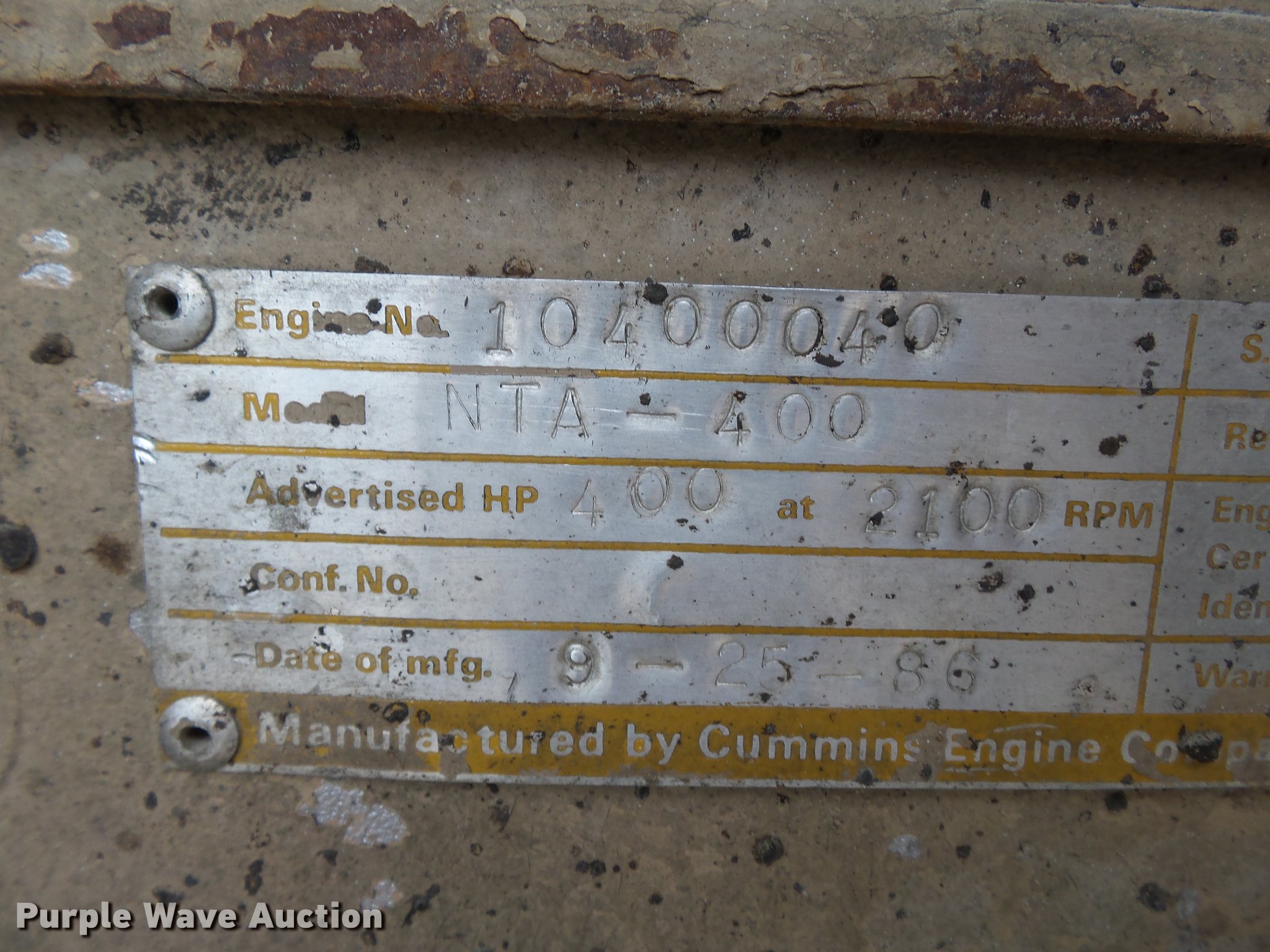 - Cummins NTA-400 855 C.I.D. six cylinder turbo diesel engine