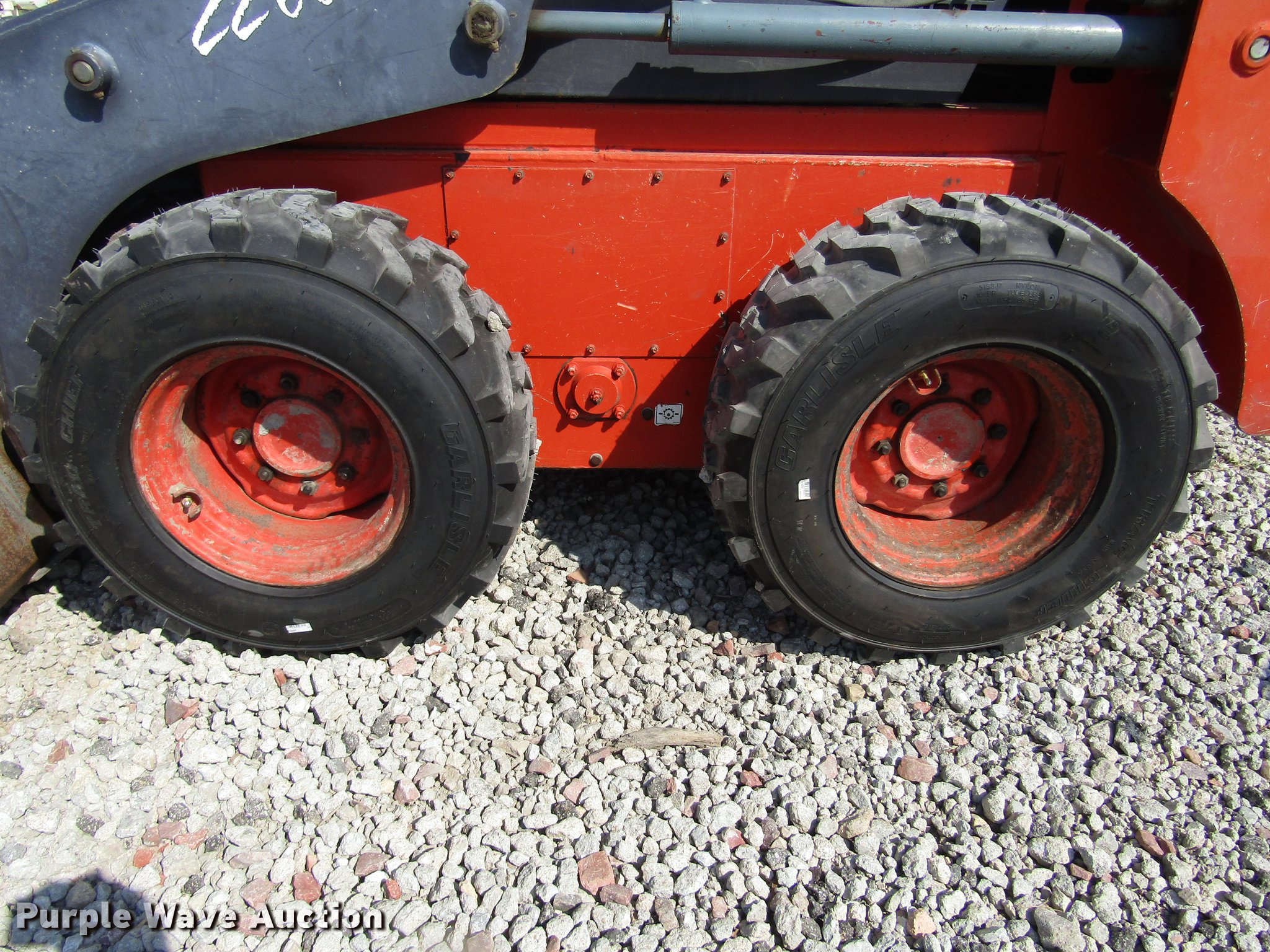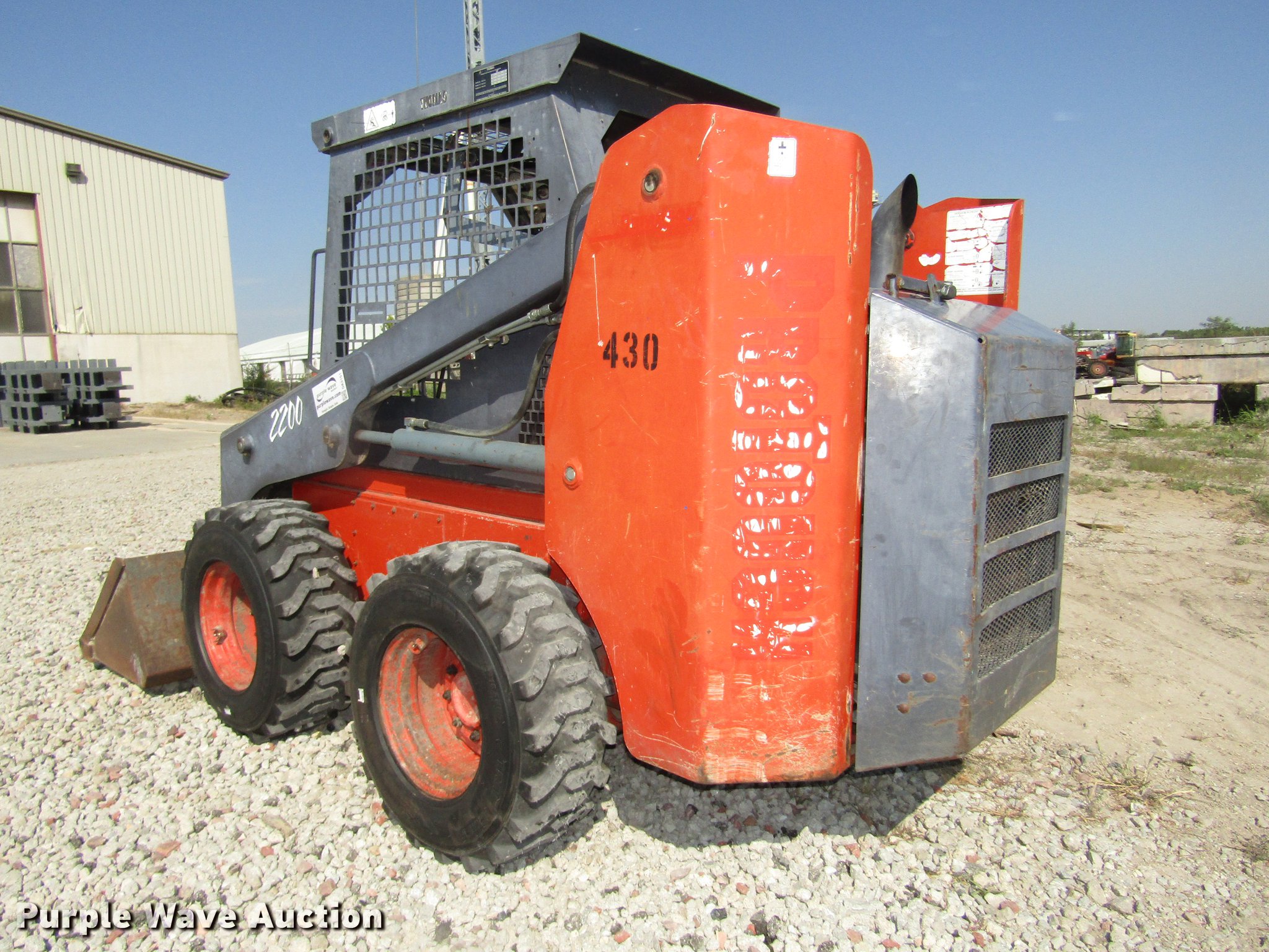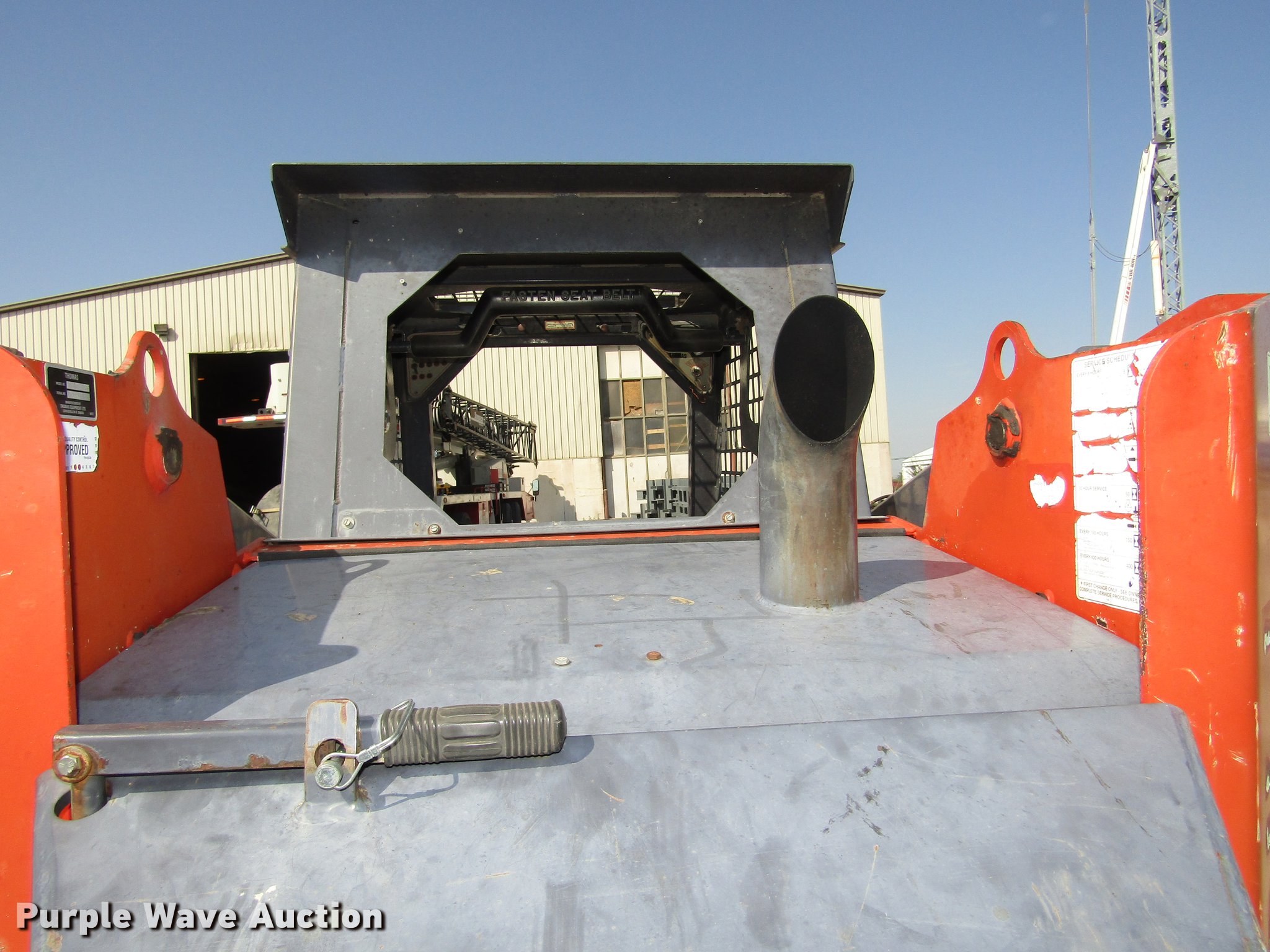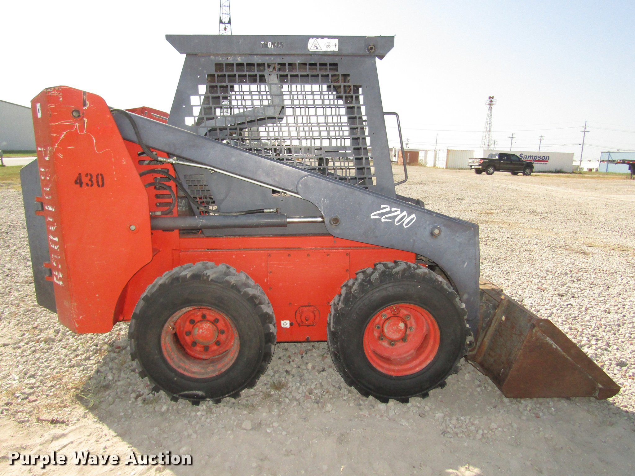 Purple Wave is selling a used Skid Steer Loader in Nebraska. This item is a 2002 Thomas Pro Tough 2200 skid steer with the following: 4,045 hours on meter, Kubota V3300TE 3.3L four cyliner turbo diesel engine, 65.2 kW, Hydrostatic transmission, Open station/canopy, Hand and foot controls, Spring suspension seat, Front work lights, Block heater, 72"W bucket, Weld-on cutting edge, Manual quick coupler, Boom support levers, Auxiliary hydraulics, Carlile 12-16.5 tires, Cutting edge needs replaced, Serial LP000637, Unit# 430