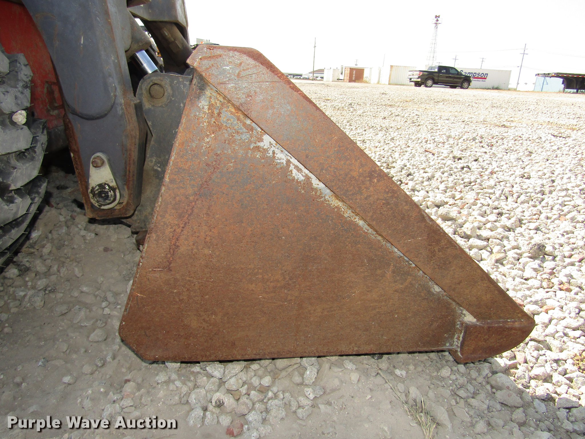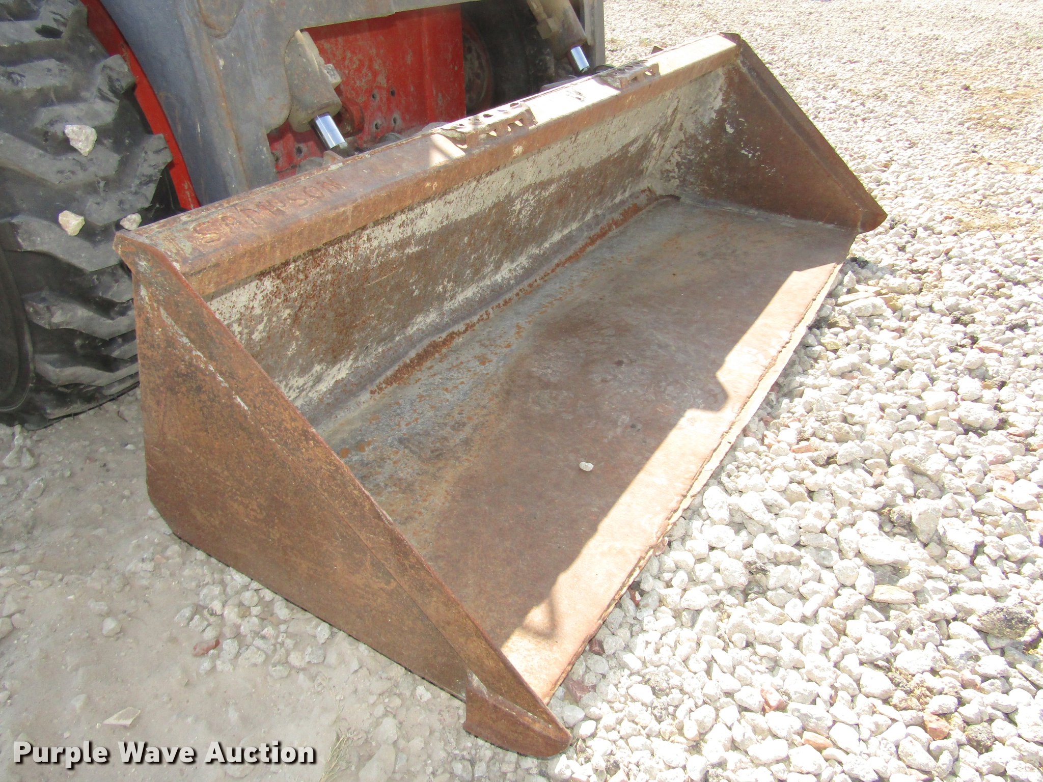 2002 Thomas Pro Tough 2200 skid steer. 4,045 hours on meter, Kubota V3300TE 3.3L four cyliner turbo diesel engine 65.2 kW, Hydrostatic transmission, Open station/canopy Hand and foot controls, Spring suspension seat, Front work lights, Block heater, 72"W bucket Weld-on cutting edge, Manual quick coupler, Boom support levers, Auxiliary hydraulics, Carlile 12-16.5 tires, Cutting edge needs replaced, Serial LP000637, Unit# 430. Sampson Construction. 6020 N 60th Street. Lincoln, NE 68507