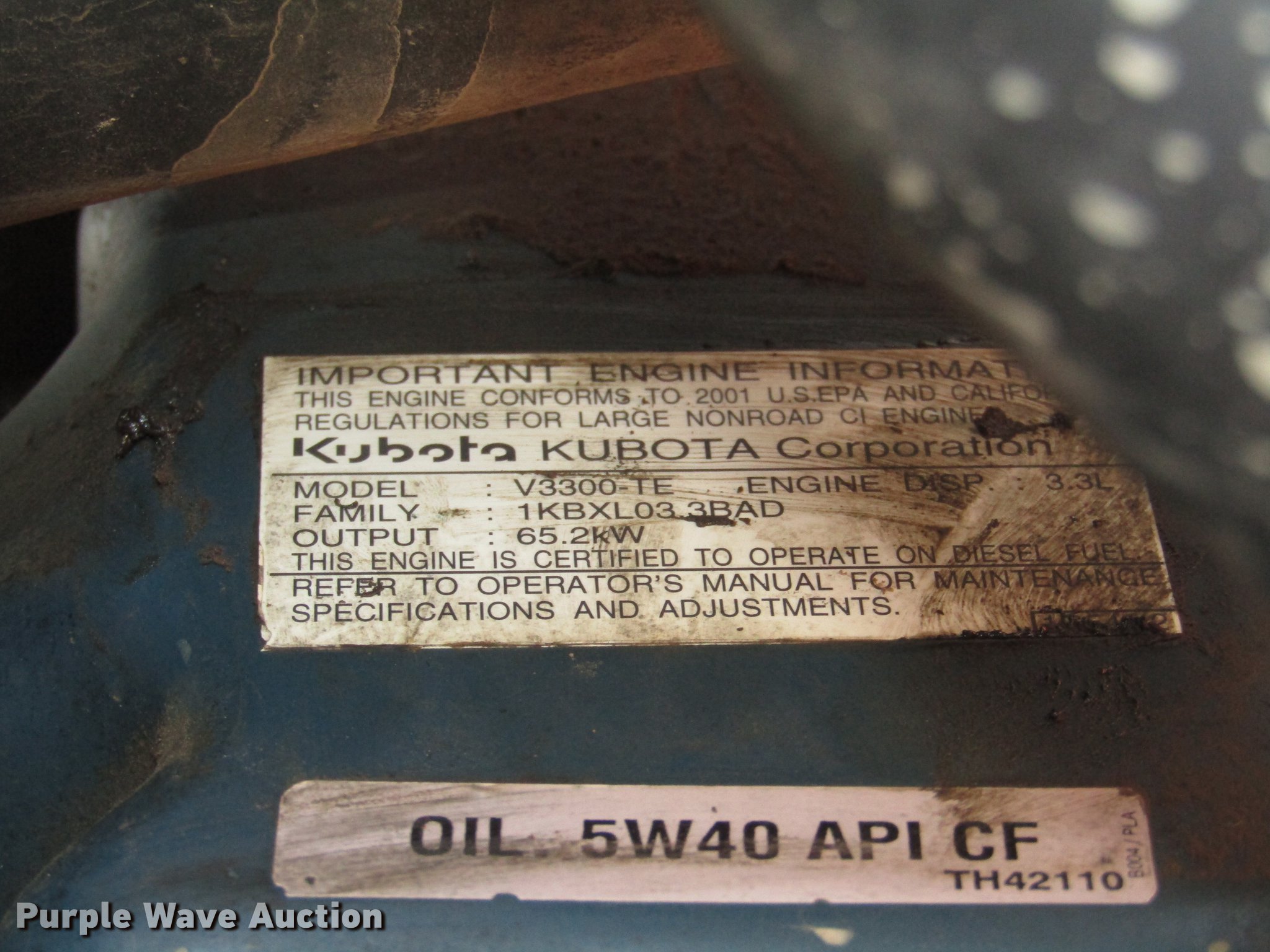 • Kubota V3300TE 3.3L four cyliner turbo diesel engine