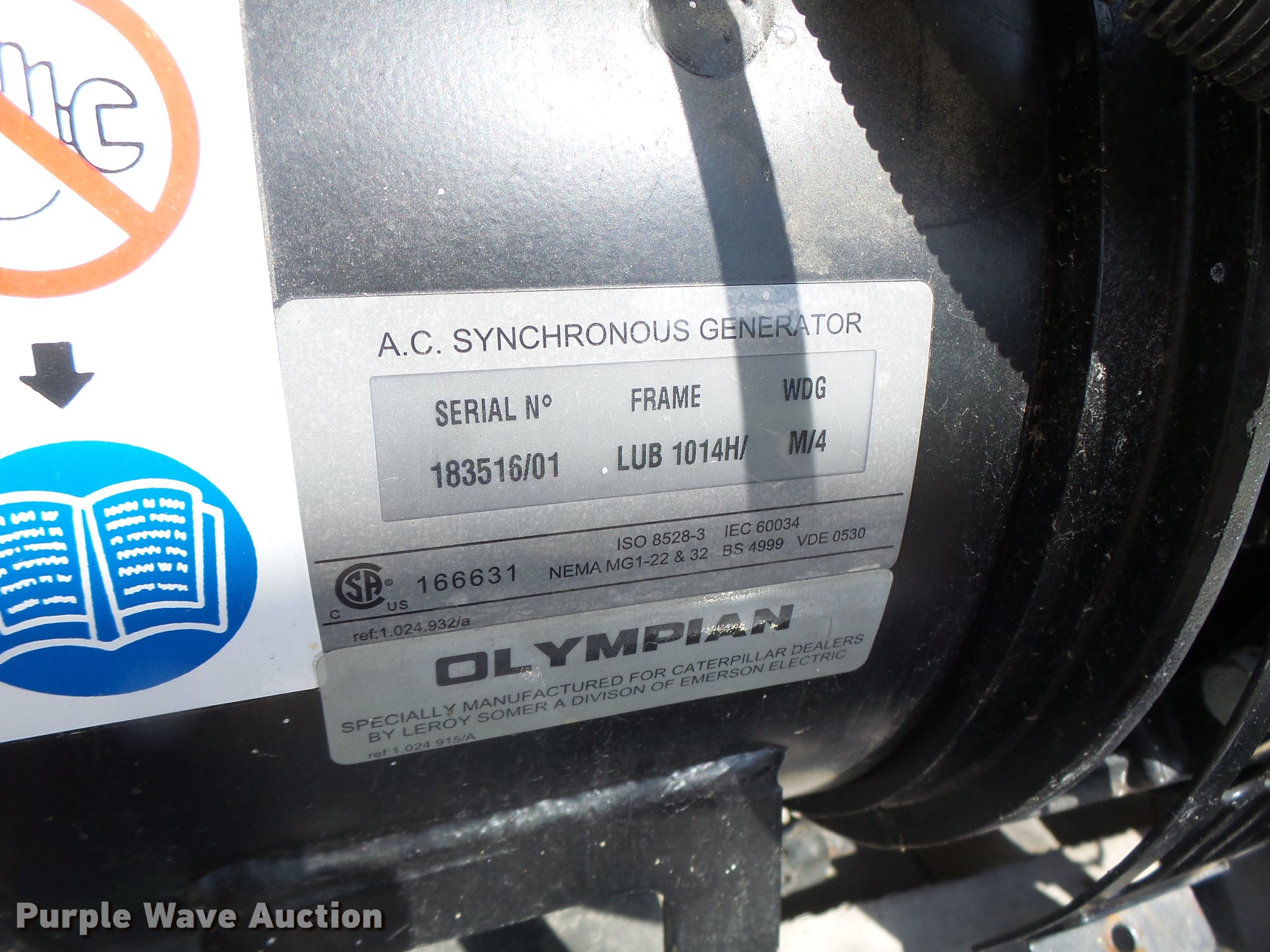 This 2005 Olympian generator will sell to the highest bidder regardless of price.