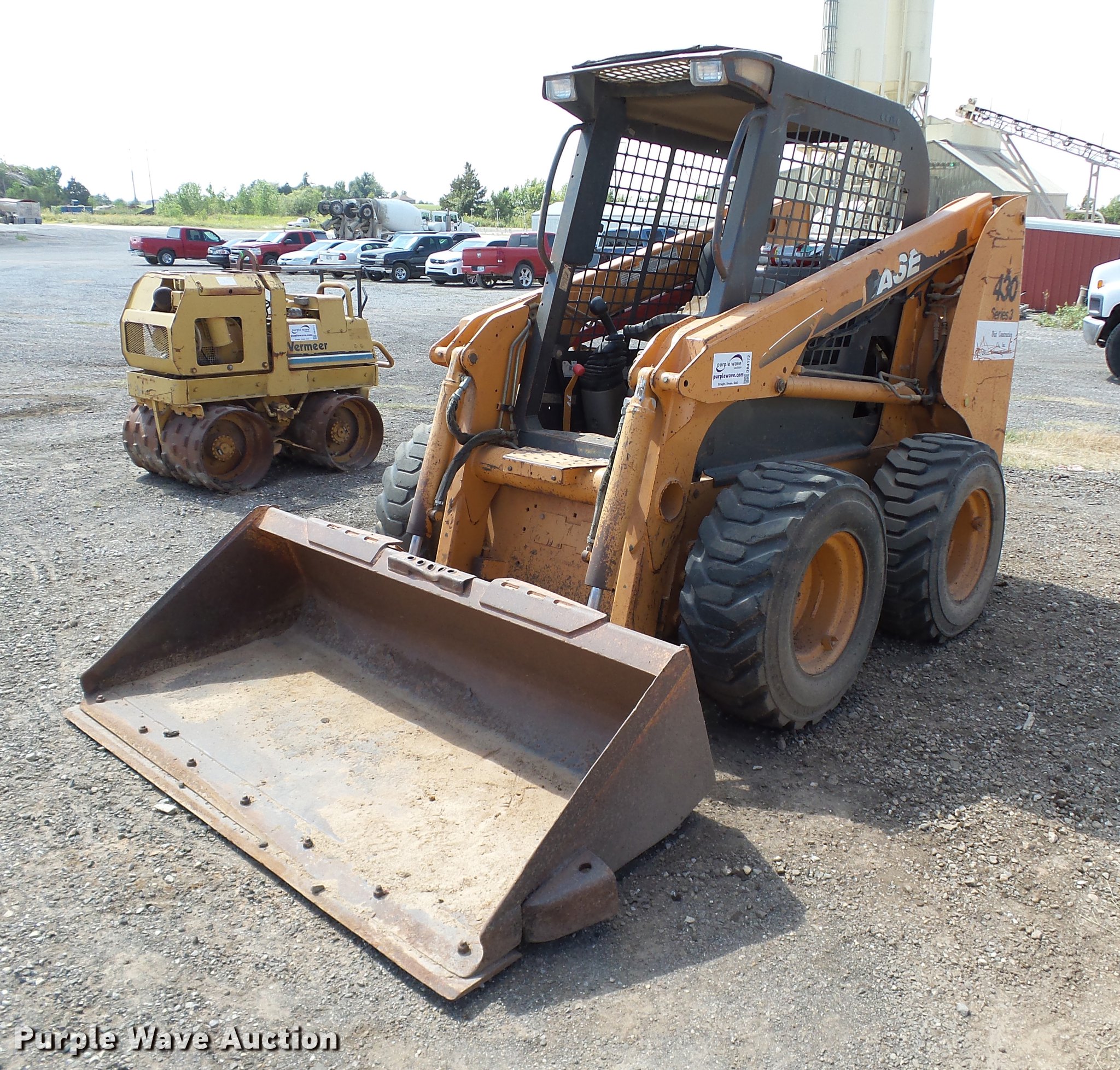 Purple Wave is selling a used Skid Steer Loader in Oklahoma. This item is a 2008 Case 430 Series 3 skid steer with the following: Case 4.5L four cylinder turbo diesel engine, 80 HP, Hydrostatic transmission, Open station/canopy, Joystick controls, Spring suspension seat, Front work lights, 72"W bucket, Bolt-on cutting edge, Manual quick coupler, Auxiliary hydraulics, 12 x 16.5 NHS tires, 2,000 lbs. base operating weight, Non-operational unit, Hole in engine block, Serial N8M482397, Unit# 561.249