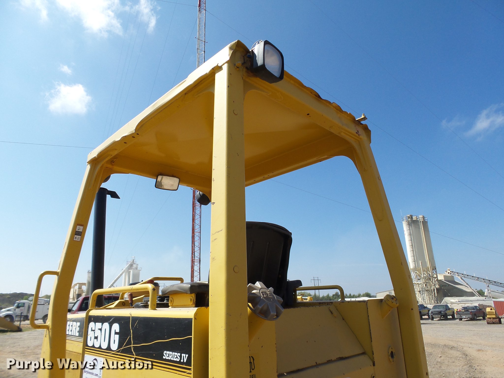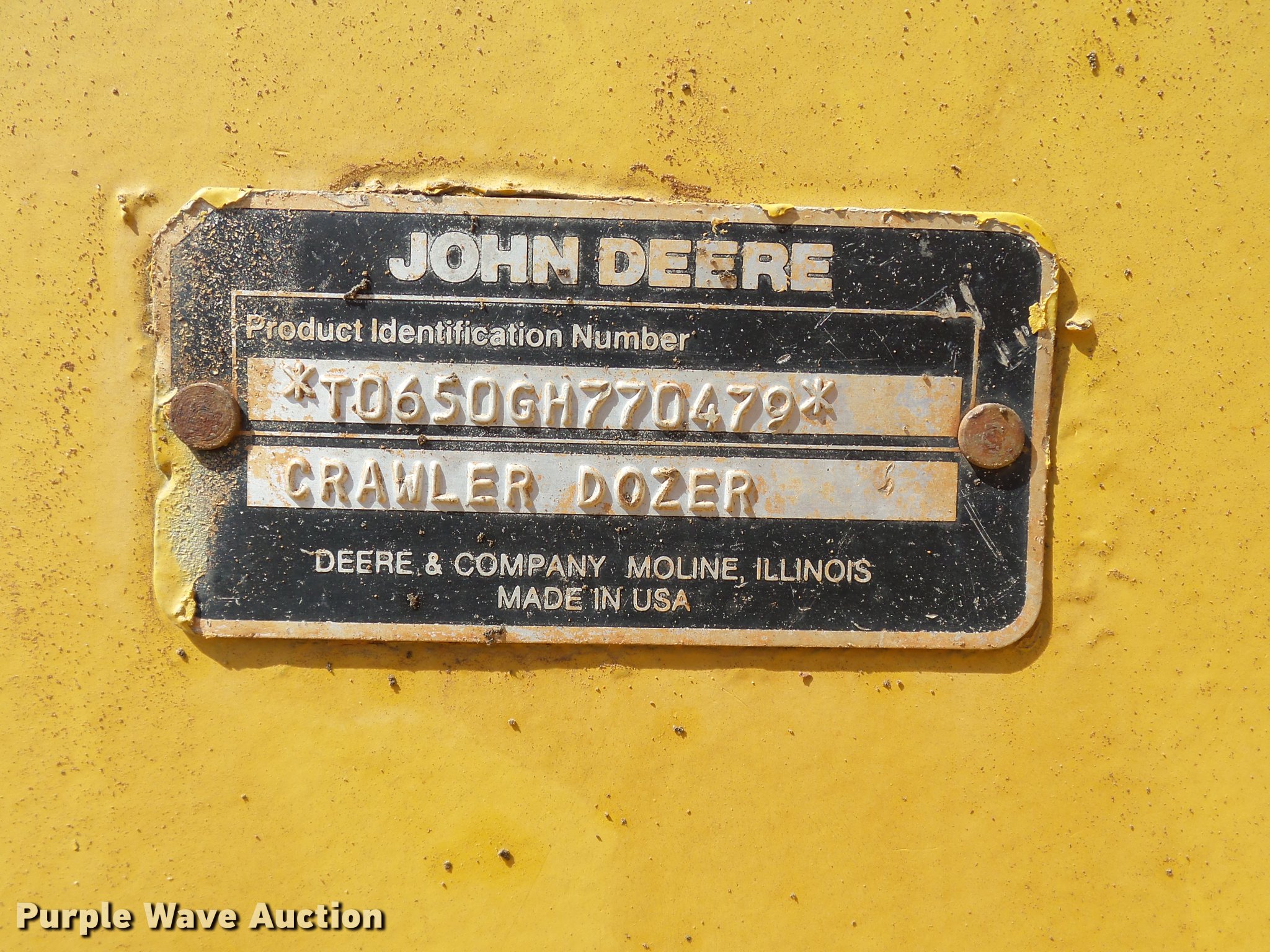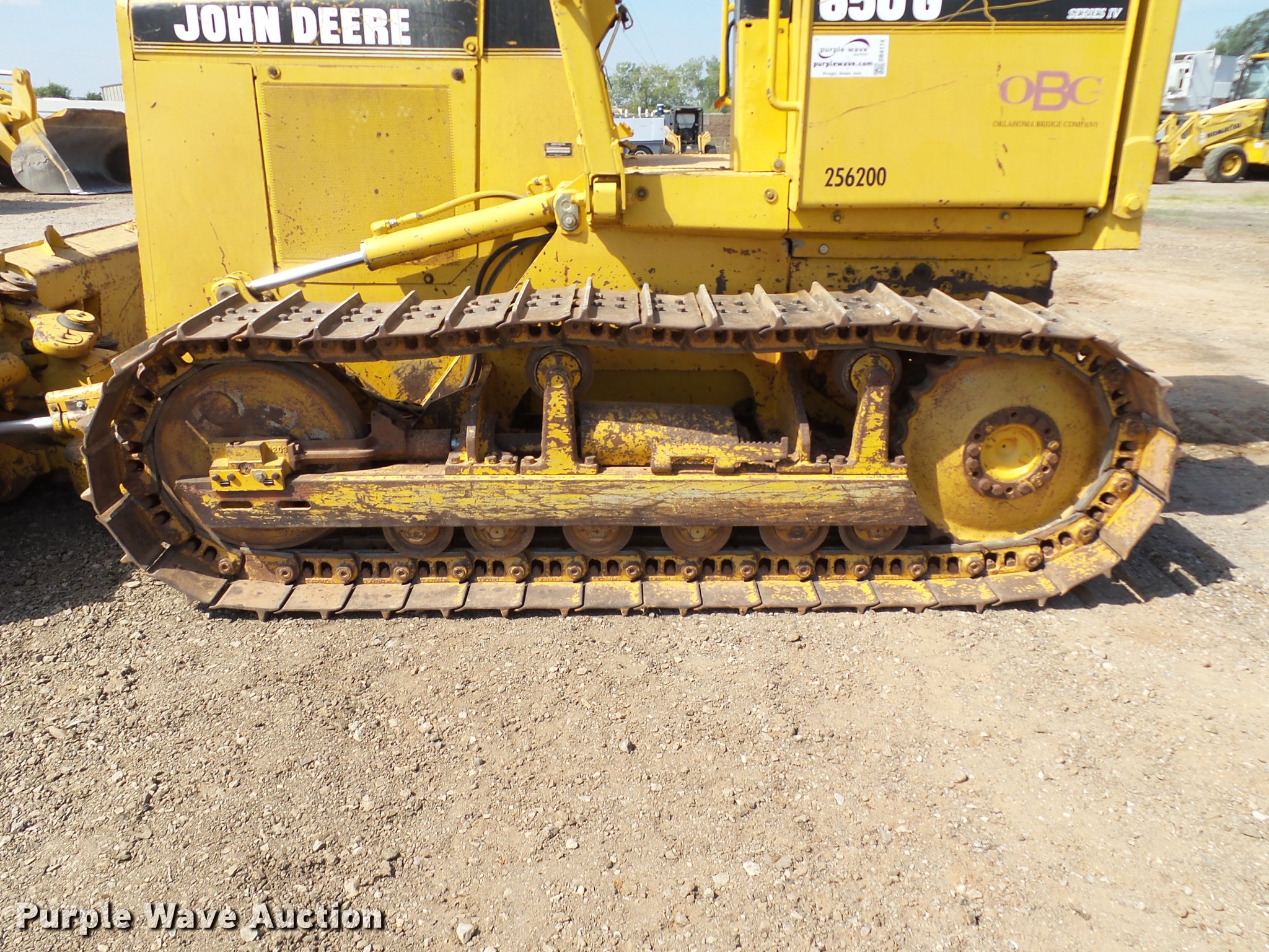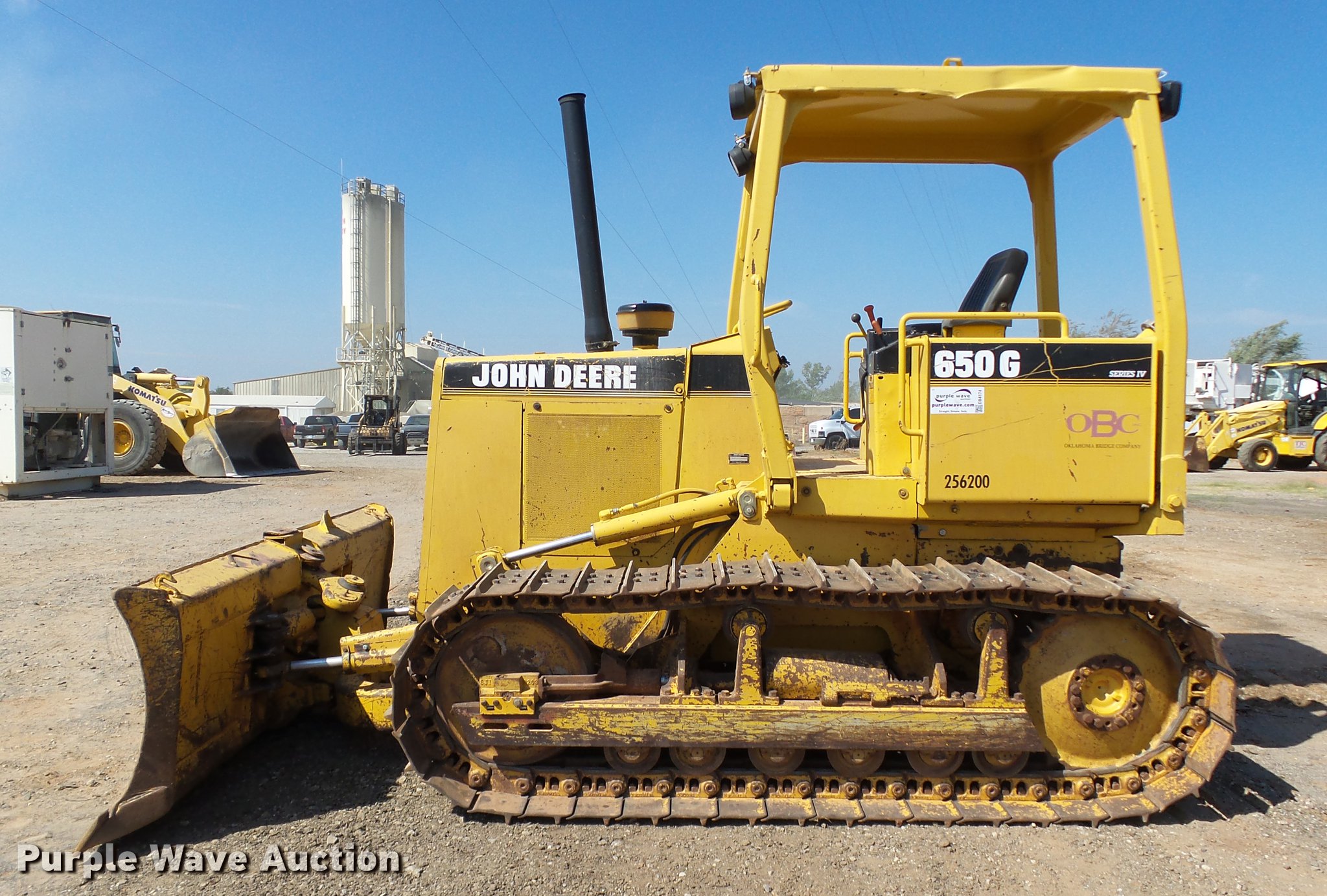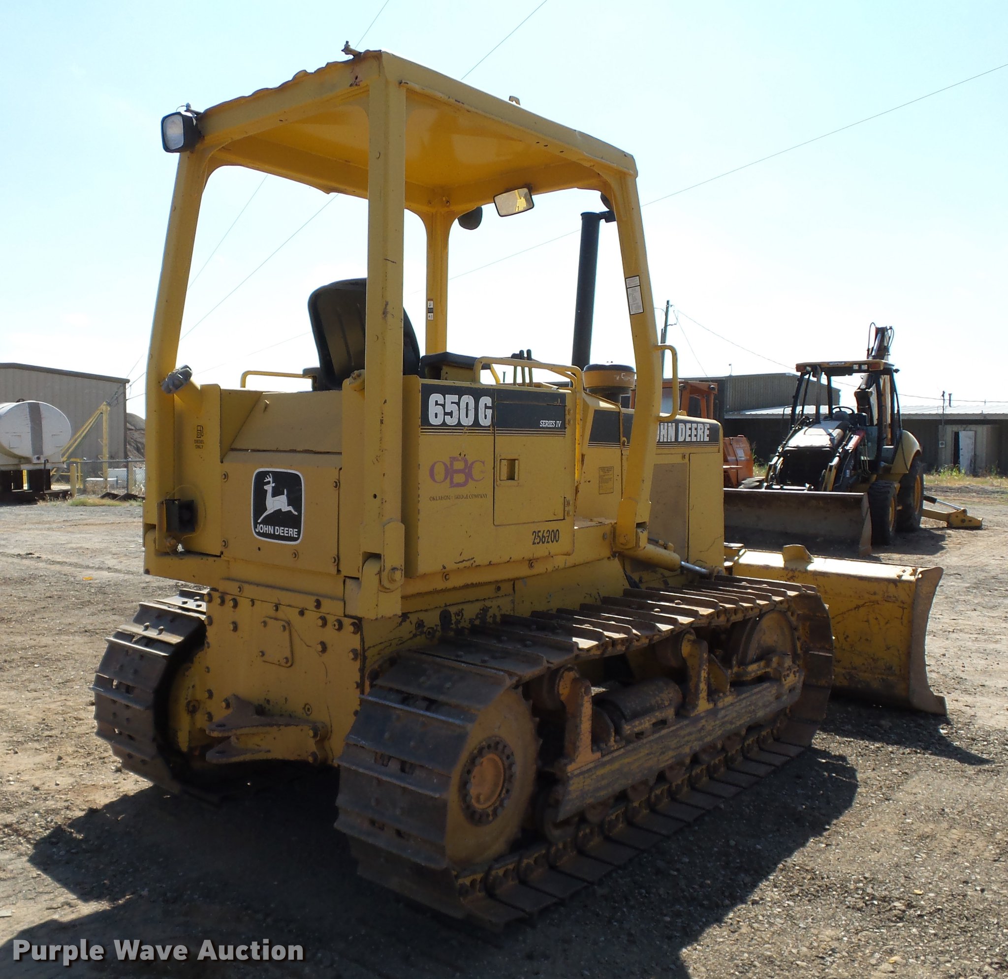 Purple Wave is selling a used Crawler Dozer in Oklahoma. This item is a 1990 John Deere 650G Series IV dozer with the following: 7,234 hours on meter, John Deere 4045T four cylinder turbo diesel engine, Powershift transmission, 4F-4R gears, Canopy, Front and rear work lights, 105" six-way straight dozer blade, Pin hitch, Six bottom rollers, 18"W single grouser track pads, Serial T0650GH770479, Unit# 256.200