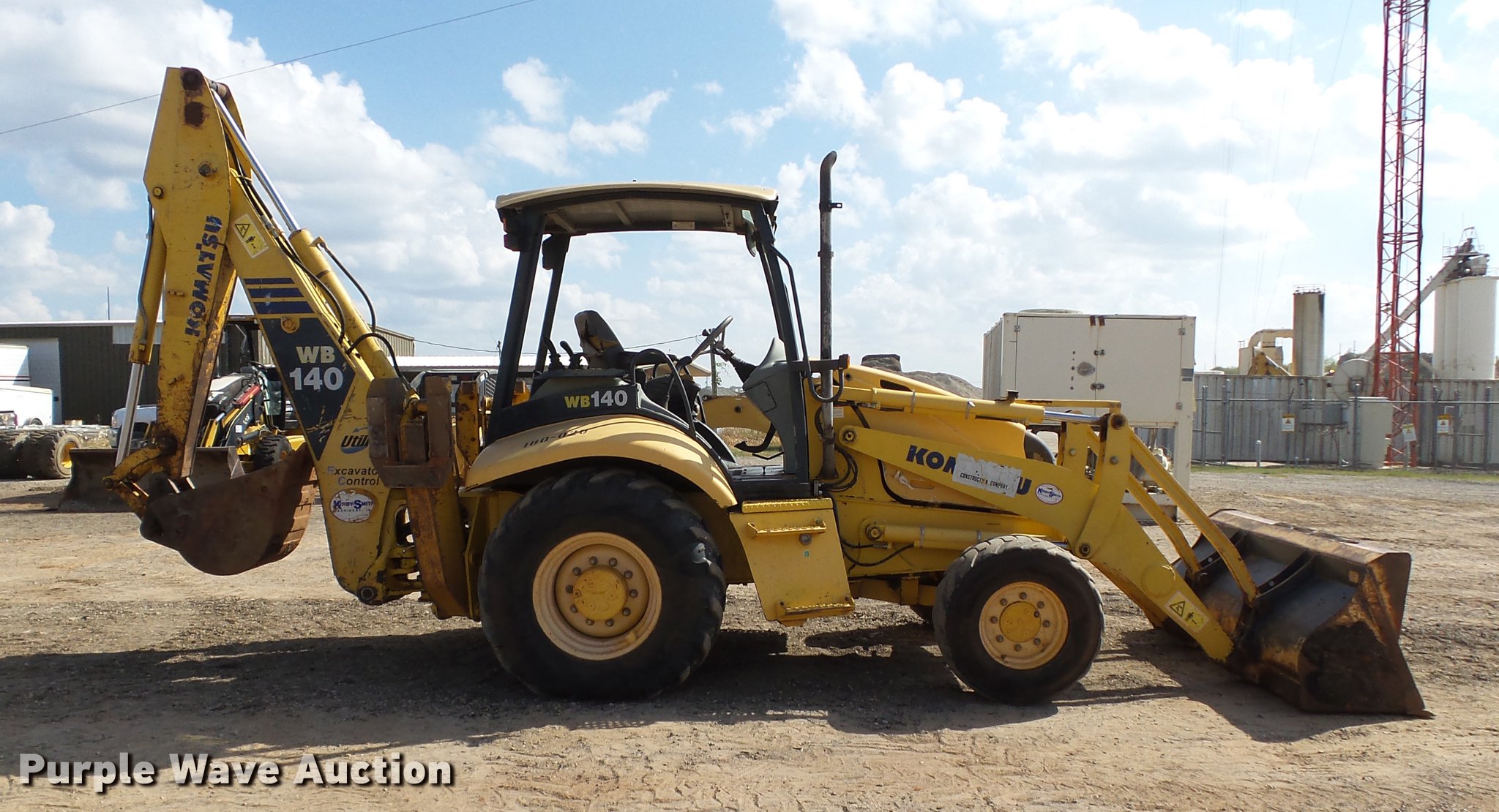 Purple Wave is selling a used Tractor Loader Backhoe in Oklahoma. This item is a 2005 Komatsu WB140-2N backhoe with the following: 4,569 hours on meter, Yanmar S4D106-2XFH 4.4L four yclinder turbo diesel engine, 69.5 kW, Shuttle shift transmission, 4F-4R gears, Four wheel drive, Differential lock, OROPS, Tilt steering wheel, Suspension seat, Wobble stick backhoe controls, Front and rear work lights, Komatsu WB140/150-2BHC 92"W loader bucket, Bolt-on cutting edge, Tooth Pro 22"W backhoe bucket, (5) teeth, Drive train guards, 14-17.5 NHS front tires, 19.5-24 rear tires, Seat will be replaced prior to auction, Serial KMTWB001C36A21983, Unit# 180.020