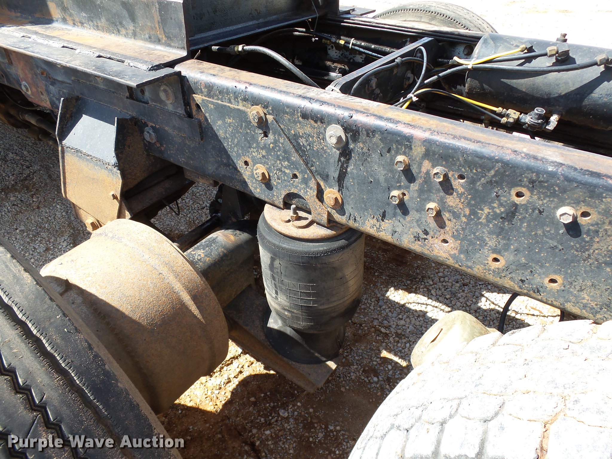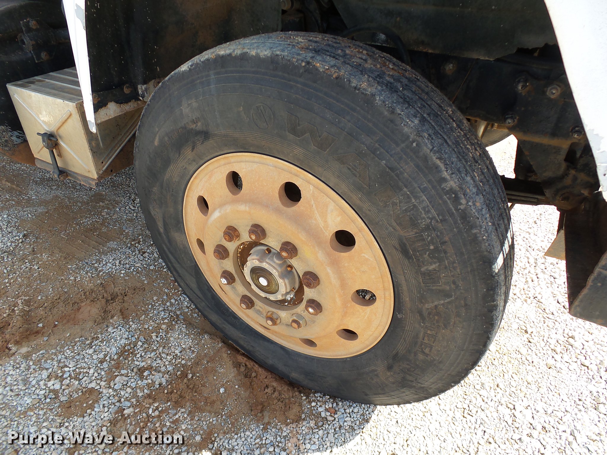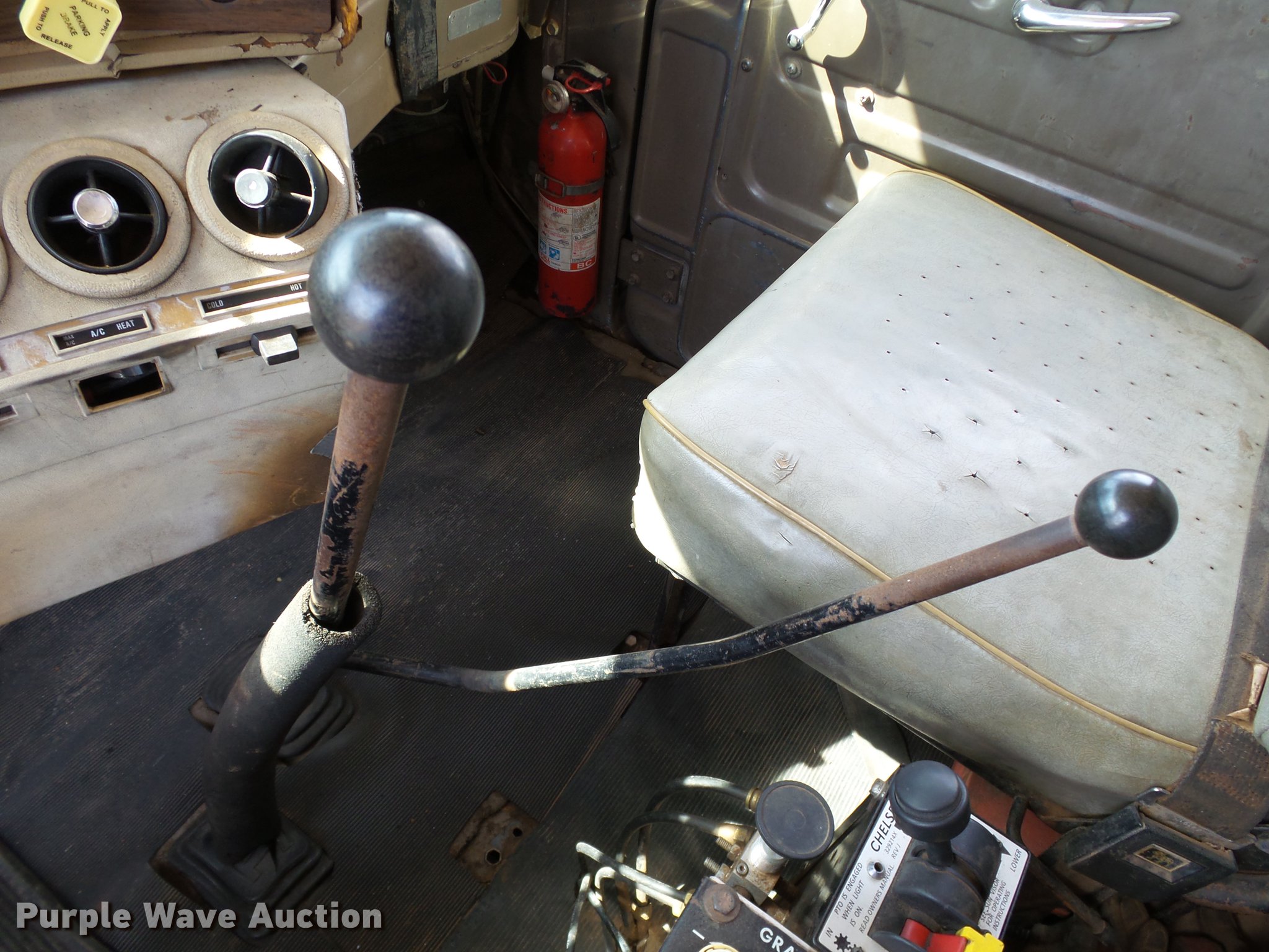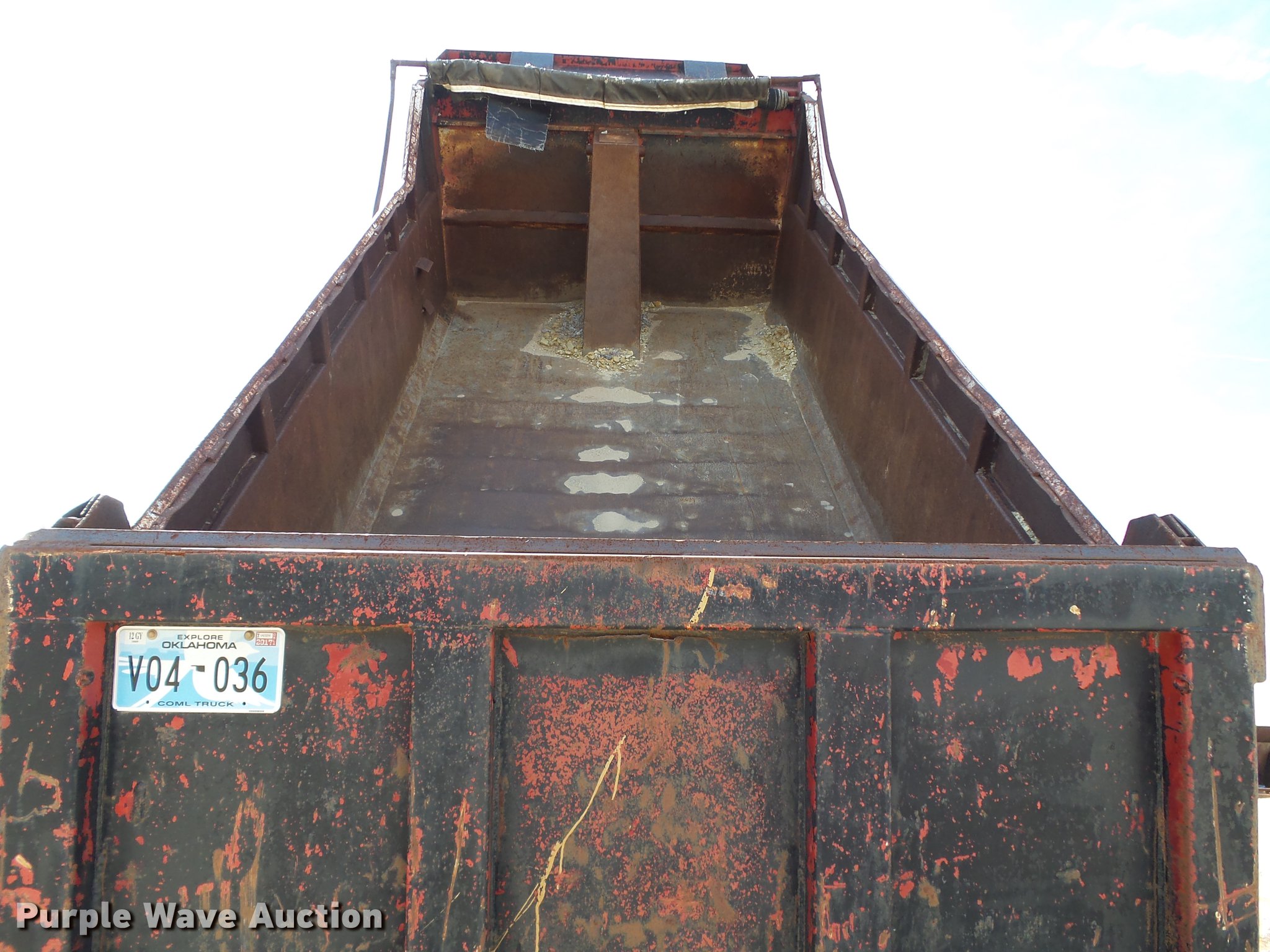 Purple Wave is selling a used Construction Dump Truck in Oklahoma. This item is a 1985 Mack R686ST dump truck with the following: 673,348 miles on odometer, 719 hours on meter, 1,156 hours on meter, Mack EM6-300 six cylinder turbo diesel engine, 300 HP, 10 speed manual transmission, Triple axle, Full differential lock, AC and heat, AM/FM/CD, Air suspension seat, Air ride cab, Front tow hooks, Exterior visor, PTO, Wet kit, 15'L x 96"W steel dump bed, 42" side height, Single ram hoist, Roll tarp, Air operated end gate, Single rear exhaust stack, Dual fuel tanks, Mud flaps, Pintle hitch, Trailer wiring, 208" wheelbase, Camelback suspension, Air brakes, 11R24.5 front tires, 275/80R22. rear tires